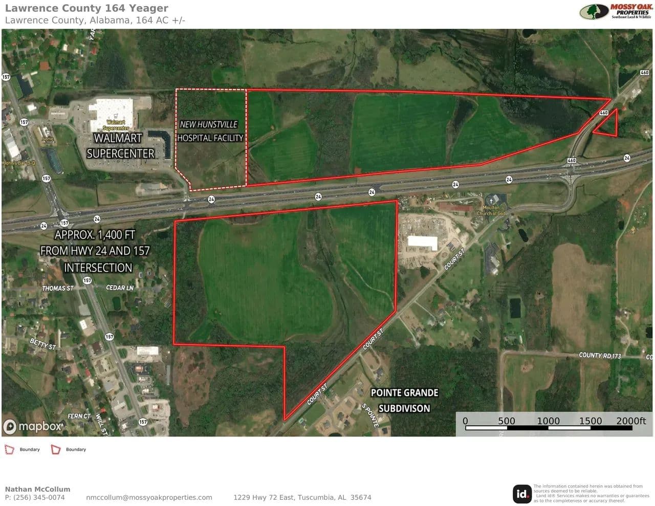 Strategic Location: The property is centrally located in North Alabama with excellent connectivity - approximately 34 miles from Huntsville International Airport, 35 miles from Athens, 29 miles from Muscle Shoals, and 29 miles from I-65 in Decatur.