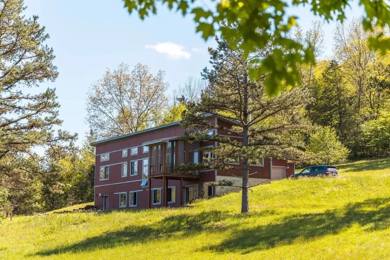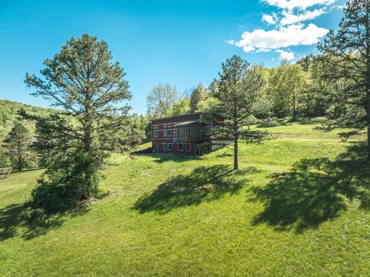 Nestled amidst the serene landscape, this property has access to the Black River. It also has year- round springs, and a gently flowing creek, providing an idyllic retreat for nature enthusiasts. Spanning across 10+/- acres of verdant fields and 80+/- acres of woods, this estate offers a harmonious blend of natural beauty and modern living. The 2,400 square foot house, meticulously crafted by an esteemed architect from Minneapolis, features stunning clerestory windows that invite abundant natural light and picturesque views of the surroundings. New central AC unit installed September 2024 with a 10 year parts warranty. With a thoughtful design, the house comprises one bedroom, two bathrooms, and a walk-out basement, offering seamless indoor-outdoor living. Embracing sustainability, the property is powered by an off-grid solar system, with a new inverter and lithium battery bank installed in 2023. Additionally, the basement, plumbed for a bathroom, presents potential for customization. Completing the estate are various amenities including a shop, smokehouse, barn, spring house, and an older home dating back to 1941, that could possibly be used for a guest house.