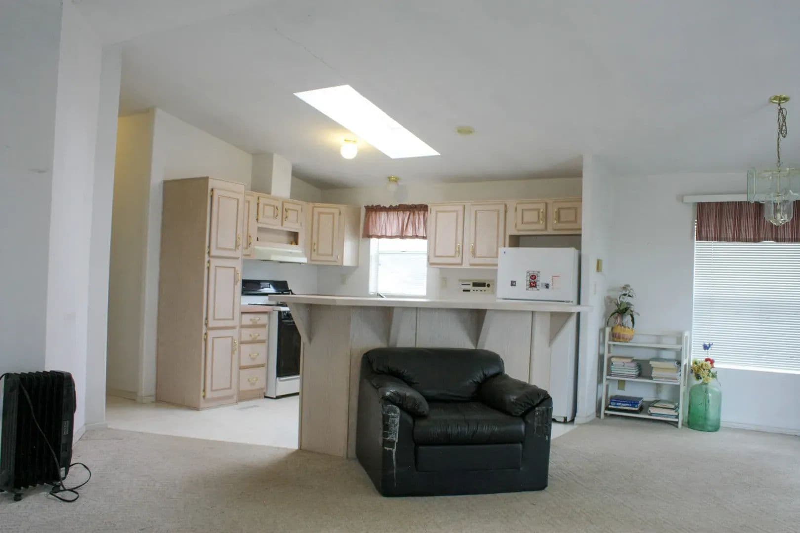 The smaller house is a 1056 sqft, 2 BR/2BA mobile home built in 1997 on a permanent foundation. This cozy home would make an excellent guest house or caretaker’s home. With an attached, fully enclosed sunroom and a large outdoor deck, the home feels much larger than its size. There is a 10’x25′ wooden storage shed with roll-up door and separate walk-in entrance next to the smaller house.