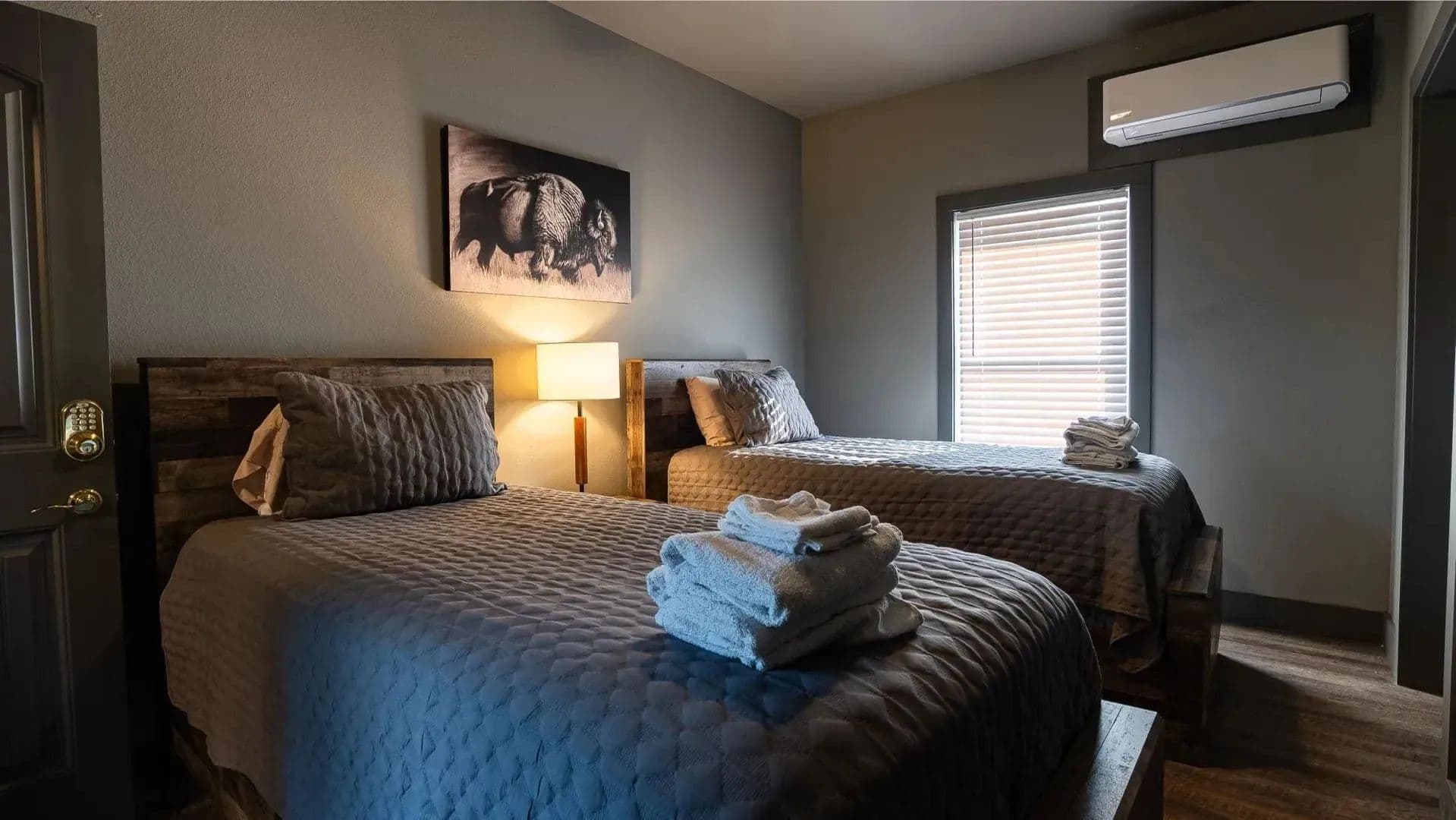 The custom built lodge was completed in 2023 and provides excellent accommodations for hunting clients, plus utilized as a wedding and events venue from May – August and various other open dates. The grand entrance boasting 30 foot ceilings and a massive antler chandelier captures your attention and never lets go