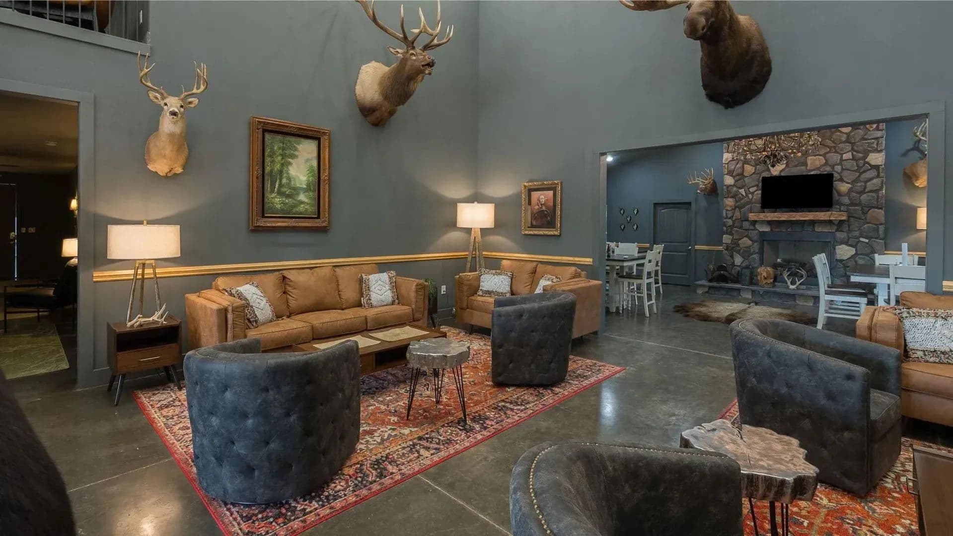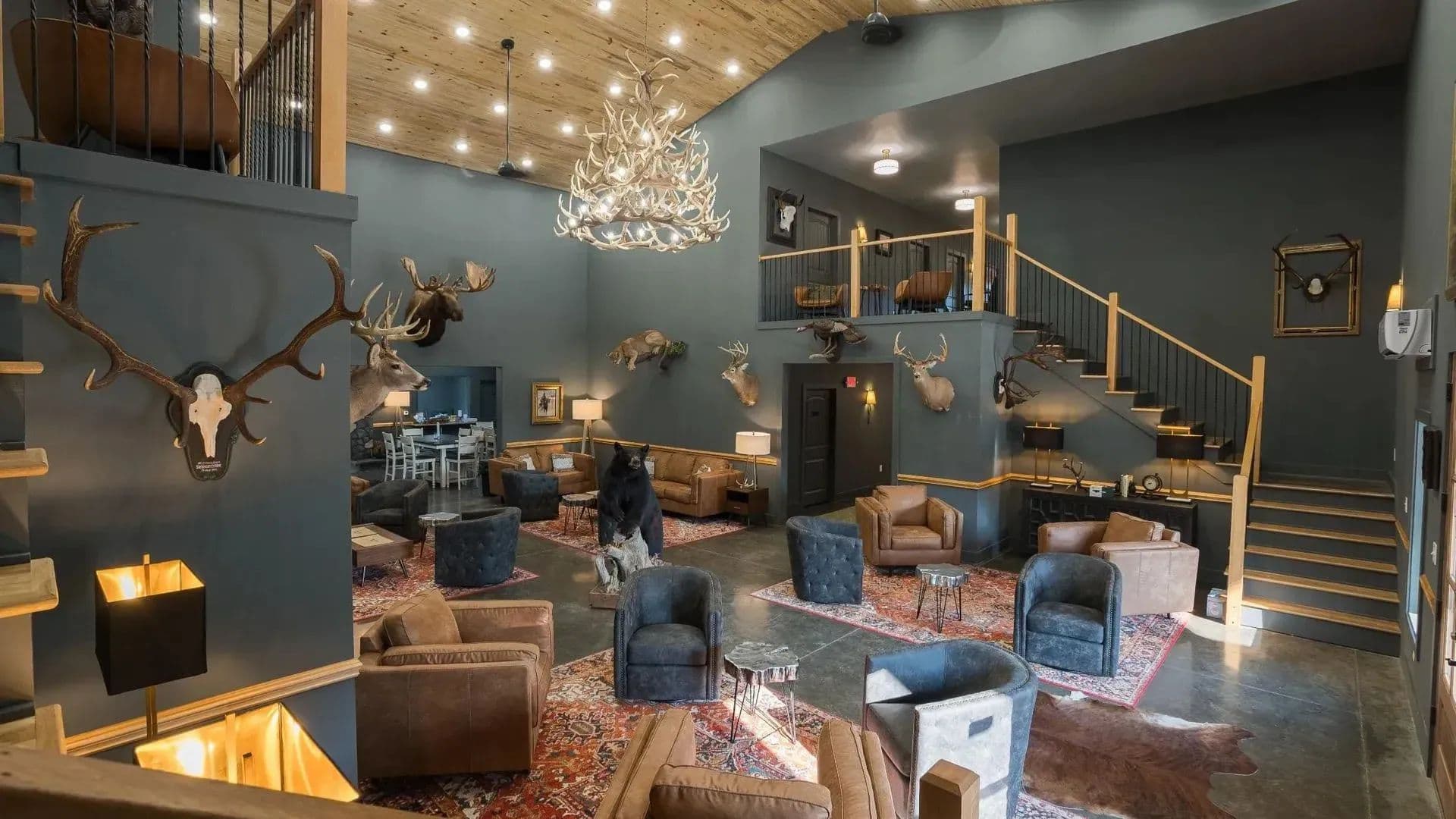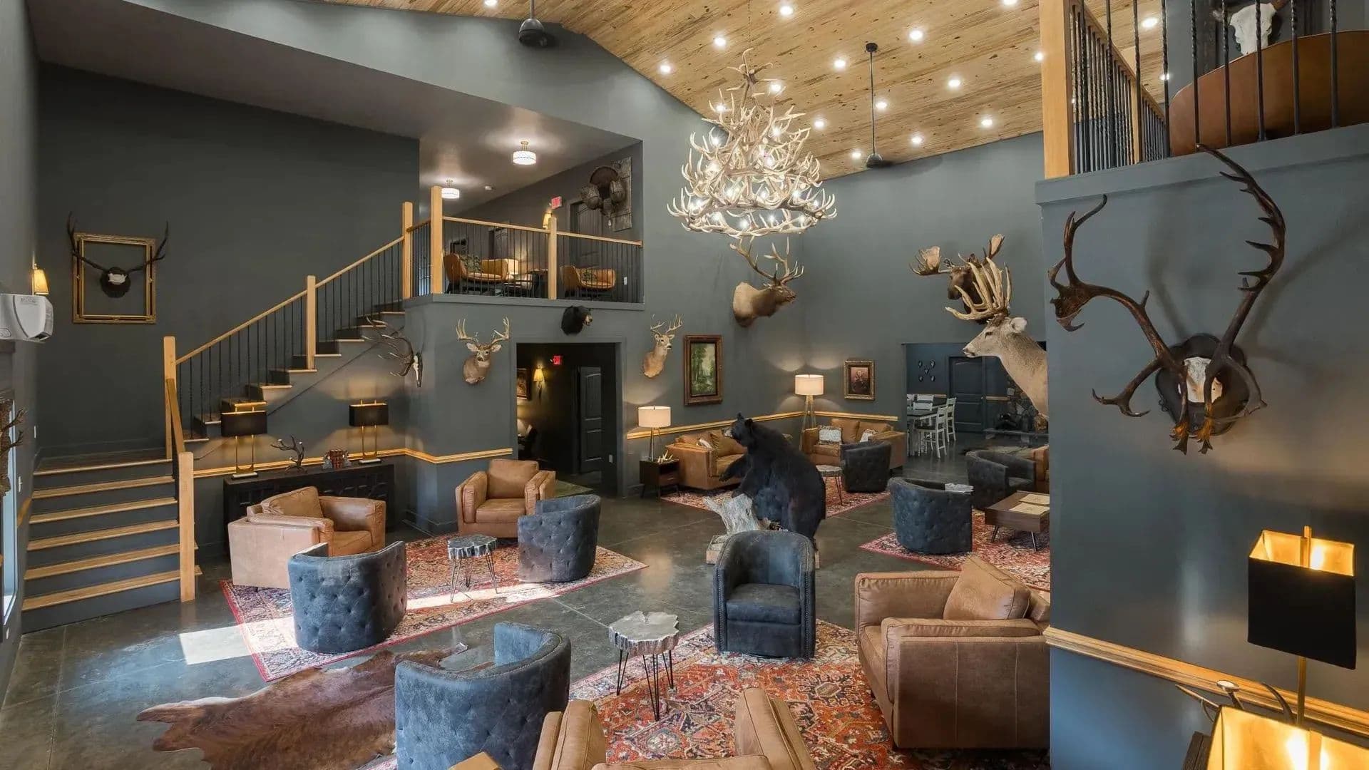 Conveniently located an hour and 15 minutes northwest of Nashville, Tennessee in the rolling countryside of Western Kentucky, awaits this majestic lodge and events venue. The grand entrance boasting 30 foot ceilings and a massive elk antler chandelier captures your attention and never lets go