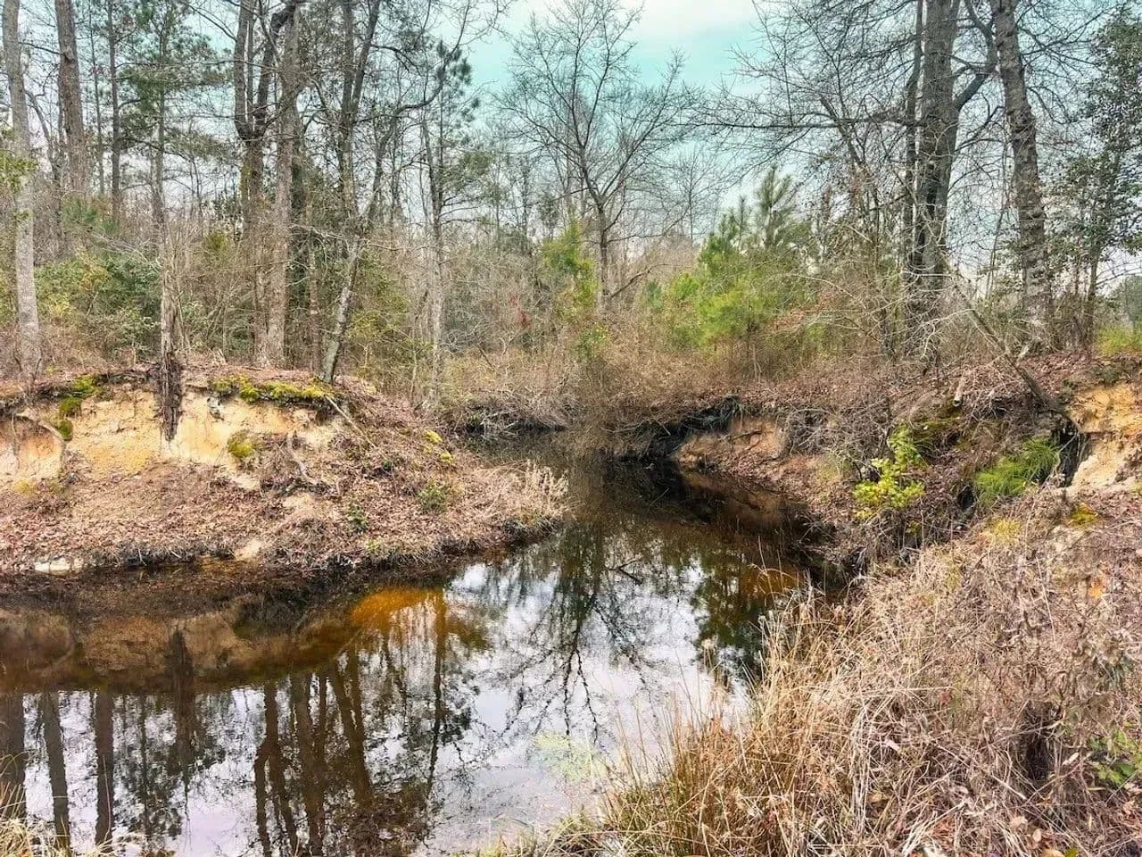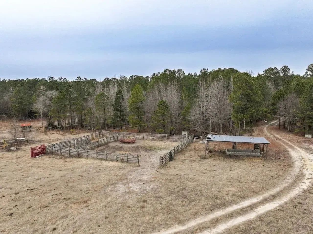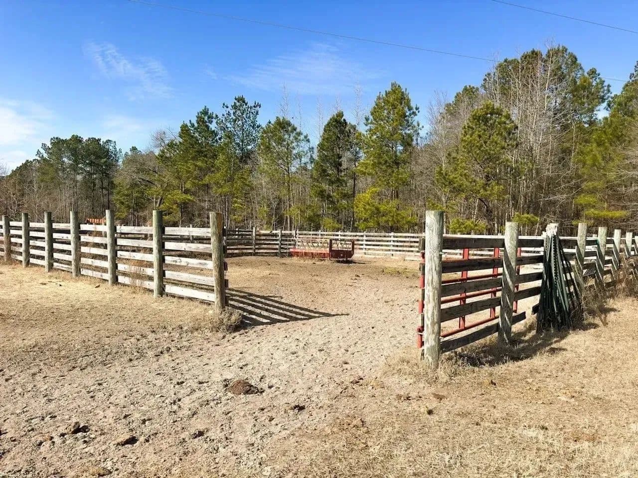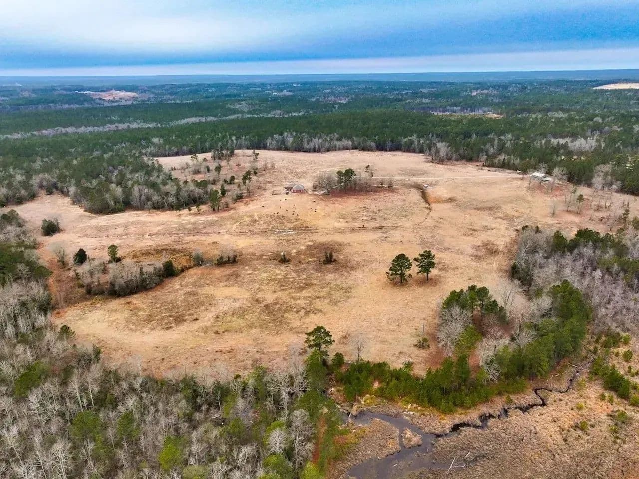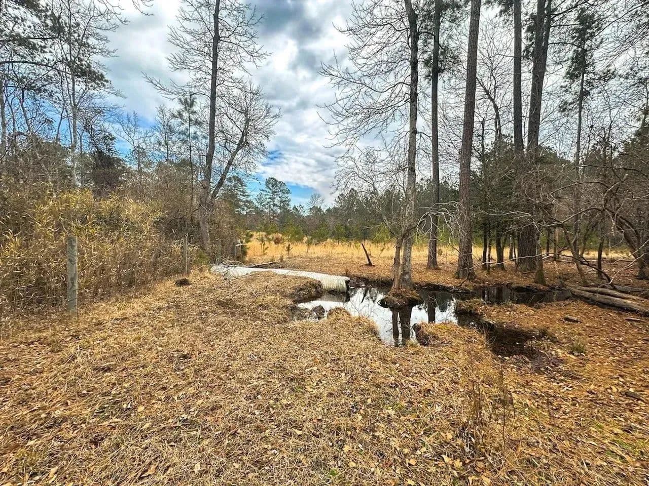 The land itself is a haven for wildlife, with deer and turkey populations roaming throughout 70 acres of wooded terrain. A year-round creek runs through the property, enhancing both the natural habitat and the scenic landscape. There’s also an old pond that retains water and has the potential to attract waterfowl. With approximately 120 acres of cleared land, the property is fully fenced and features six gated access points to the wooded areas.
