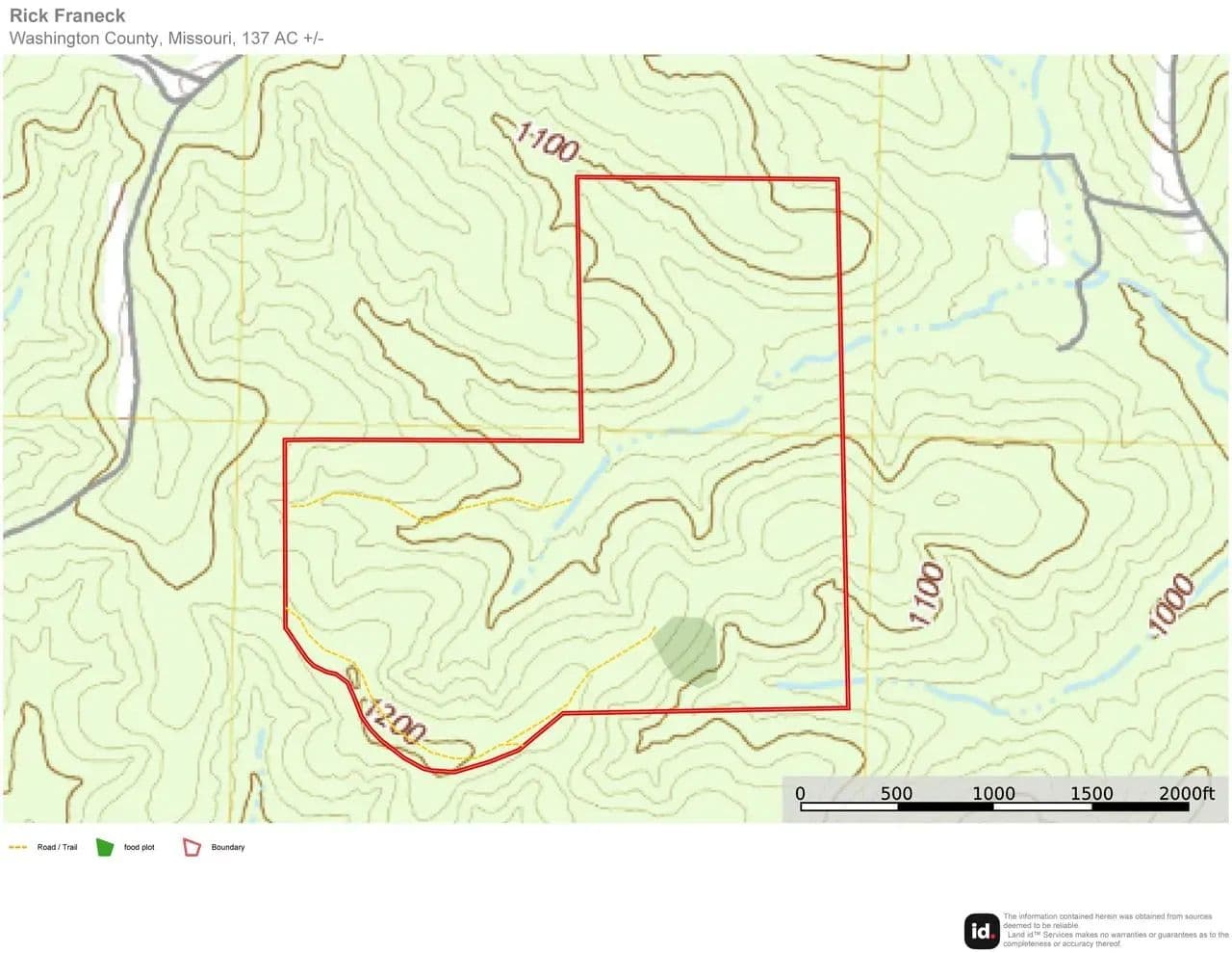 137 +/- acres in Washington County – a hunter’s paradise with mature whitetail bucks, big tom turkeys, and abundant small game. Well-maintained trails and food plots throughout provide excellent wildlife habitat and easy access across the property. Rolling hills with a mix of white oak, black oak, pine, and cedar create a diverse and scenic landscape. A prime future build site offers stunning views, with electric nearby. The property also has the potential for a massive 30-acre lake, making it an exceptional recreational retreat. Conveniently located just minutes from Potosi, with Walmart, restaurants, and other amenities close by. With blacktop road frontage on Delbridge, this land is easily accessible and ready for your dream getaway or hunting retreat. Come take a look!