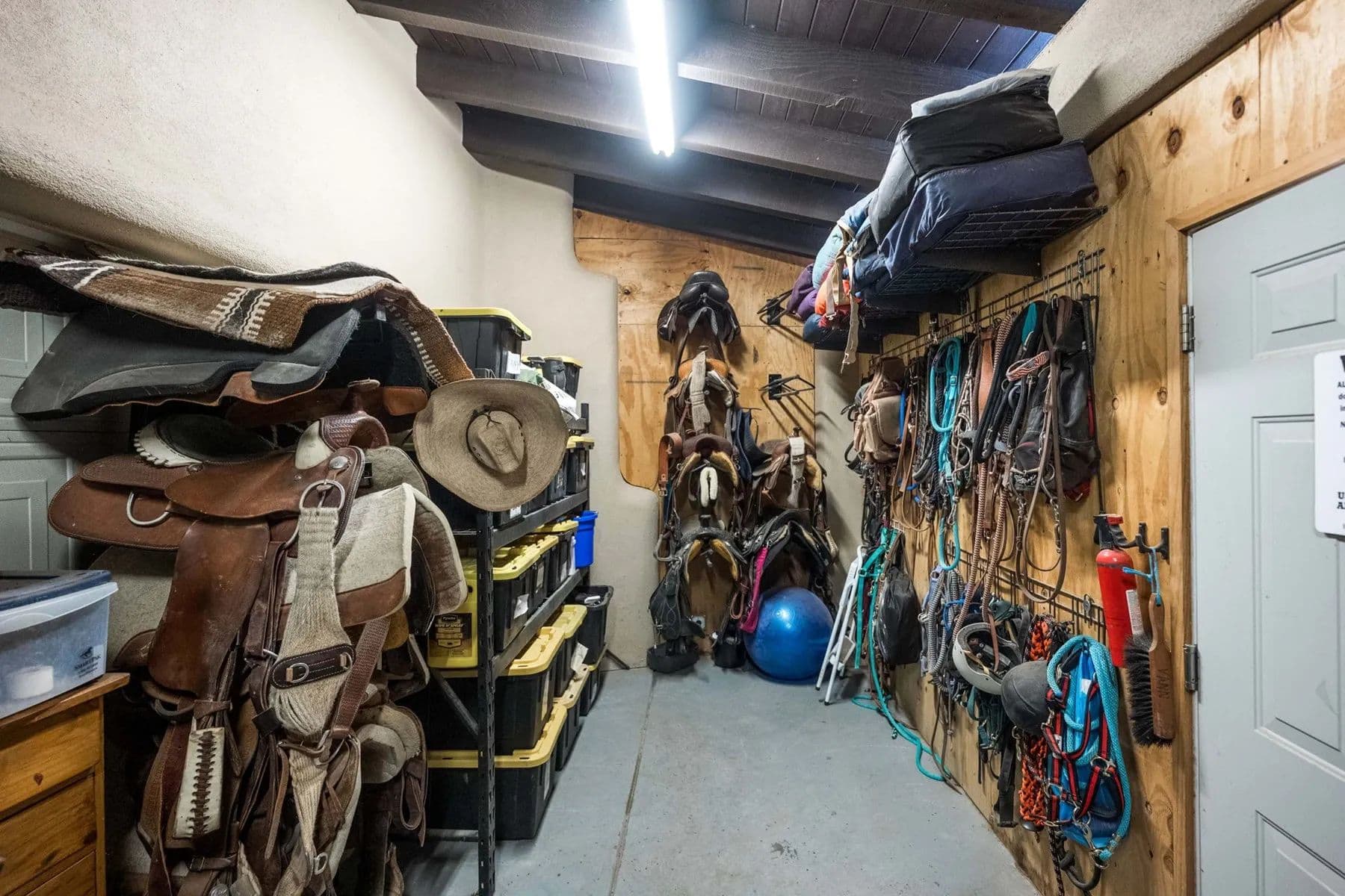 Equestrians will appreciate the well-equipped horse facility, perfect for personal use or a boarding business. Features include a lighted arena, round pen, tack room, wash area, 16 covered stalls, and fencing throughout the orchard for grazing.