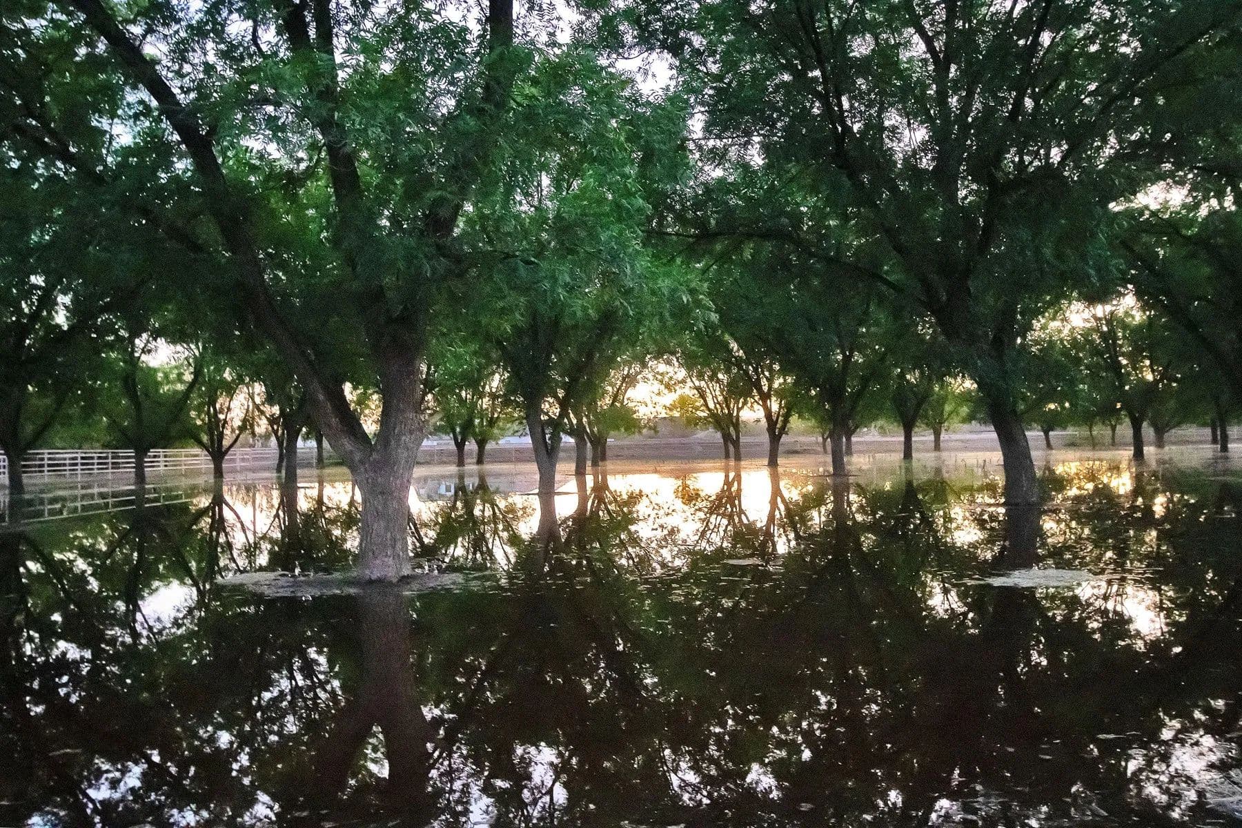 The pecan orchard enhances the property's beauty and productivity, complete with an irrigation well, surface water rights (EBID), and underground water rights to support healthy growth.