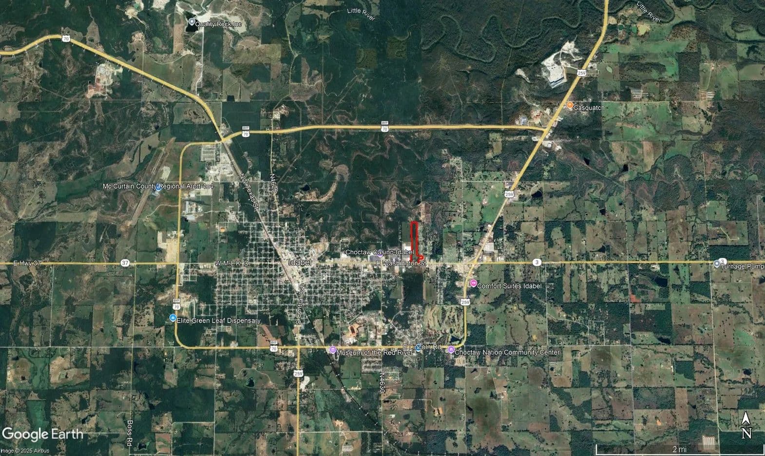 Located along a major throughfare in the bustling town of Idabel is where you will find this 22.75 acres. Located next to Wal-Mart and in the heart of a growing commercial area. There is frontage on E Washington and the property wraps around to frontage on Oak Brook Drive also. Property is located near shopping, banking, entertainment and all types of businesses. The Choctaw Casino is just .4 of a mile to the west. This parcel would be great mixed use development with commercial business on the front and residential in the back. Property would be an excellent location for storage facility also! All city services will be available here. Come use your imagination as to what this property becomes. Idabel is located less than 15 minutes from Broken Bow and 25 minutes from Hochatown!