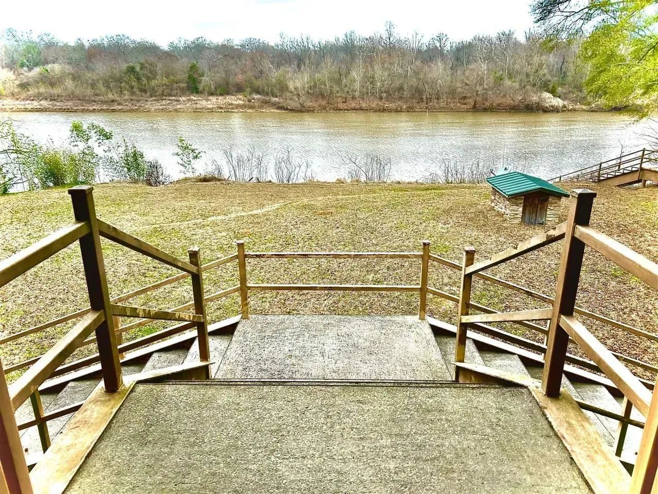 The topography of the lot is flat and level with a steel walkway and landing area. The lot offers approximately 200 ft. of main channel river frontage.