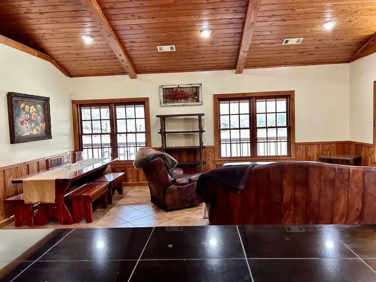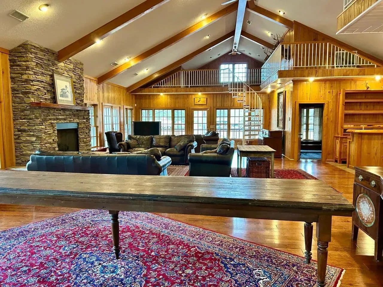 The lodge offers a covered porch that wraps around the entire structure with its very own gas fireplace offering an excellent entertainment area with exceptional views.