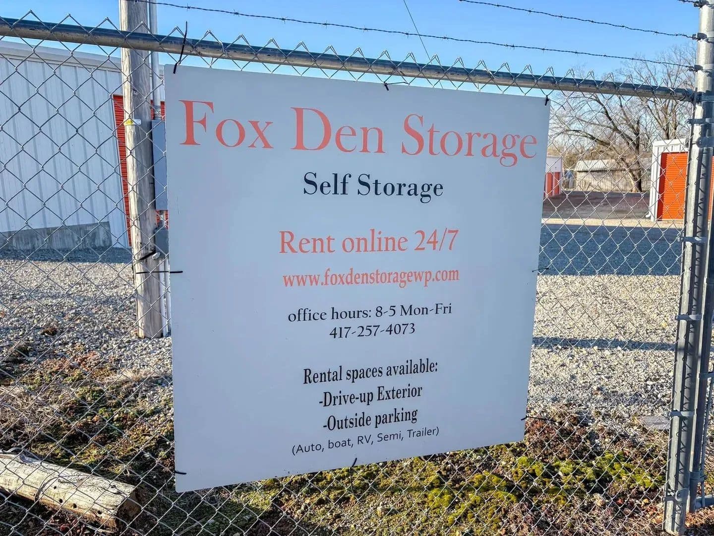 Fox Den Storage is an incredible investment opportunity that offers a state of the art facility, is fully fenced with gated access, and also has fantastic visibility to Highway 63. These units are well built and boast a very solid ROI. Land Located just on the North side of West Plains sits the Fox Den Storage facility. The property spans 1.22+/- acres with 60 total indoor rental spaces and 1 outdoor rental space for RV. These units have roll up doors, are on concrete slabs with metal framing, and offer exterior lighting up and down the buildings. Fox Den Storage is built to last and to create long term revenue stream. The business also features Easy Storage contactless system gate access which allows 24-hour access to belongings and a variety of unit sizes available. Unit sizes are as follows: