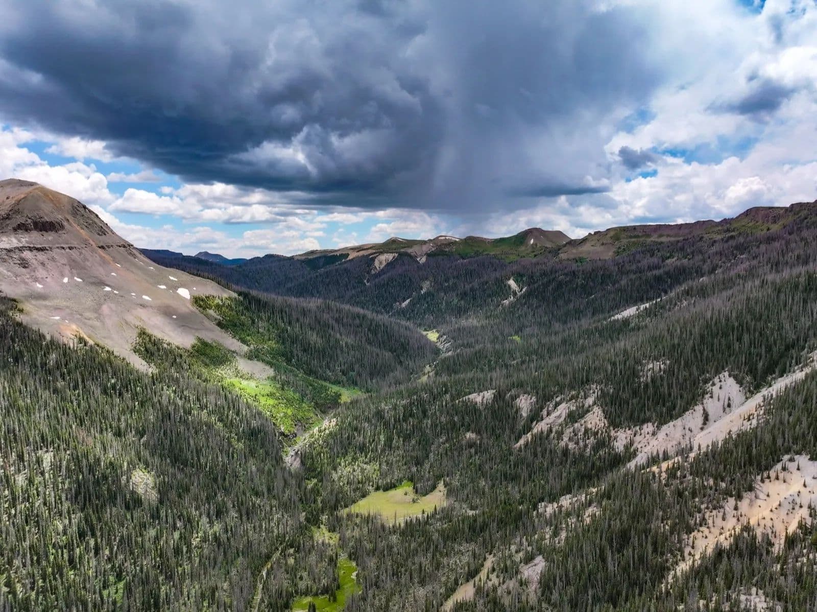 Elevations ranging from 9,300 to 9,700 feet offer spectacular views of Rhoda’s Arch, the surrounding landscapes, and nearby 12,000+ foot peaks, including Piedra Peak, located just four miles away. The land itself is a diverse mix of aspens, spruce, and willows, further contributing to the property’s raw beauty and ecological richness.