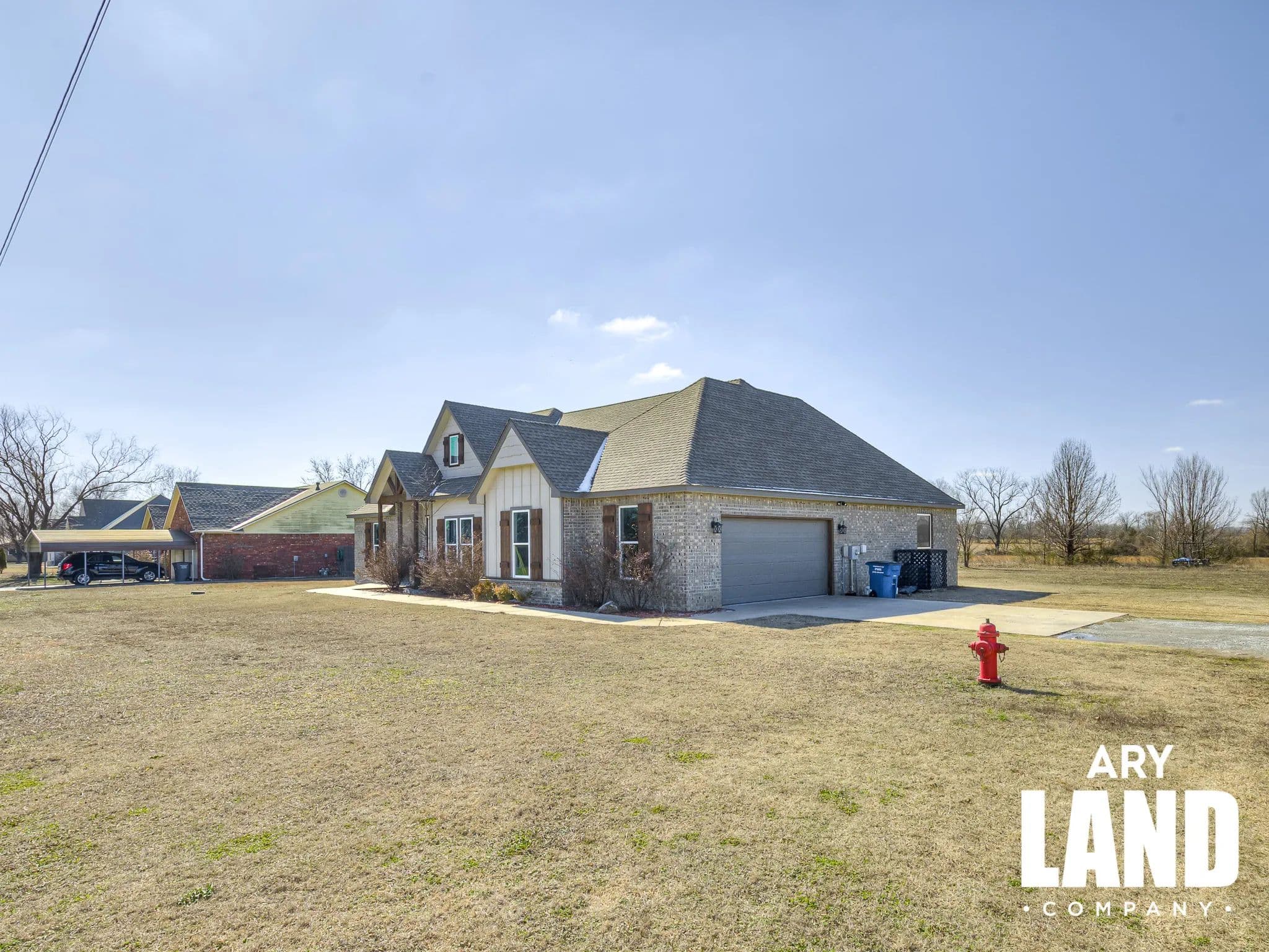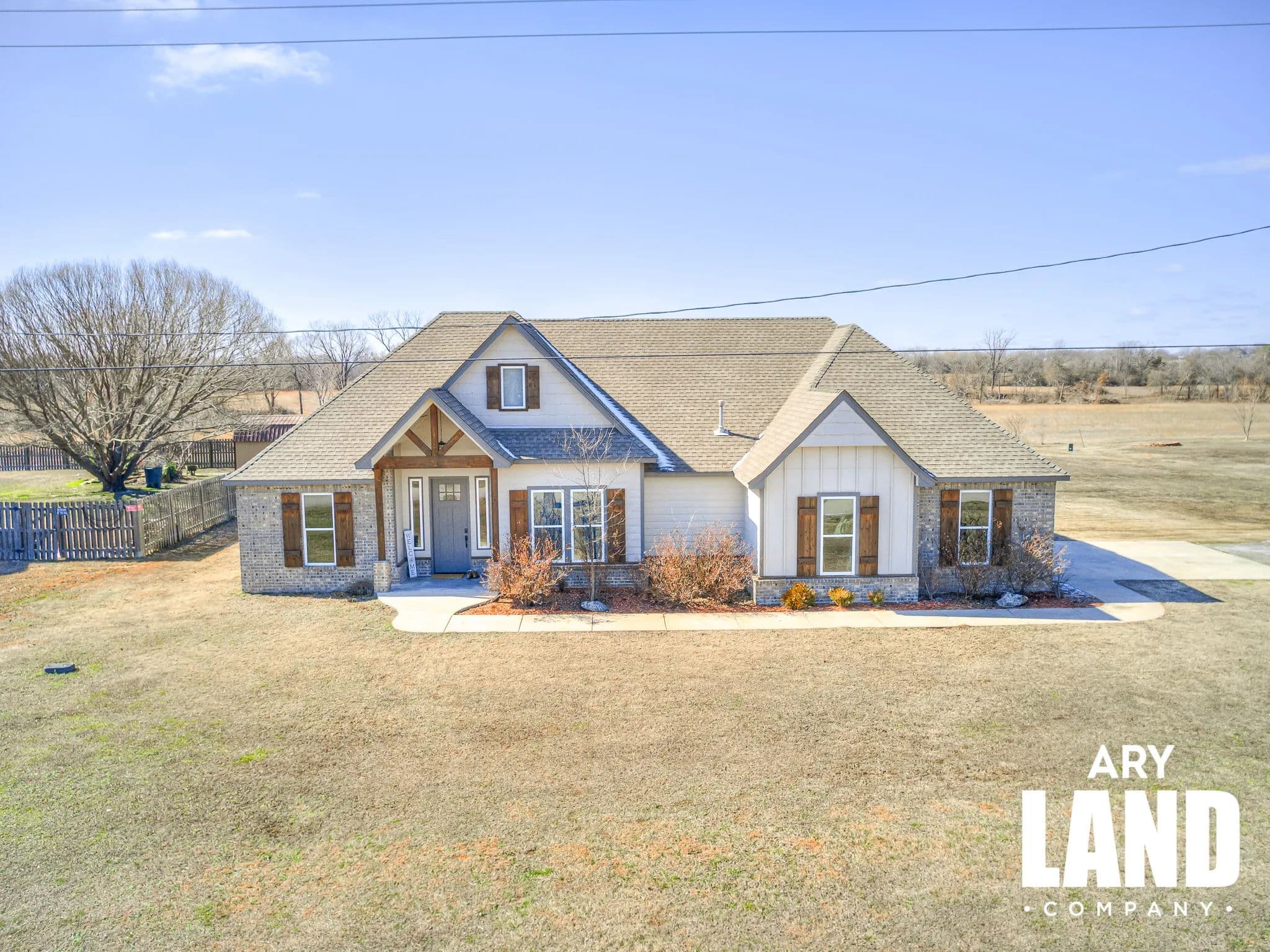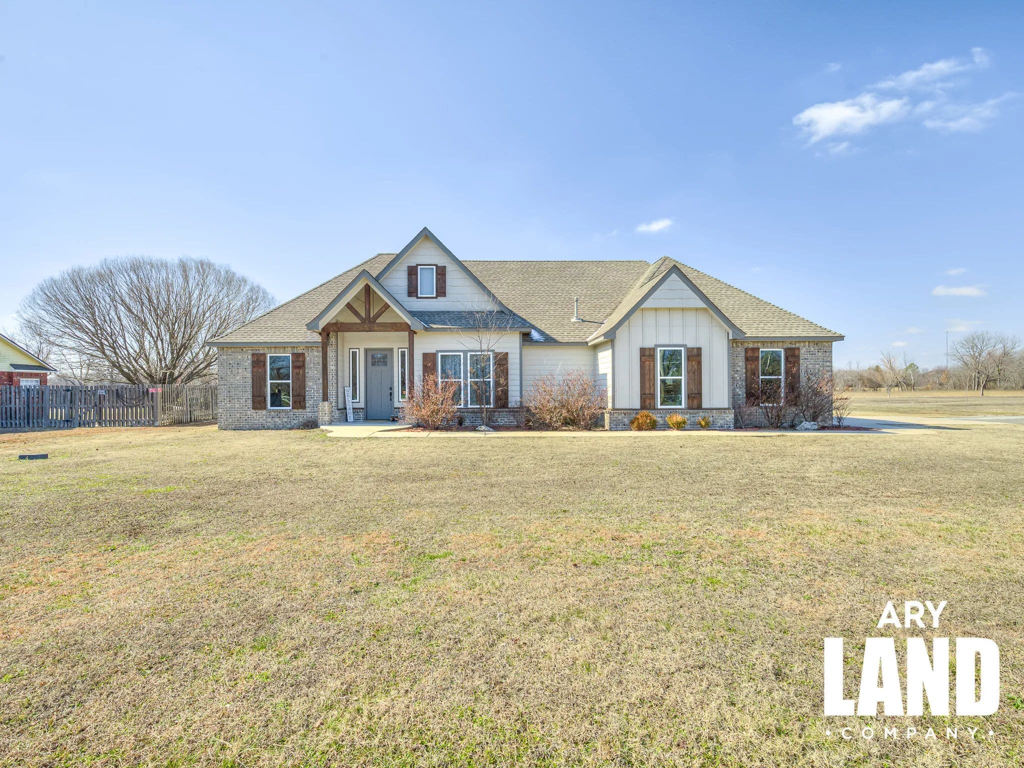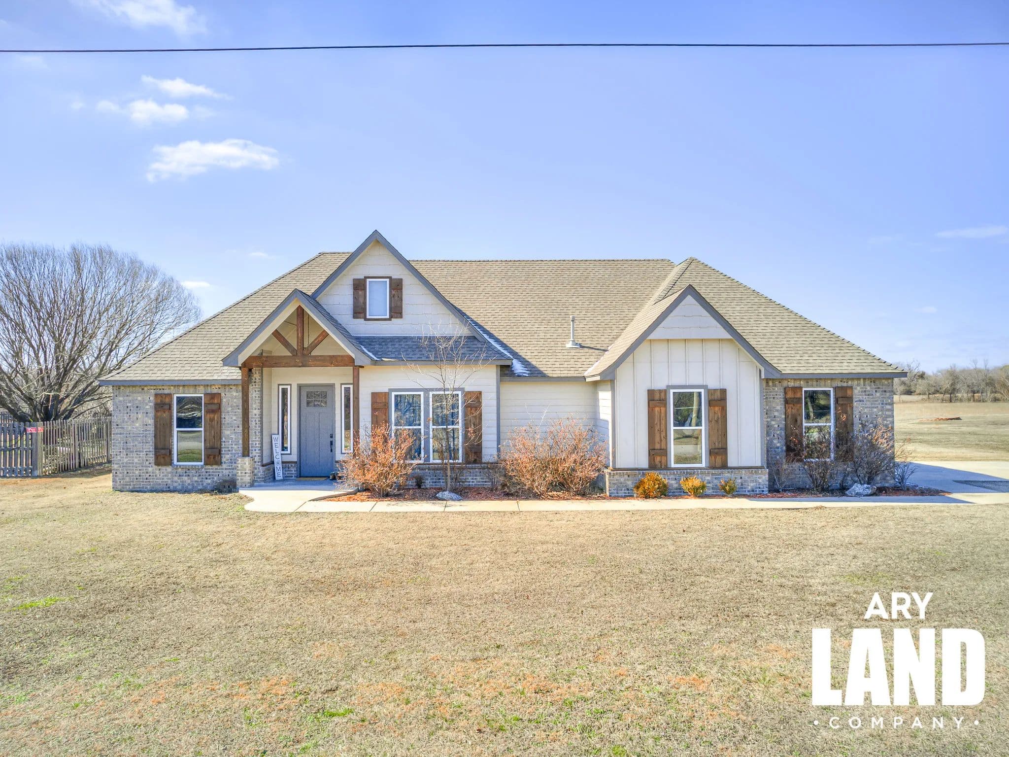Meticulously maintained home with smart features on almost a half-acre in Wagoner! From the moment you walk in, you'll appreciate the vaulted ceilings with beams in the living room, the cozy brick fireplace, and the open, spacious layout with large windows that provide plenty of natural light and overlook the expansive backyard. The exterior combines brick with board and batten siding, accented by wood details and charming wood shutters, adding to the home's character and curb appeal. Designed for both comfort and entertaining, this split floor plan features granite throughout, four bedrooms, and a versatile fourth bedroom that can be used as an office or flex space. The kitchen boasts an open layout with a large island, custom cabinets with abundant storage, stainless steel appliances, and a walk-in pantry. The master suite showcases vaulted ceilings, his-and-her sinks with a makeup vanity, a soaker tub, and a separate shower. Smart home features provide convenience with phone-controlled settings, cameras, and a security system already in place. The large covered patio offers plenty of space for gatherings or quiet relaxation. Additional features include an oversized two-car garage, a partially floored attic for extra storage, and a drop zone off the garage for added convenience. This home is eligible for a USDA loan and won’t last long! Call today to schedule your private showing.