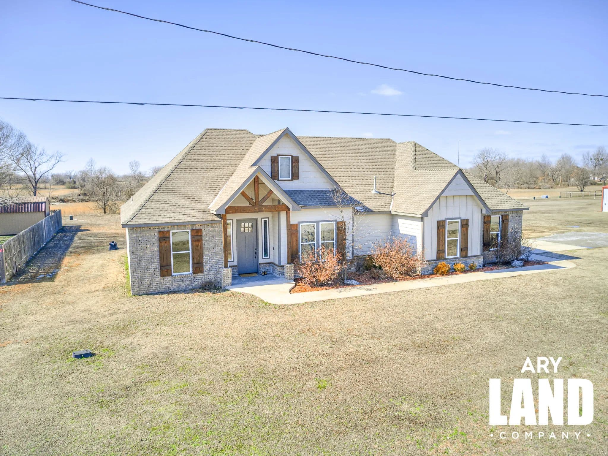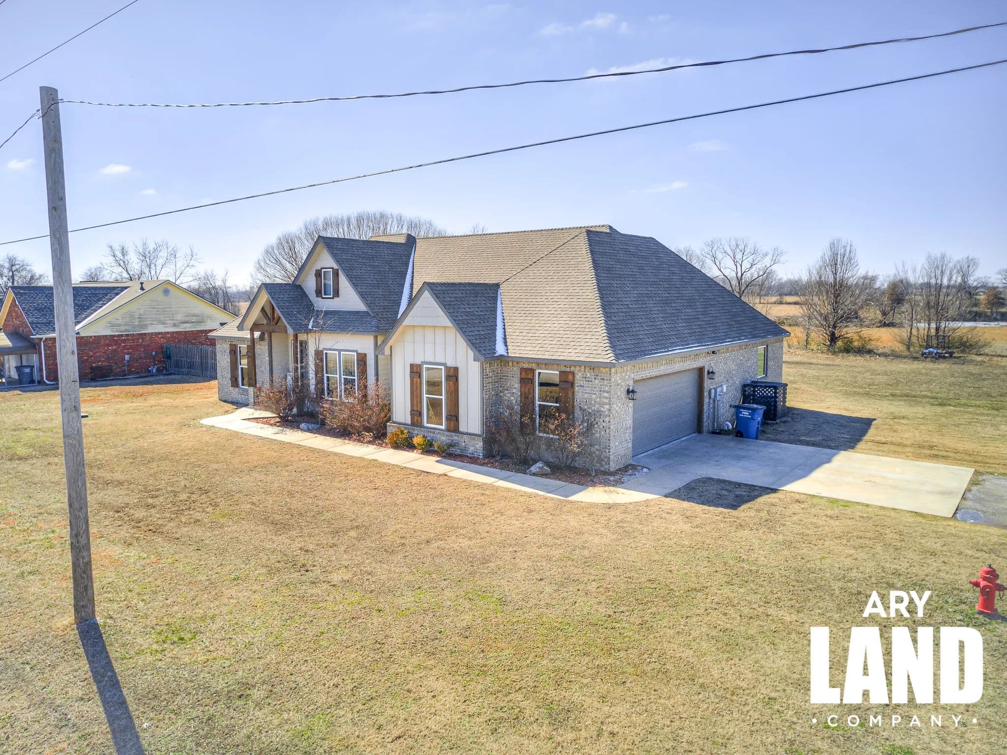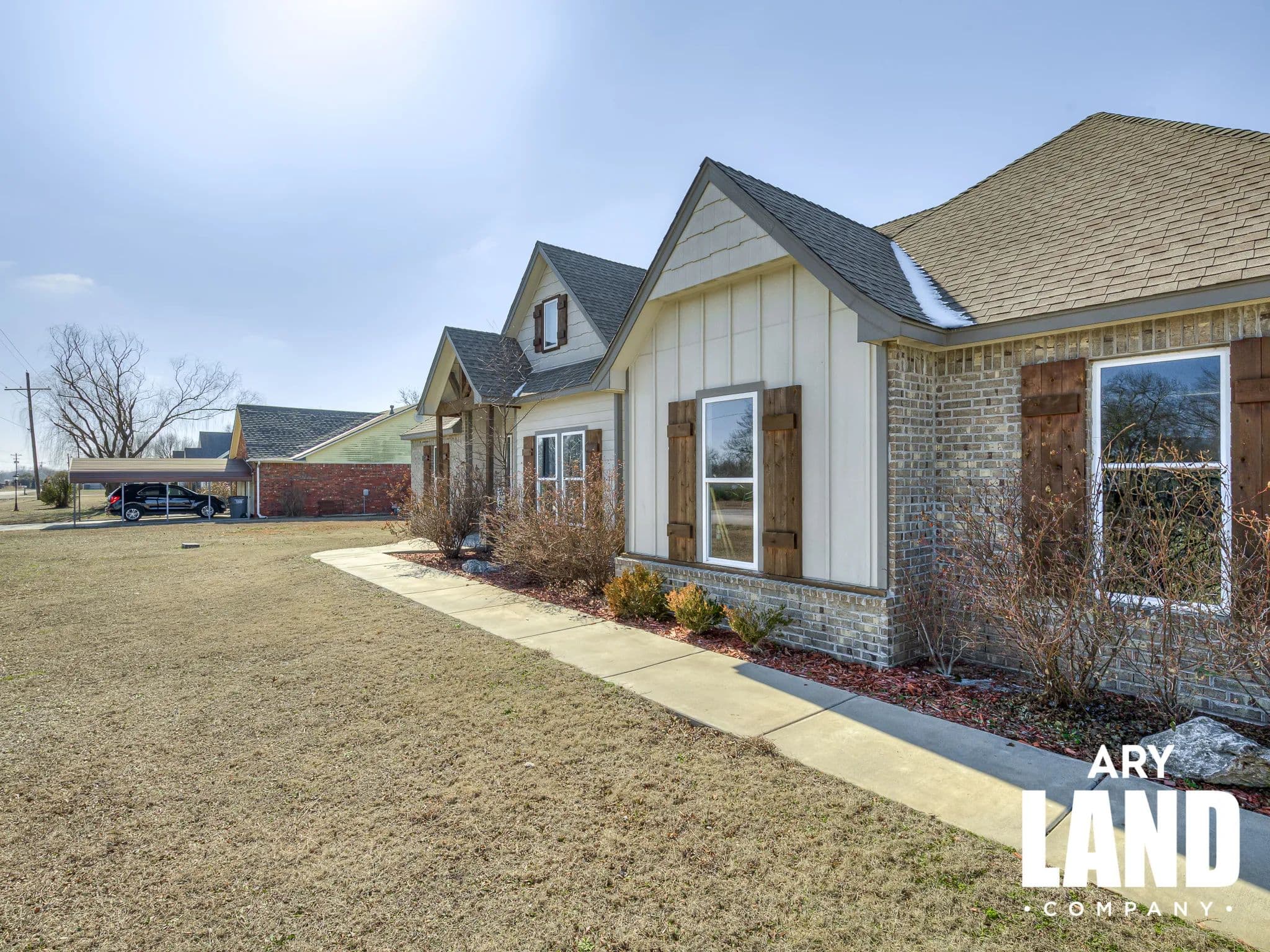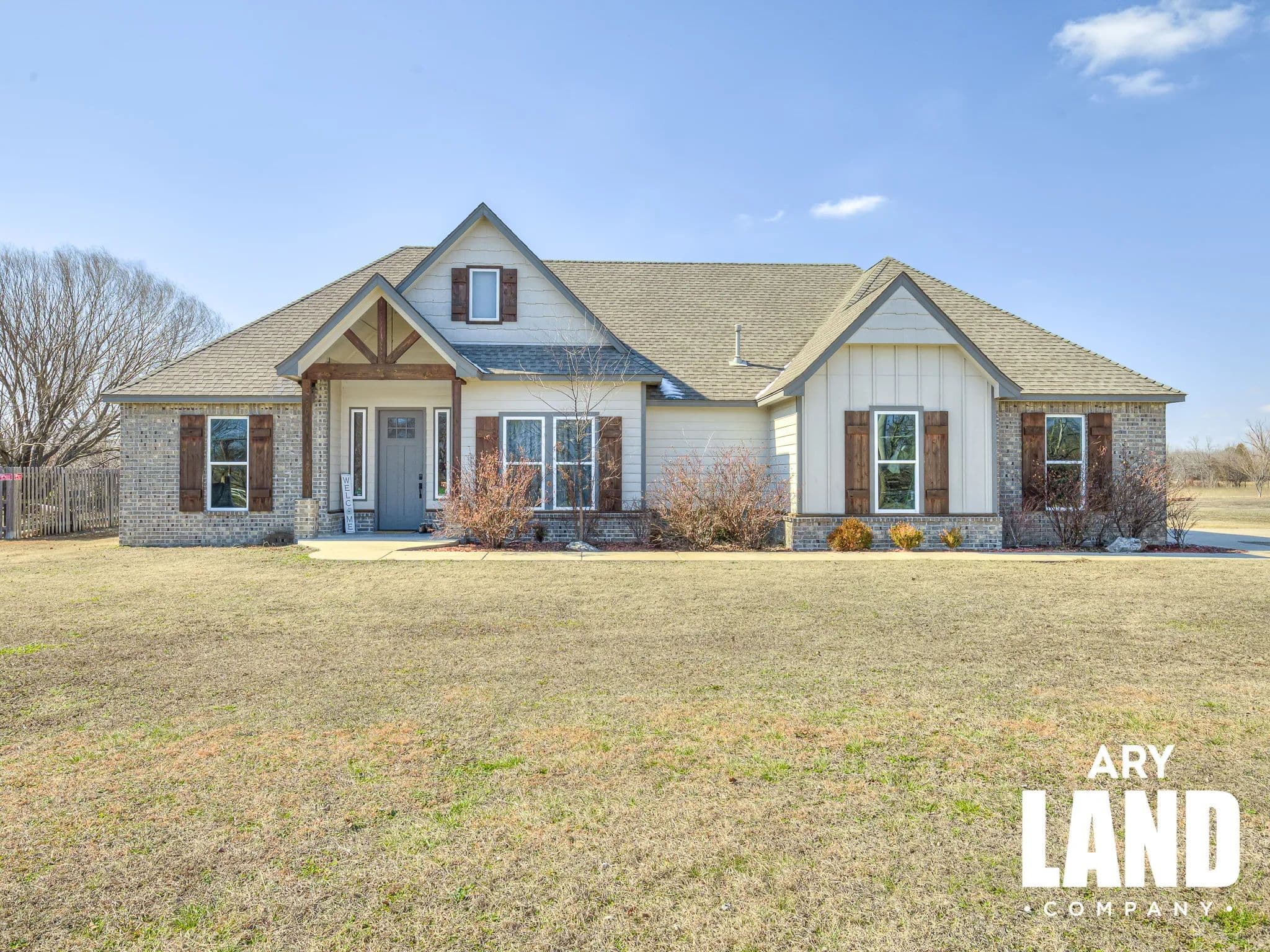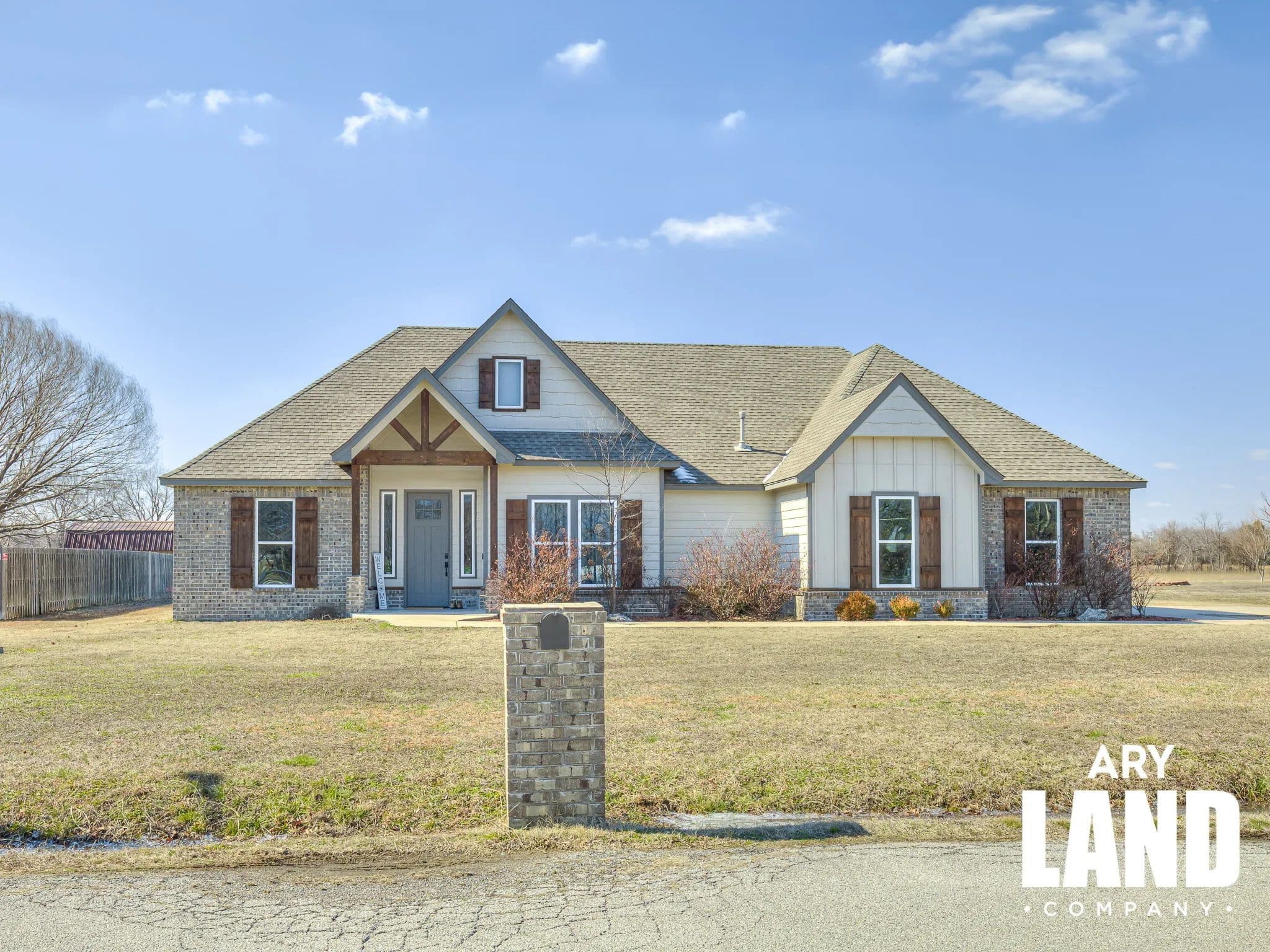 Meticulously maintained home with smart features on almost a half-acre in Wagoner! From the moment you walk in, you'll appreciate the vaulted ceilings with beams in the living room, the cozy brick fireplace, and the open, spacious layout with large windows that provide plenty of natural light and overlook the expansive backyard. The exterior combines brick with board and batten siding, accented by wood details and charming wood shutters, adding to the home's character and curb appeal. Designed for both comfort and entertaining, this split floor plan features granite throughout, four bedrooms, and a versatile fourth bedroom that can be used as an office or flex space. The kitchen boasts an open layout with a large island, custom cabinets with abundant storage, stainless steel appliances, and a walk-in pantry. The master suite showcases vaulted ceilings, his-and-her sinks with a makeup vanity, a soaker tub, and a separate shower. Smart home features provide convenience with phone-controlled settings, cameras, and a security system already in place. The large covered patio offers plenty of space for gatherings or quiet relaxation. Additional features include an oversized two-car garage, a partially floored attic for extra storage, and a drop zone off the garage for added convenience. This home is eligible for a USDA loan and won’t last long! Call today to schedule your private showing.