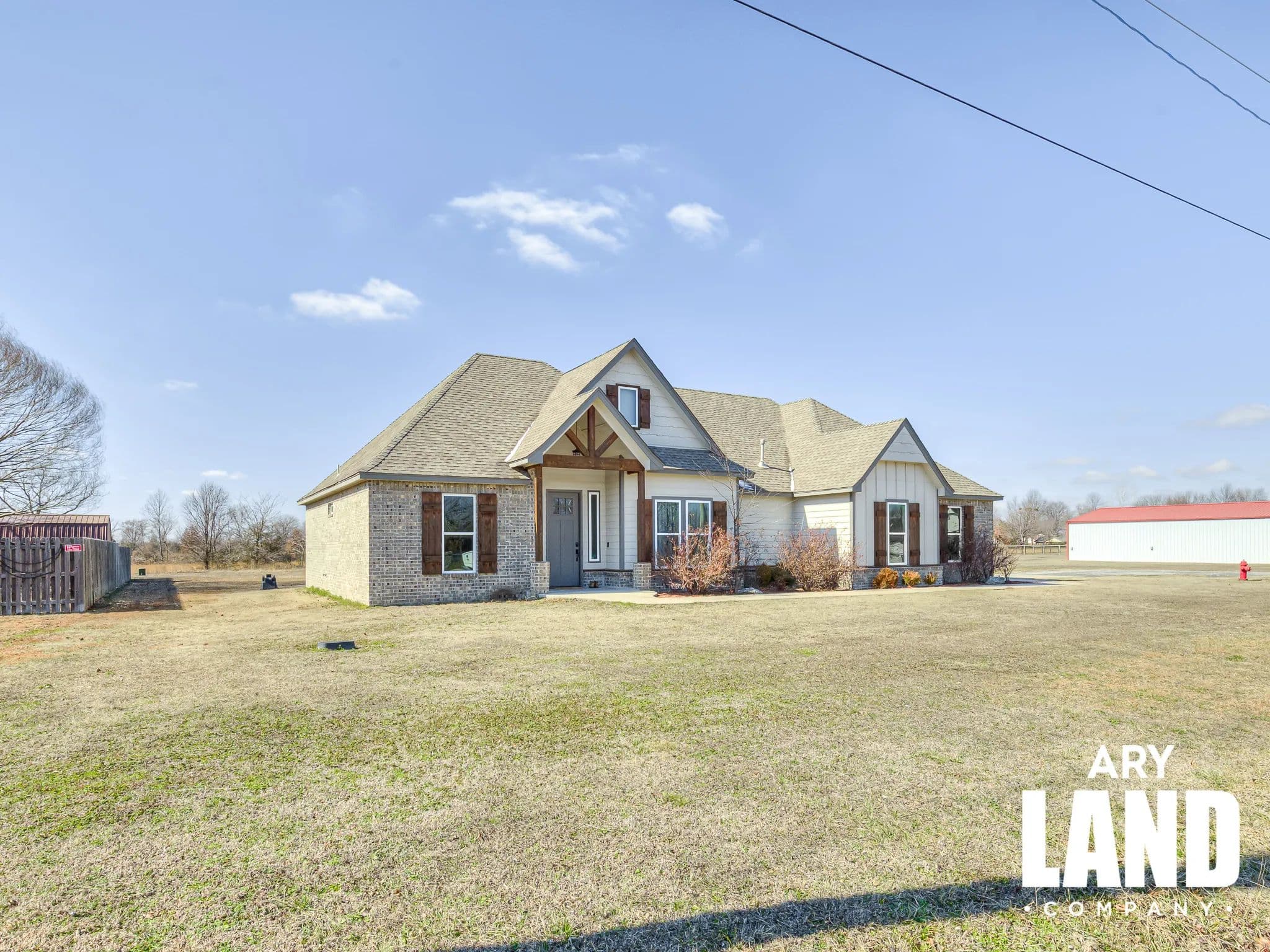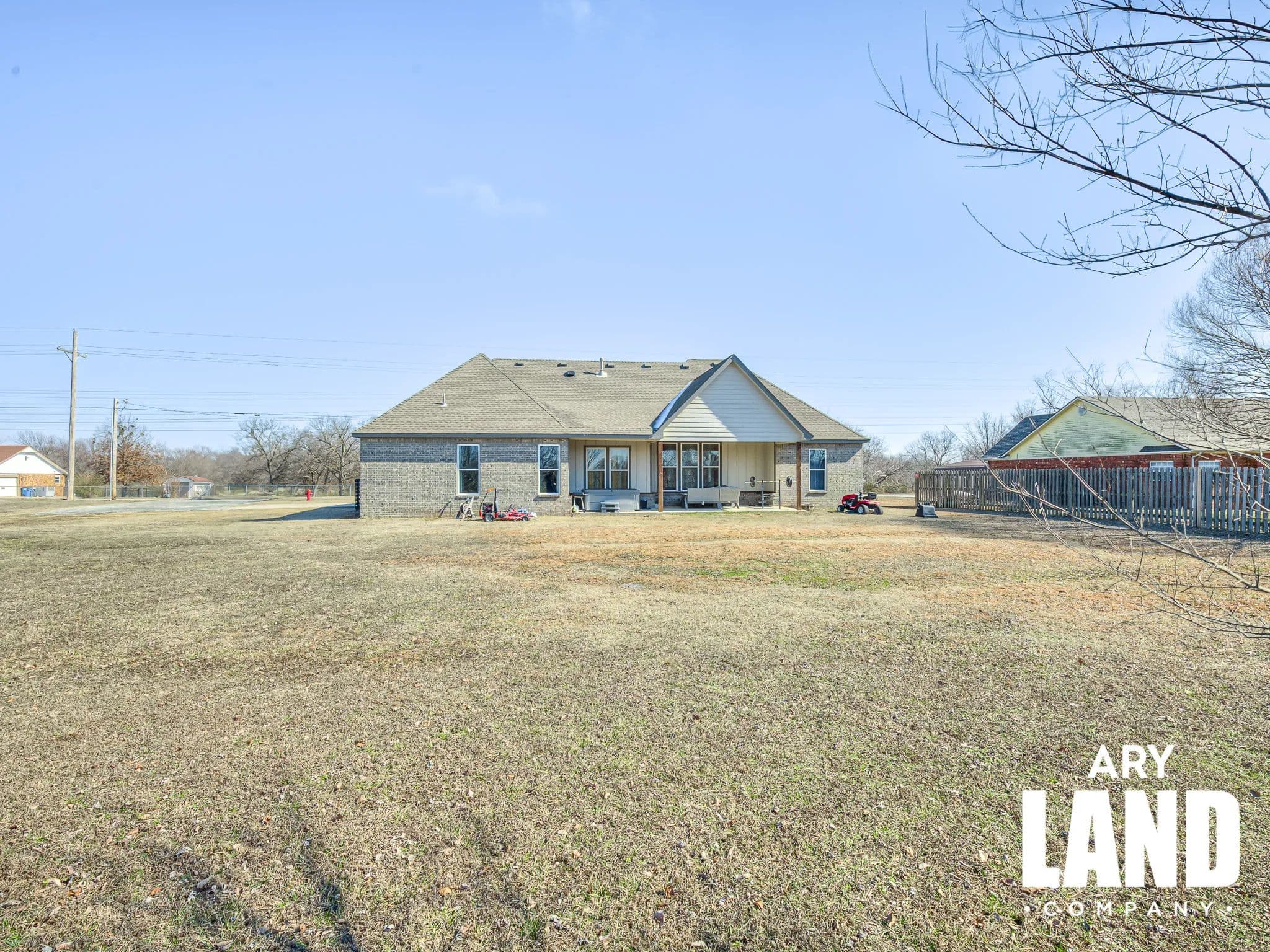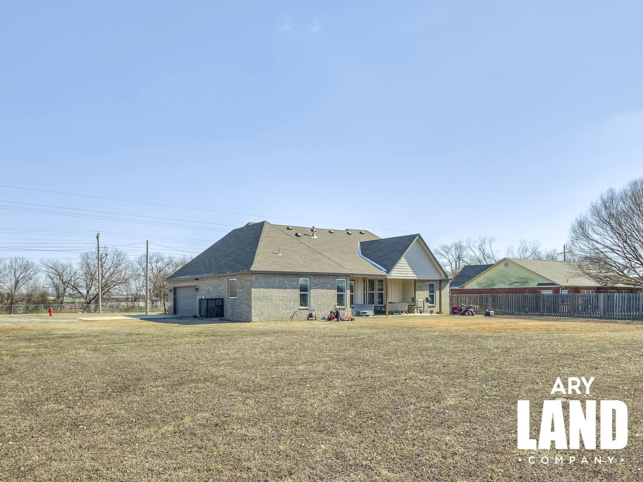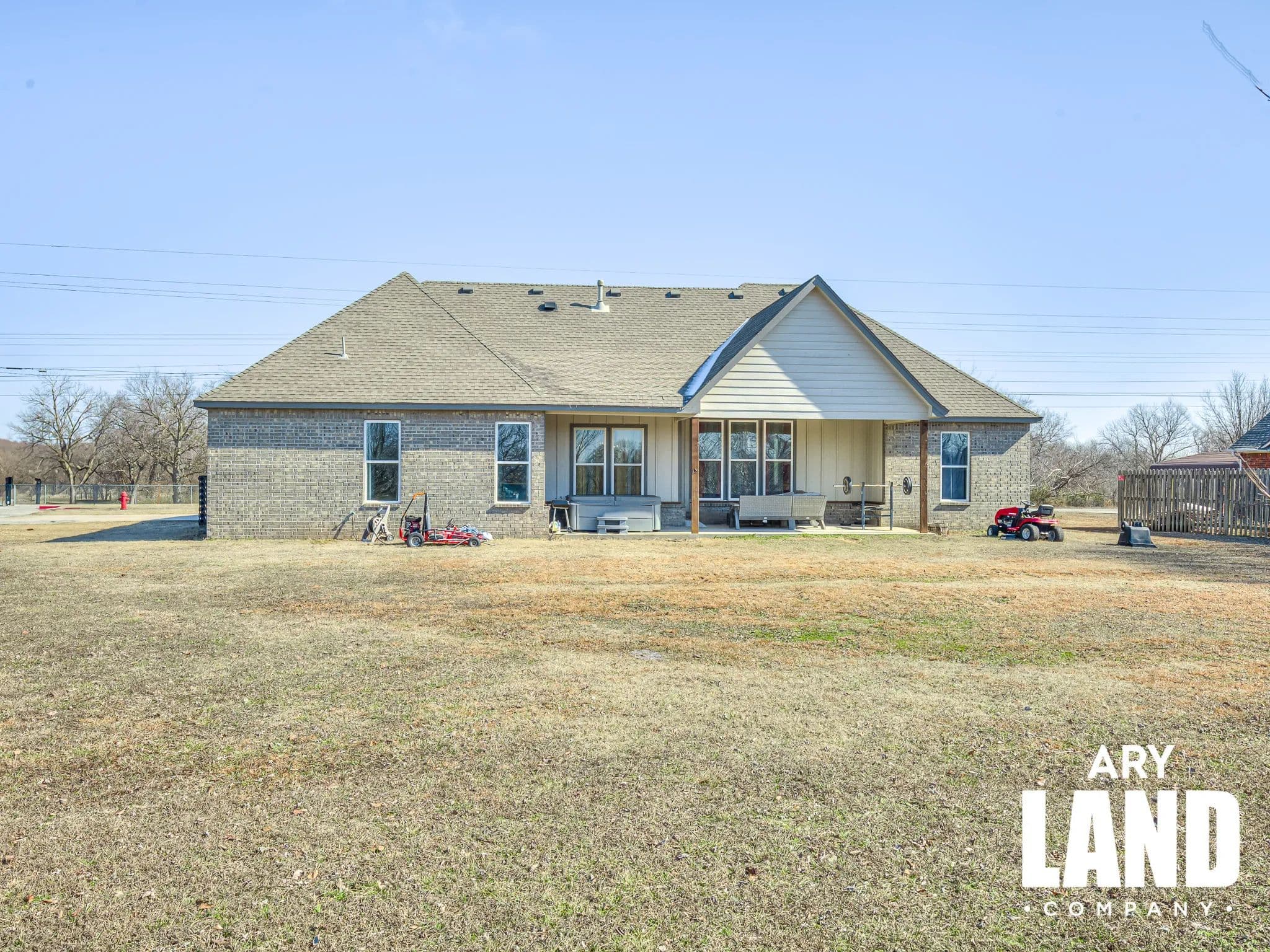 Meticulously maintained home with smart features on almost a half-acre in Wagoner! From the moment you walk in, you'll appreciate the vaulted ceilings with beams in the living room, the cozy brick fireplace, and the open, spacious layout with large windows that provide plenty of natural light and overlook the expansive backyard. The exterior combines brick with board and batten siding, accented by wood details and charming wood shutters, adding to the home's character and curb appeal. Designed for both comfort and entertaining, this split floor plan features granite throughout, four bedrooms, and a versatile fourth bedroom that can be used as an office or flex space. The kitchen boasts an open layout with a large island, custom cabinets with abundant storage, stainless steel appliances, and a walk-in pantry. The master suite showcases vaulted ceilings, his-and-her sinks with a makeup vanity, a soaker tub, and a separate shower. Smart home features provide convenience with phone-controlled settings, cameras, and a security system already in place. The large covered patio offers plenty of space for gatherings or quiet relaxation. Additional features include an oversized two-car garage, a partially floored attic for extra storage, and a drop zone off the garage for added convenience. This home is eligible for a USDA loan and won’t last long! Call today to schedule your private showing.