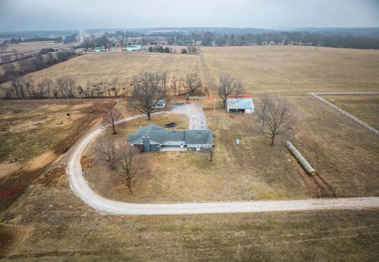 Prime Development Opportunity – 5 Miles North of Springfield! This exceptional property offers highway 13 frontage with unmatched visibility, making it perfect for commercial or residential development. With additional county road frontage, access is easy and convenient. The land is mostly level and already cleared, ideal for a variety of uses. This Farmstead with a beautiful 2000 square foot home and barn is currently rented Enclosed by a beautiful white pipe fence with barbed wire, the property is currently used for hay production but is ready for your vision and investment. Whether you're looking to develop, build, or invest, this location is unbeatable. Don't miss out on this prime piece of real estate – the perfect blend of accessibility, visibility, and potential!