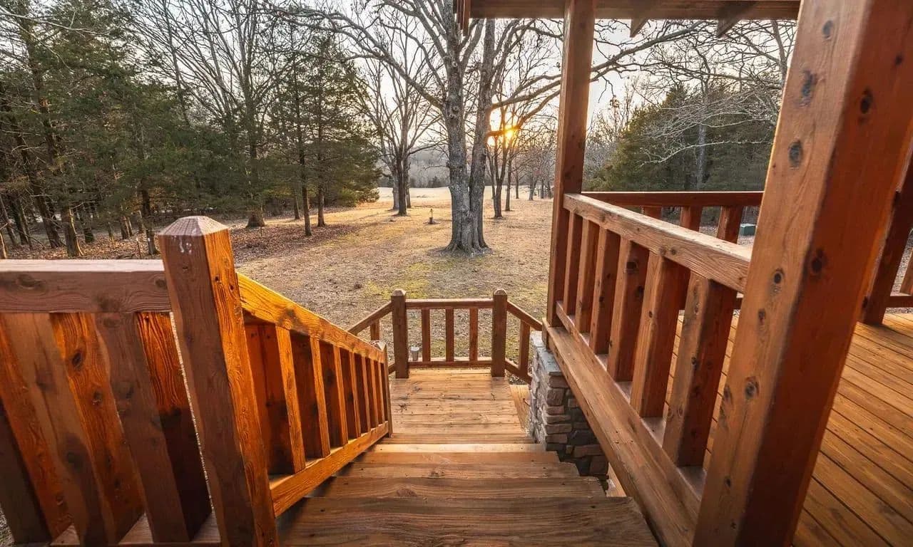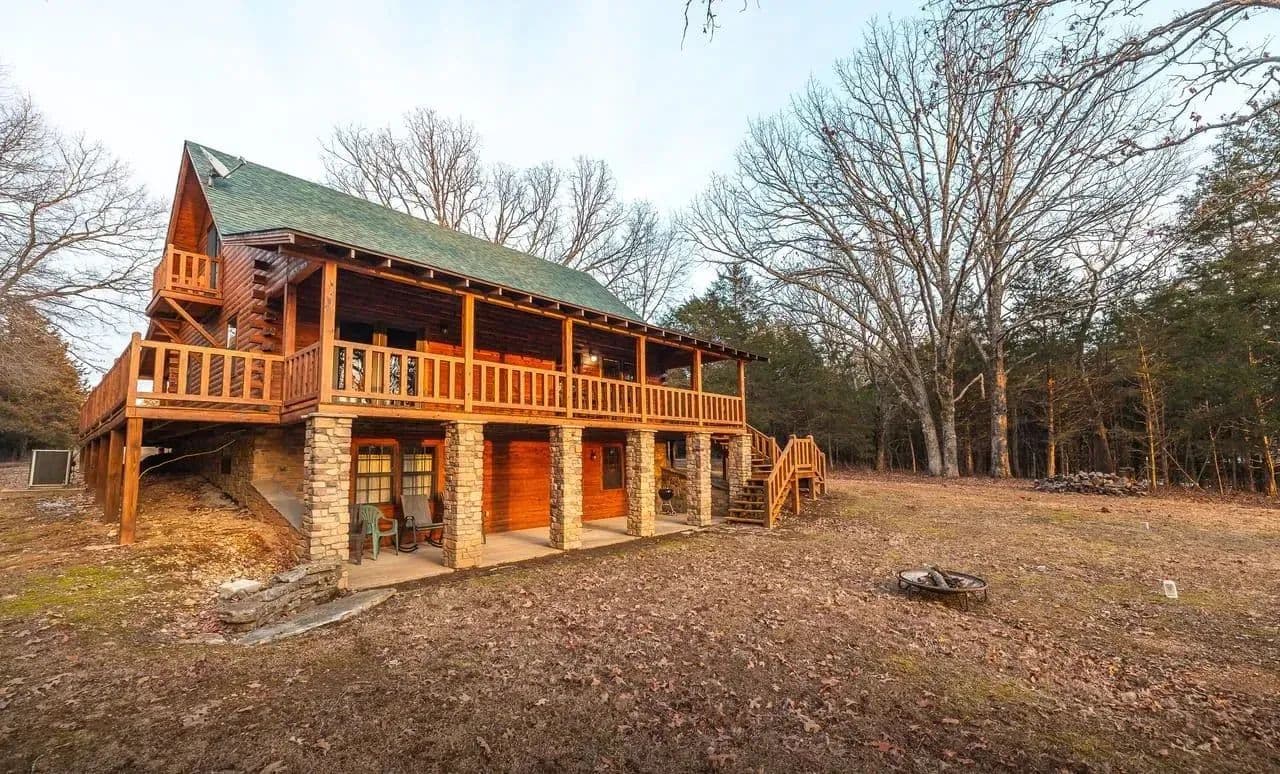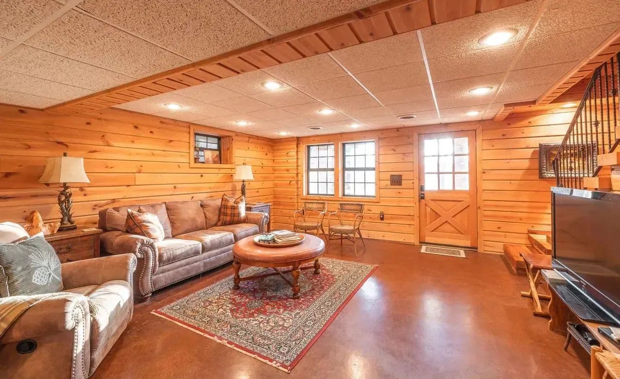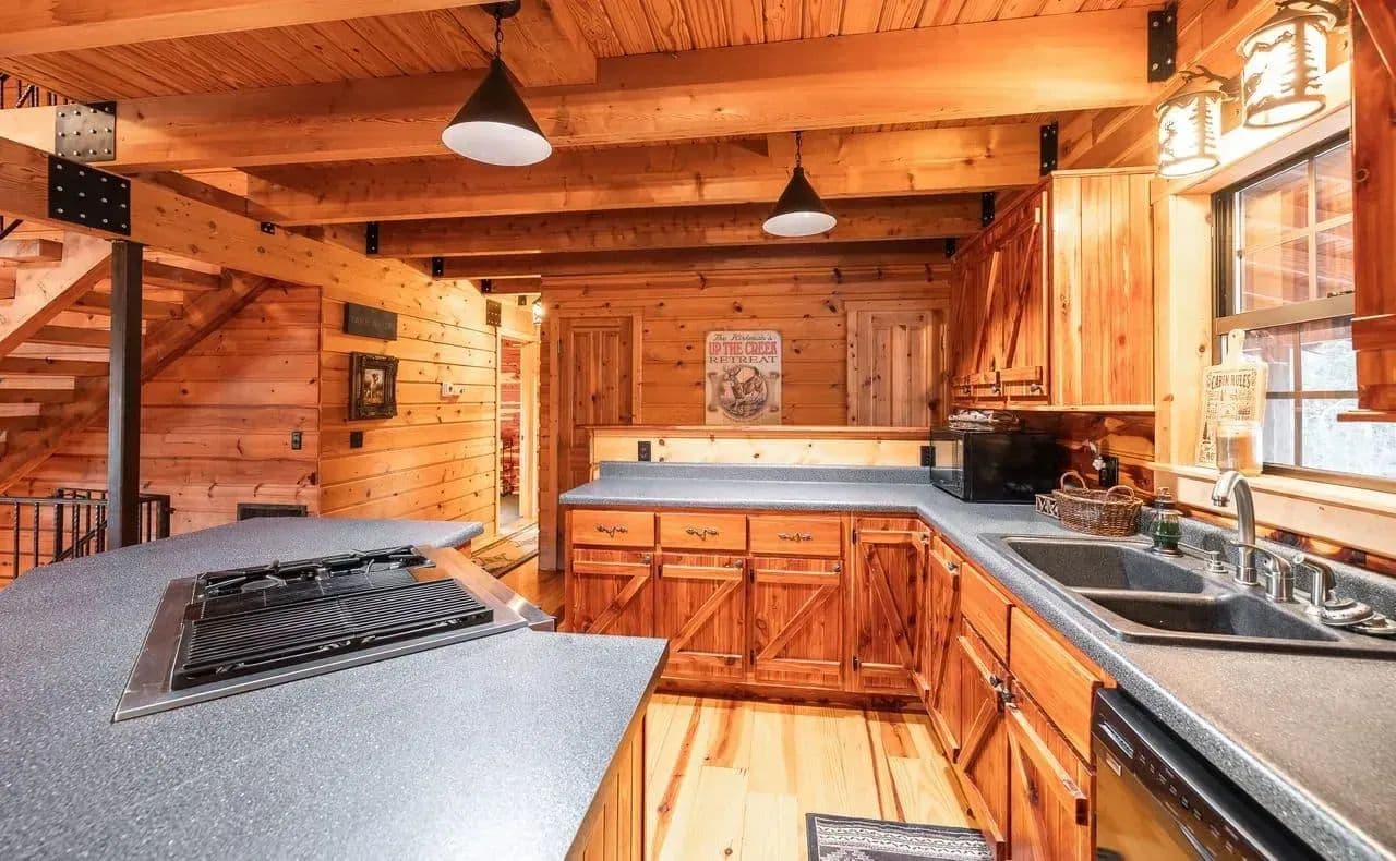 The custom-built cedar lodge spans over 2,100 sq ft and showcases true craftsmanship. With pine floors, custom beams, and elegant black iron railings, every detail of this home has been thoughtfully designed. The spacious layout includes 3 bedrooms and 2 full baths, offering both relaxation and ample space for entertaining.