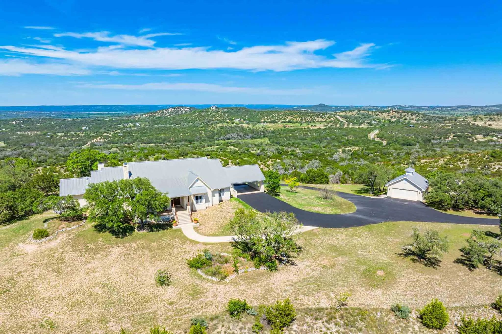 Twin Mountain Ranch showcases spectacular-unobstructed 360° views that stretch for miles across the rolling hills of Comfort and the surrounding Hill Country! The 5± acre headquarters is fully high-fenced and features a custom-built home with an inviting and functional layout, three bedrooms, and three-and-a-half bathrooms, blending comfort and elegance. Whether you’re on the porch, walking the land, or simply gazing out from the home's large windows, the scenery is absolutely breathtaking. The diverse terrain provides both dramatic elevation changes and gently rolling pastures, making this property feel expansive and secluded at the same time. Sunrises and sunsets here are truly unforgettable, with golden light cascading across the hills, offering a constantly changing and awe-inspiring backdrop.