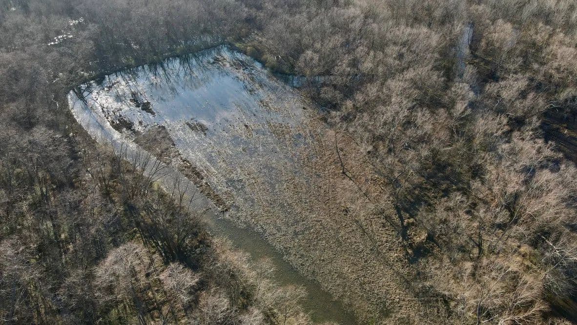 2-3 ponds on property, one measuring about 1/2 acre and the other is roughly 1.2 acres when full.