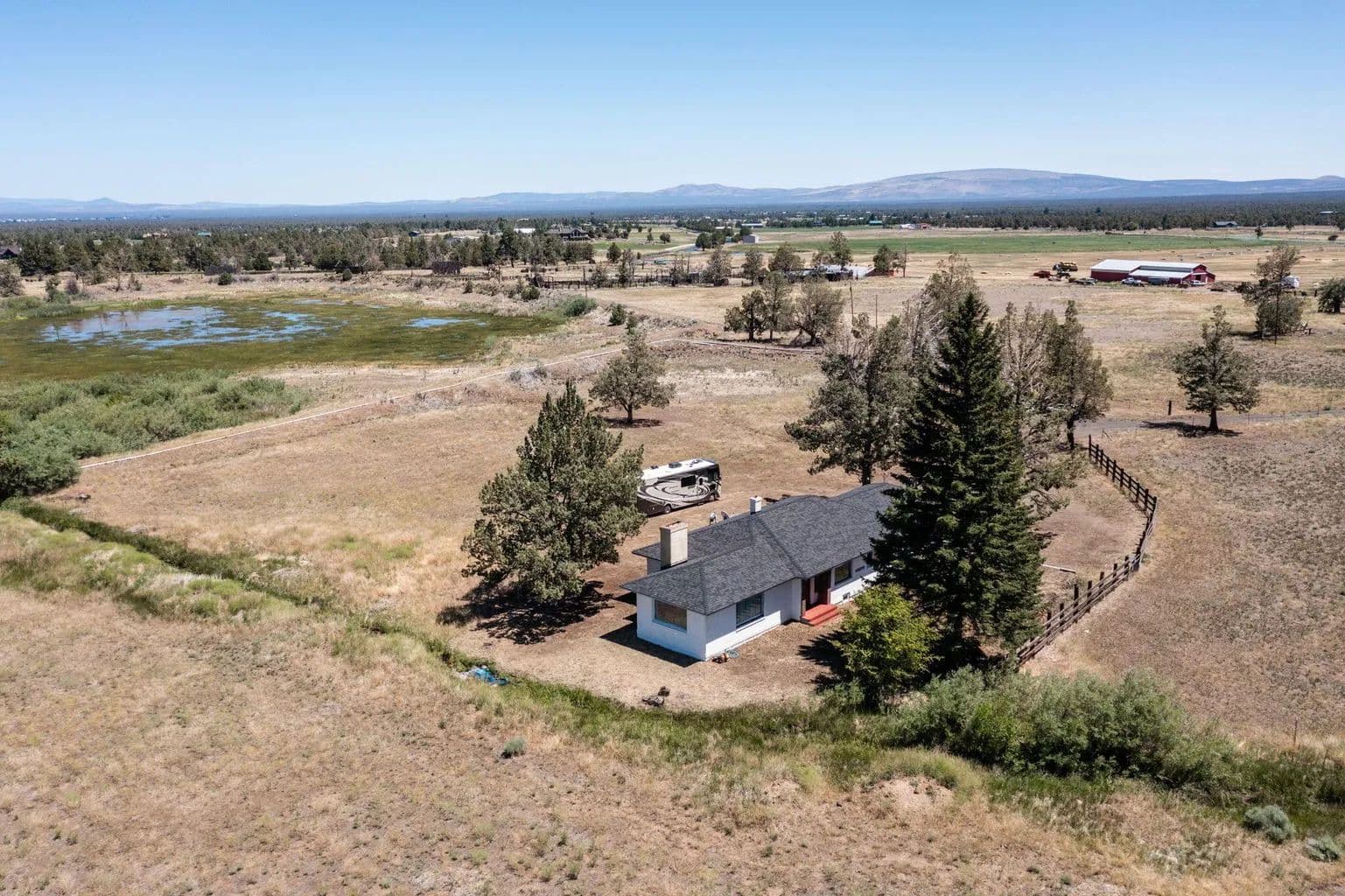 Motivated seller! This very quiet and amazing property offering 105.21 acres with 36 acres of Central Oregon Irrigation is the perfect place to call home. Nicely updated 3 bd/2 ba, 1672 sq ft home is complete with a new roof, fully remodeled bathroom with tile shower, new quartz counter tops, cabinets, and flooring in the kitchen. This property is perfect for a farm with its 6 acre pond, 4200 sq ft shop that has electricity, or for livestock/horses and just living peacefully with panoramic mountain views. Two tax lots: 86.84 acres on parcel #112484 and 18.37 acres on parcel #194196.