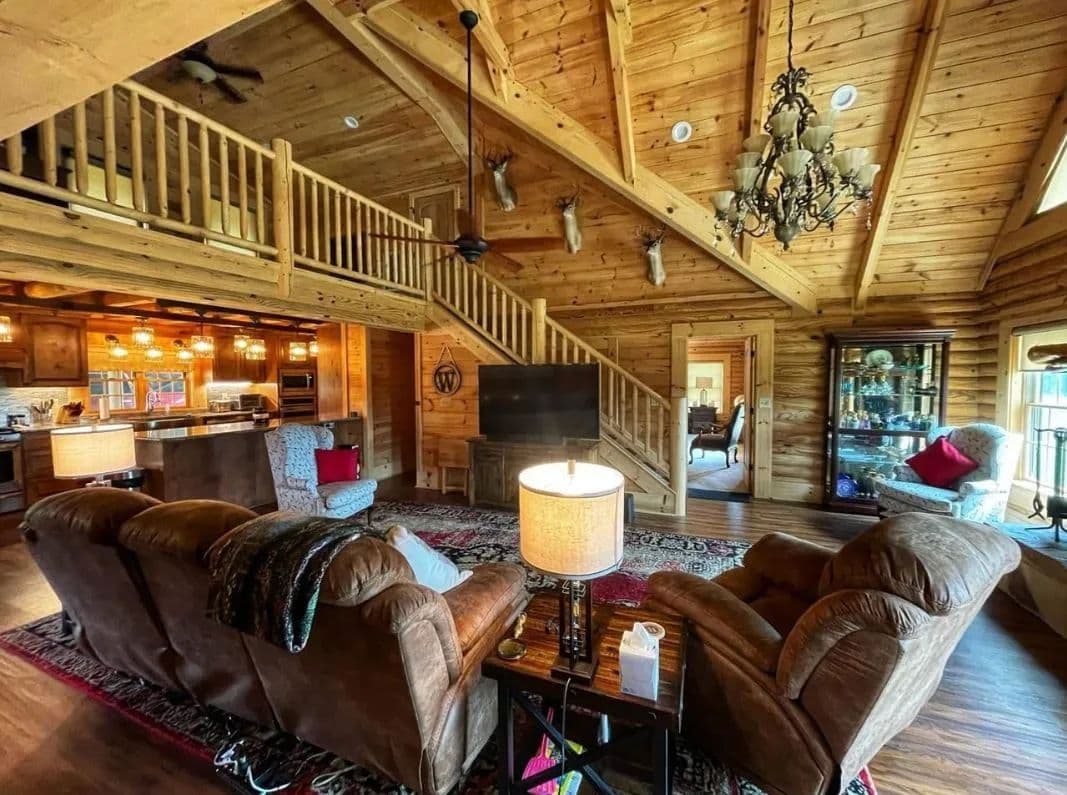 Welcome to Weisinger Ridge - A 102± acre versatile property located between Centerville and Buffalo. Southland custom built log home with great attention to detail, open concept, granite countertops, gas range with oven and a double oven as well. Living room has vaulted ceiling with large windows and stone fireplace. The primary suite is large and can accommodate large furniture, primary bathroom with separate walk-in shower, free standing tub, and double vanities. The 2nd bedroom has a full bath. Both rooms have large walk-in closets. The loft upstairs is currently being used as a home office but could easily be converted into a third bedroom. It does have a half bathroom as well as a covered porch. Home comes with 20KW Generac Propane generator. The outside building has a climate-controlled storage room, fully enclosed 15x40 shop,