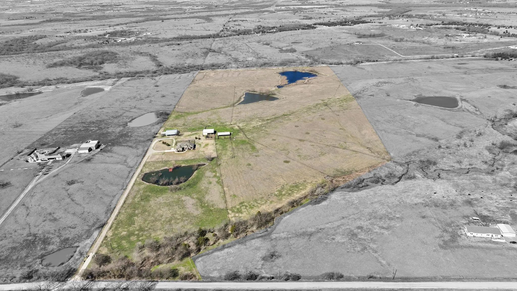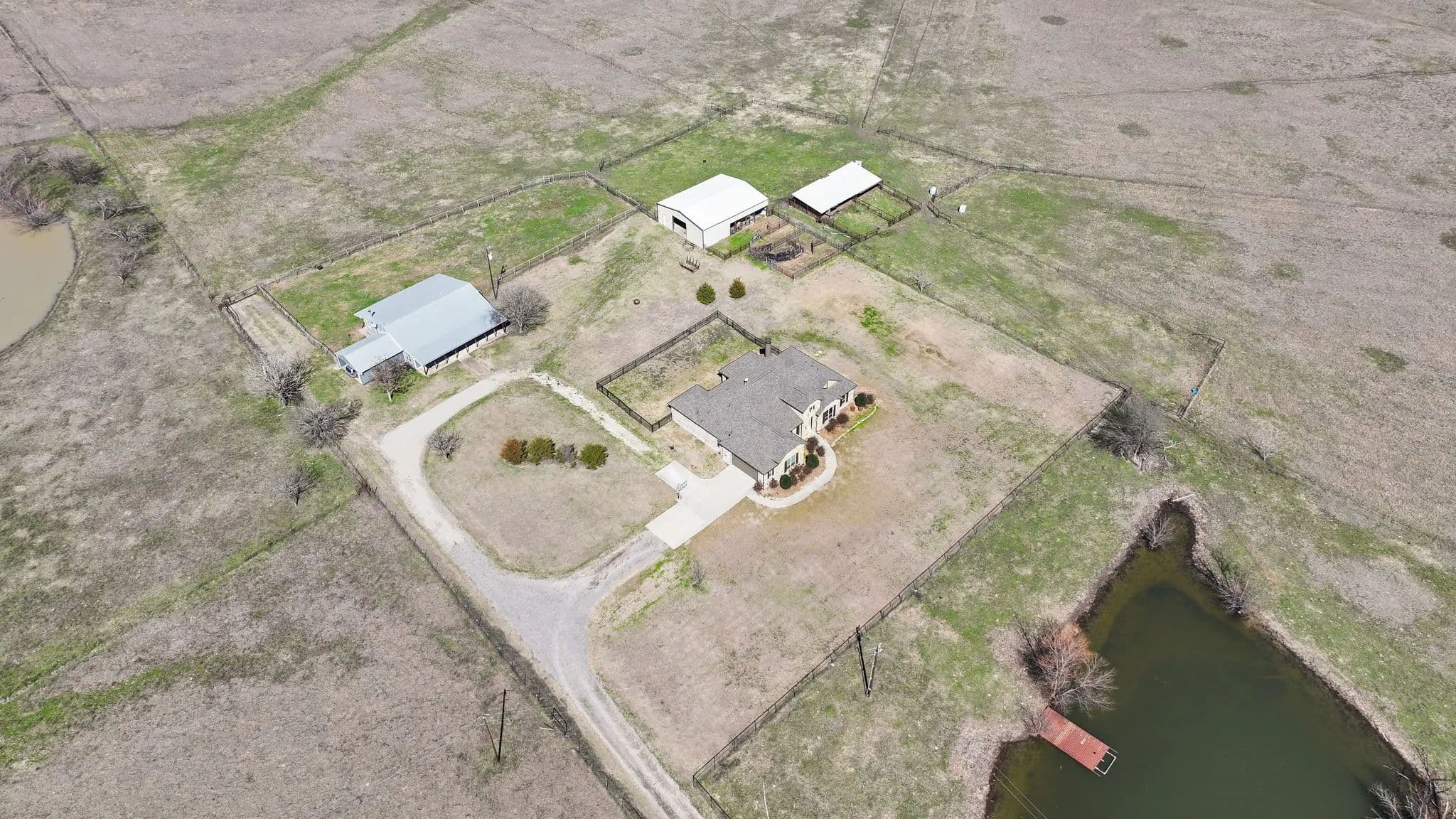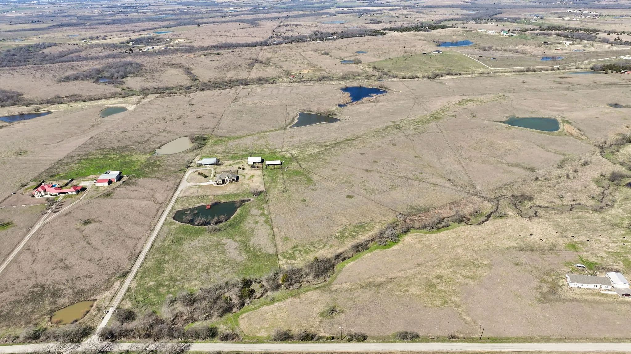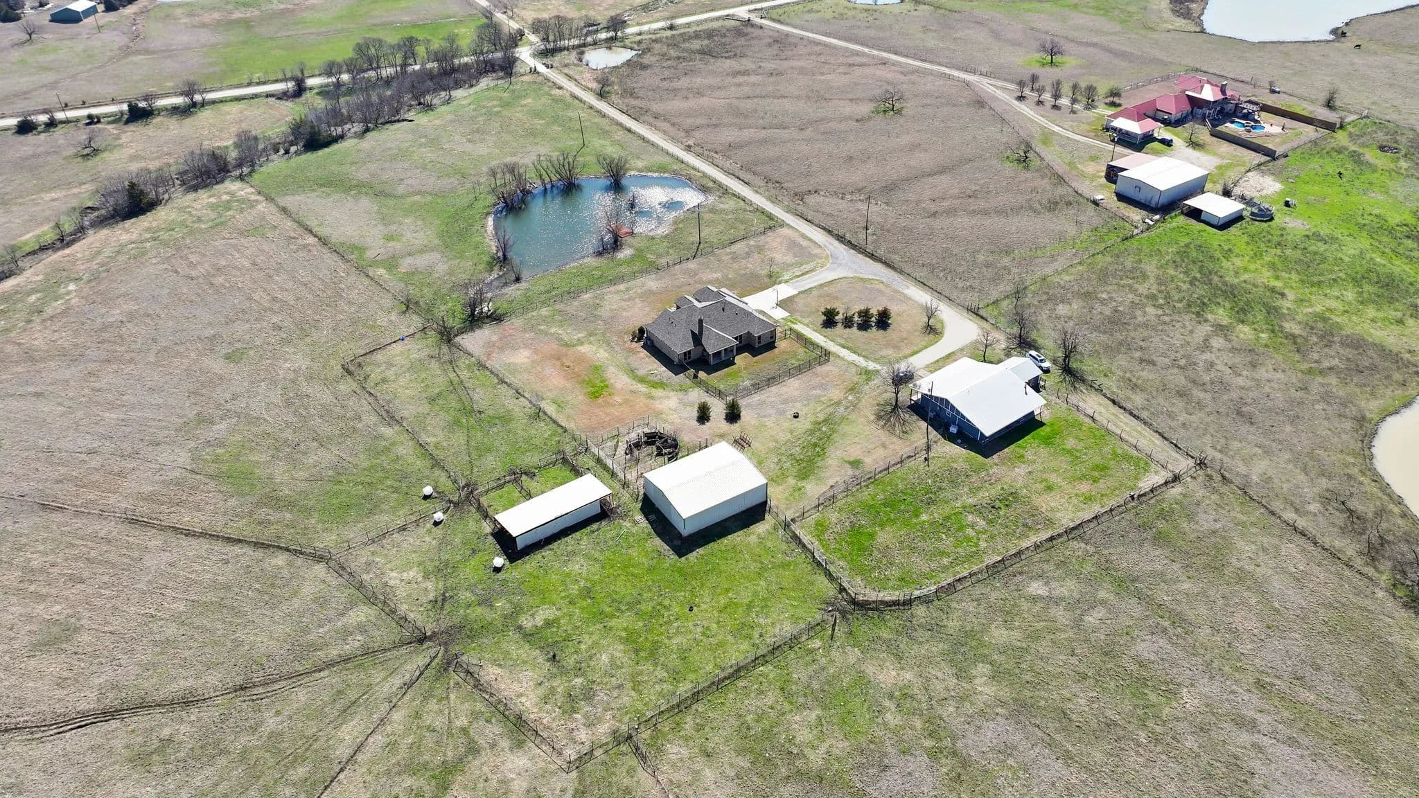 50-Acre Ranch Retreat with Two Homes, Fishing Ponds & Livestock Facilities. Discover the perfect blend of tranquility and functionality on this breathtaking 50-acre ranch with security gate, featuring two spacious homes, a barn, three ponds, one of which covers 2 acres and is stocked, and prime land for livestock. Whether you’re seeking a private retreat, a multi-generational homestead, or an income-producing property, this estate delivers. The 2,600 sq. ft. primary home exudes comfort and charm with an open floor plan, large windows overlooking the scenic landscape, and a chef’s kitchen designed for entertaining. A cozy fireplace anchors the living space, while the spacious bedrooms provide a restful escape. A short walk away, the 2,000 sq. ft. secondary home is ideal for guests, rental income, or extended family. It offers modern conveniences, generous living areas, and stunning views of the surrounding countryside. Outdoors, the possibilities are endless. Cross fencing provides seven pastures and property is already operating under an agriculture exemption. Three serene ponds, one complete with a dock, provide the perfect setting for fishing, canoeing, or simply unwinding at sunset. The land features a large barn with electric, making it move-in ready for ranching or equestrian enthusiasts. With expansive pastures, mature trees, and peaceful surroundings, this ranch is a rare opportunity to own a private paradise that’s still within reach of modern conveniences. Only a short drive to I-45 or 287. Experience the best of country living—schedule your tour today!