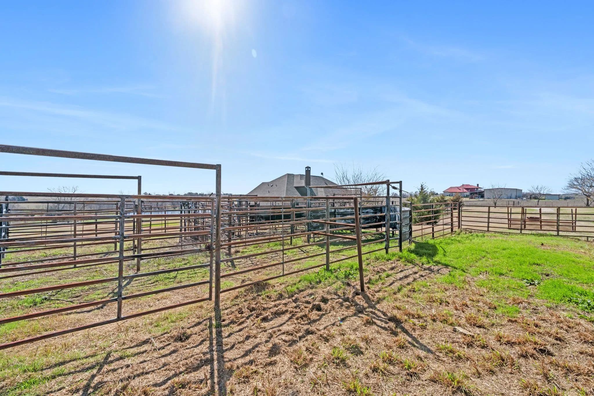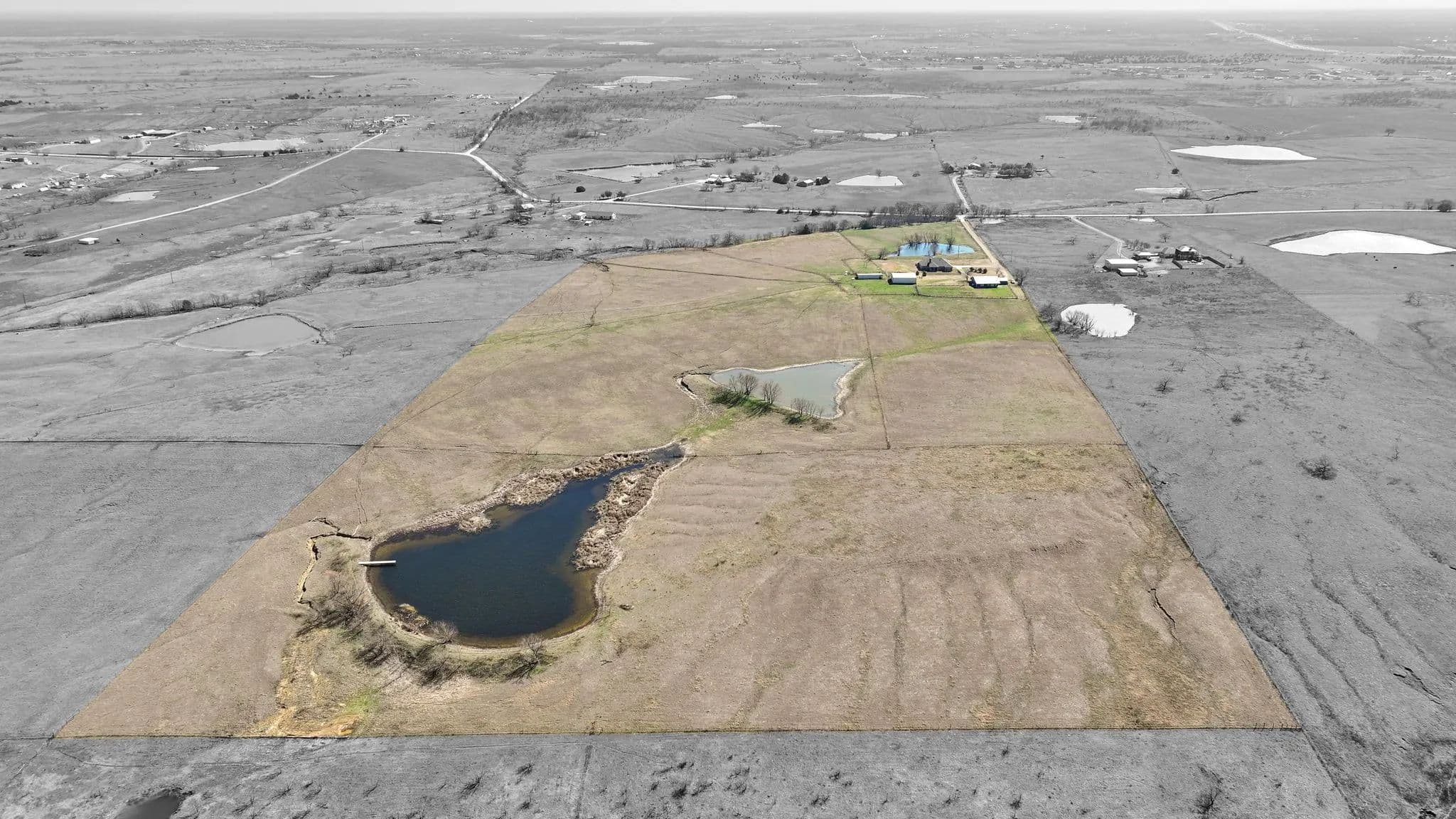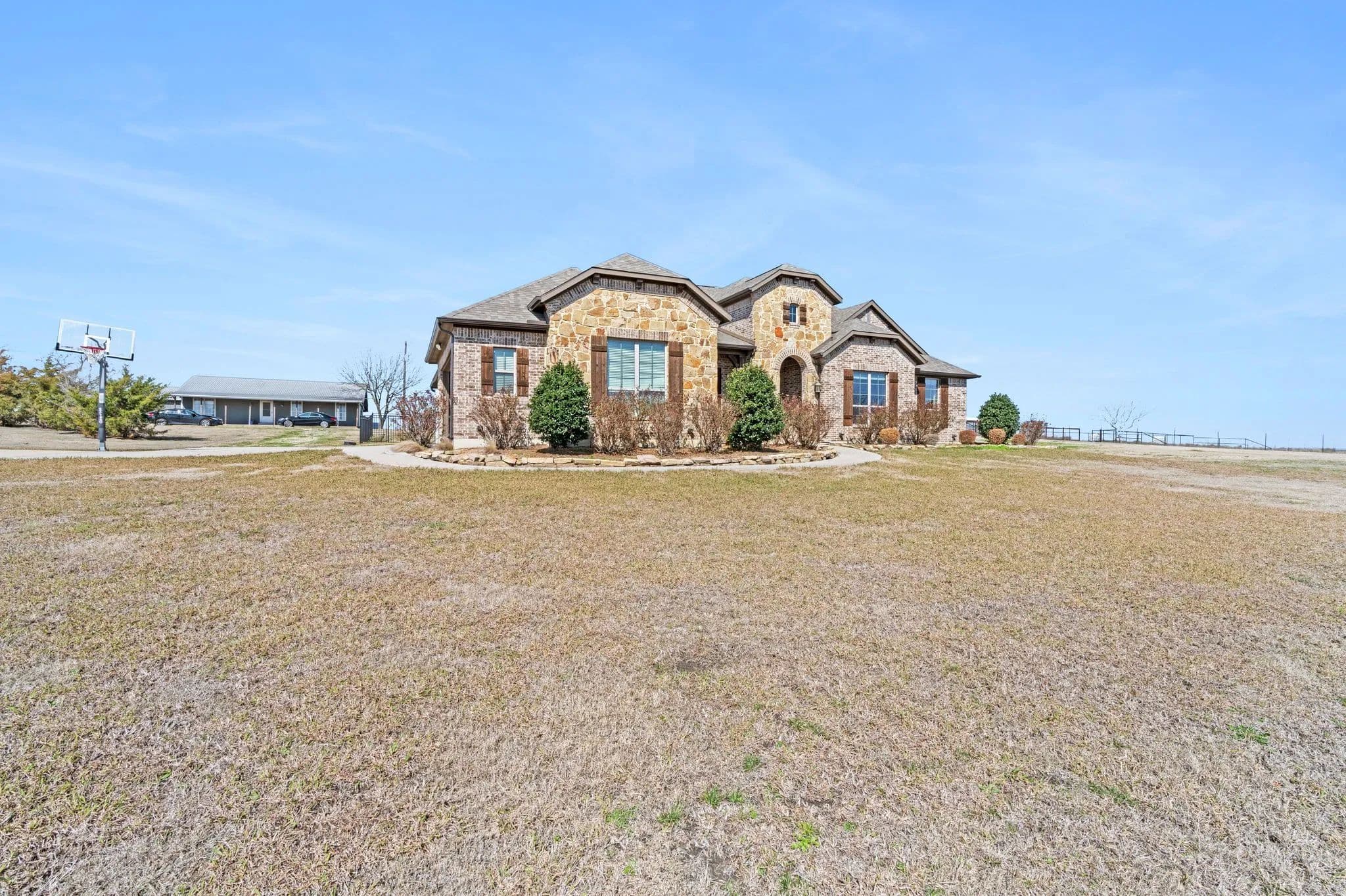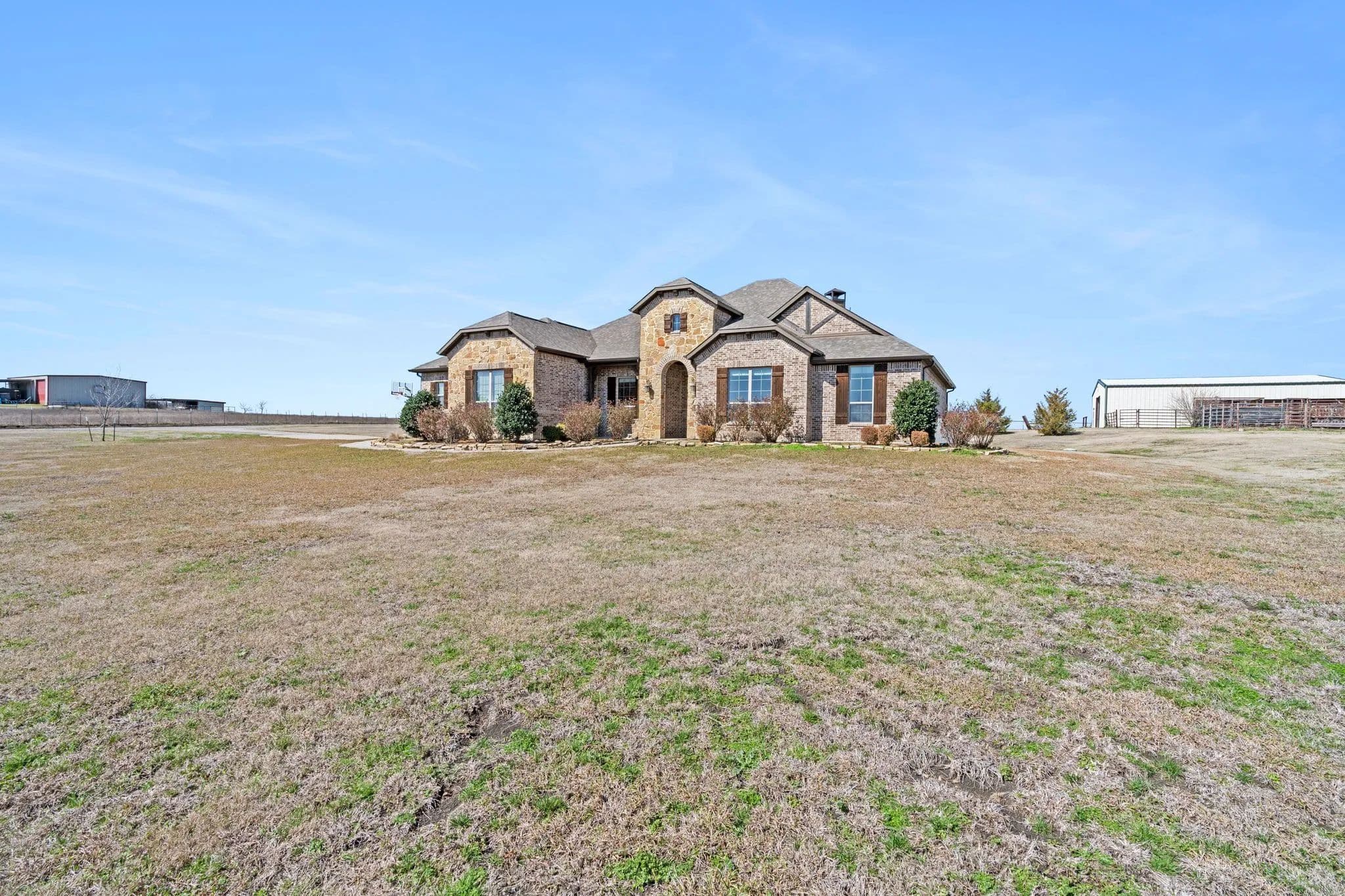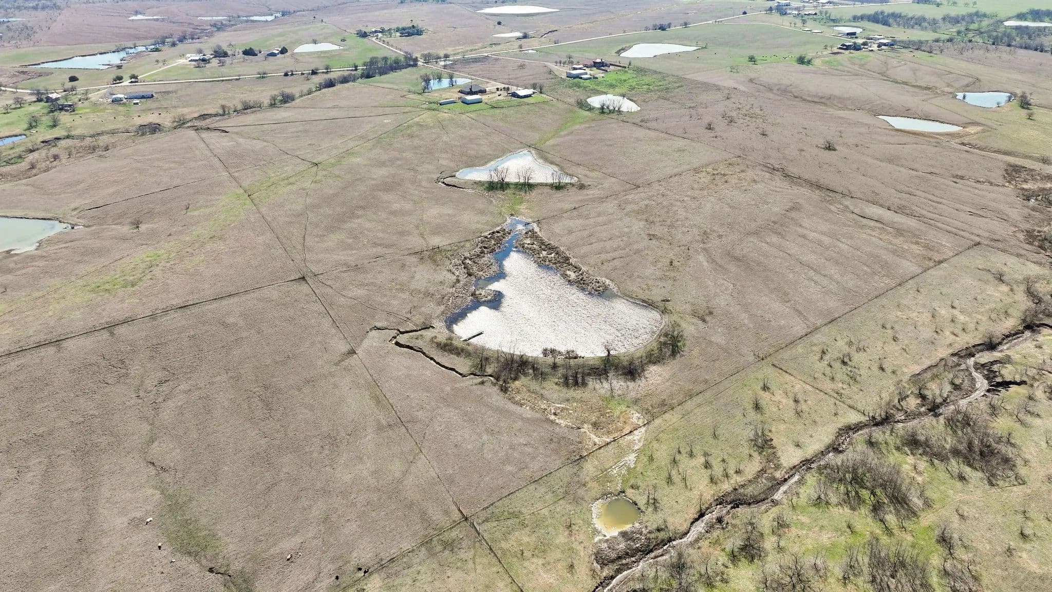 50-Acre Ranch Retreat with Two Homes, Fishing Ponds & Livestock Facilities. Discover the perfect blend of tranquility and functionality on this breathtaking 50-acre ranch with security gate, featuring two spacious homes, a barn, three ponds, one of which covers 2 acres and is stocked, and prime land for livestock. Whether you’re seeking a private retreat, a multi-generational homestead, or an income-producing property, this estate delivers. The 2,600 sq. ft. primary home exudes comfort and charm with an open floor plan, large windows overlooking the scenic landscape, and a chef’s kitchen designed for entertaining. A cozy fireplace anchors the living space, while the spacious bedrooms provide a restful escape. A short walk away, the 2,000 sq. ft. secondary home is ideal for guests, rental income, or extended family. It offers modern conveniences, generous living areas, and stunning views of the surrounding countryside. Outdoors, the possibilities are endless. Cross fencing provides seven pastures and property is already operating under an agriculture exemption. Three serene ponds, one complete with a dock, provide the perfect setting for fishing, canoeing, or simply unwinding at sunset. The land features a large barn with electric, making it move-in ready for ranching or equestrian enthusiasts. With expansive pastures, mature trees, and peaceful surroundings, this ranch is a rare opportunity to own a private paradise that’s still within reach of modern conveniences. Only a short drive to I-45 or 287. Experience the best of country living—schedule your tour today!
