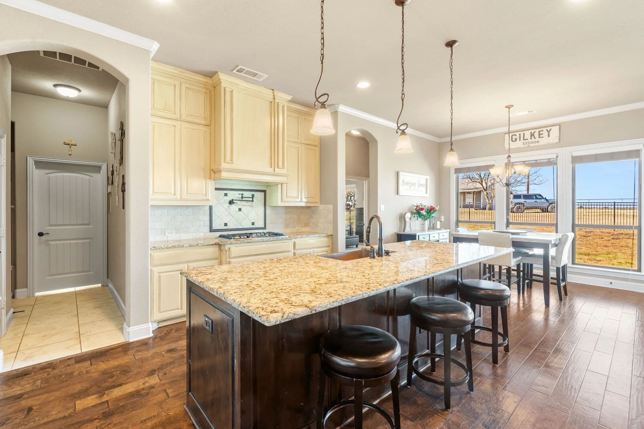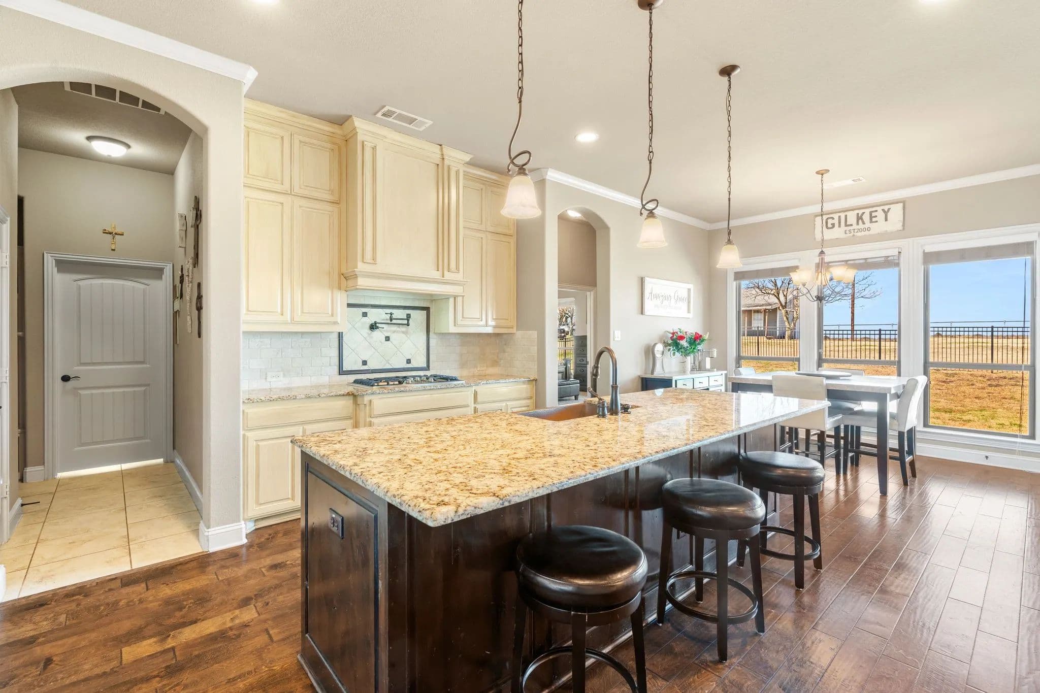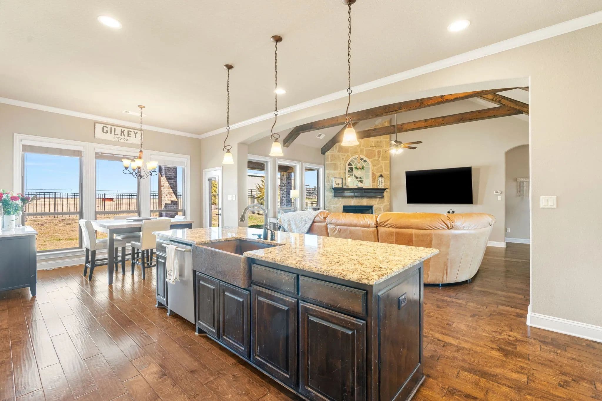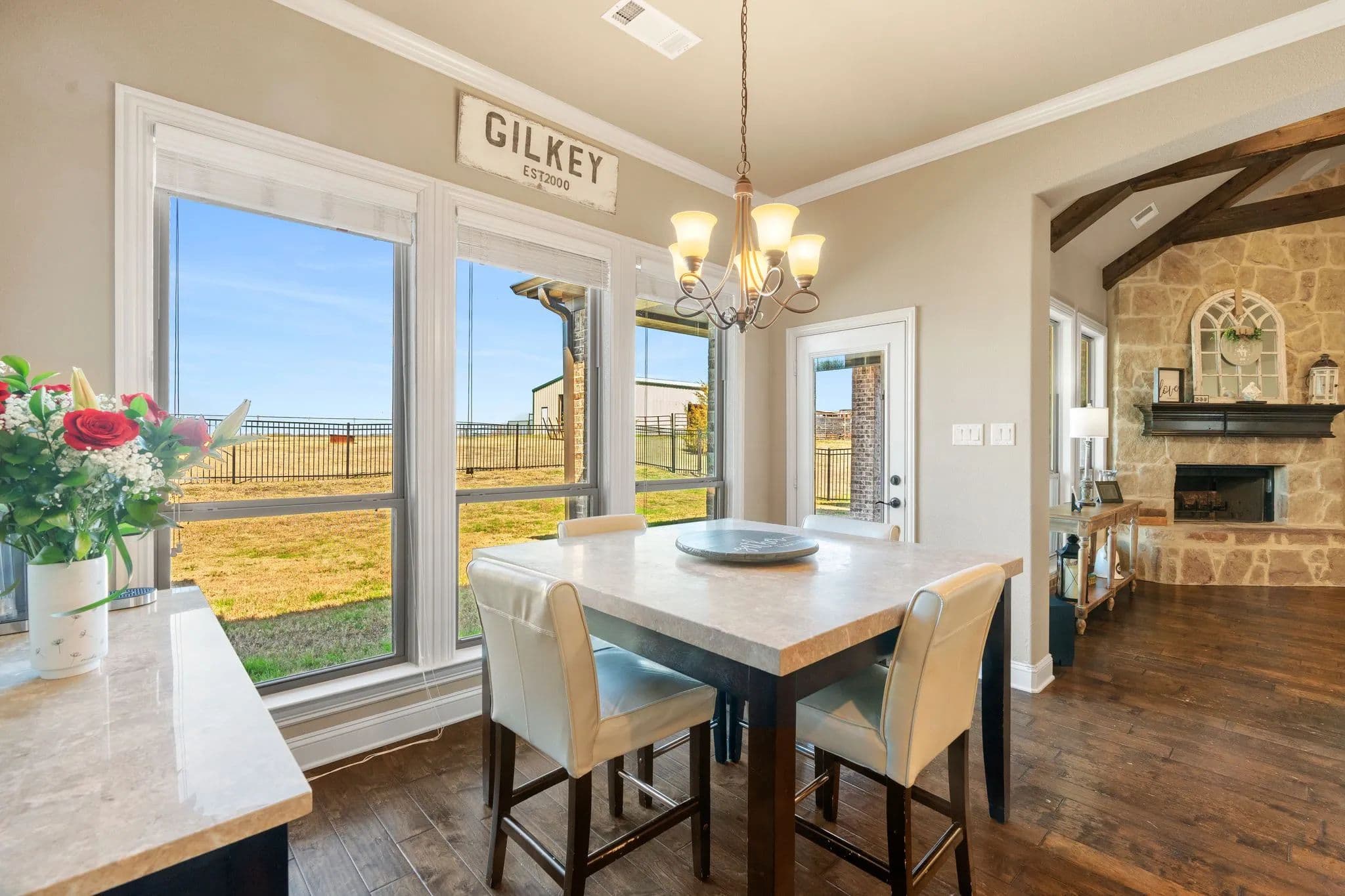50-Acre Ranch Retreat with Two Homes, Fishing Ponds & Livestock Facilities. Discover the perfect blend of tranquility and functionality on this breathtaking 50-acre ranch with security gate, featuring two spacious homes, a barn, three ponds, one of which covers 2 acres and is stocked, and prime land for livestock. Whether you’re seeking a private retreat, a multi-generational homestead, or an income-producing property, this estate delivers. The 2,600 sq. ft. primary home exudes comfort and charm with an open floor plan, large windows overlooking the scenic landscape, and a chef’s kitchen designed for entertaining. A cozy fireplace anchors the living space, while the spacious bedrooms provide a restful escape. A short walk away, the 2,000 sq. ft. secondary home is ideal for guests, rental income, or extended family. It offers modern conveniences, generous living areas, and stunning views of the surrounding countryside. Outdoors, the possibilities are endless. Cross fencing provides seven pastures and property is already operating under an agriculture exemption. Three serene ponds, one complete with a dock, provide the perfect setting for fishing, canoeing, or simply unwinding at sunset. The land features a large barn with electric, making it move-in ready for ranching or equestrian enthusiasts. With expansive pastures, mature trees, and peaceful surroundings, this ranch is a rare opportunity to own a private paradise that’s still within reach of modern conveniences. Only a short drive to I-45 or 287. Experience the best of country living—schedule your tour today!