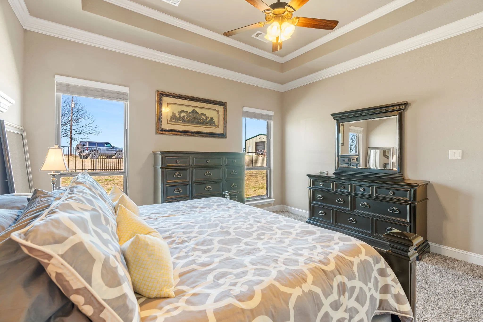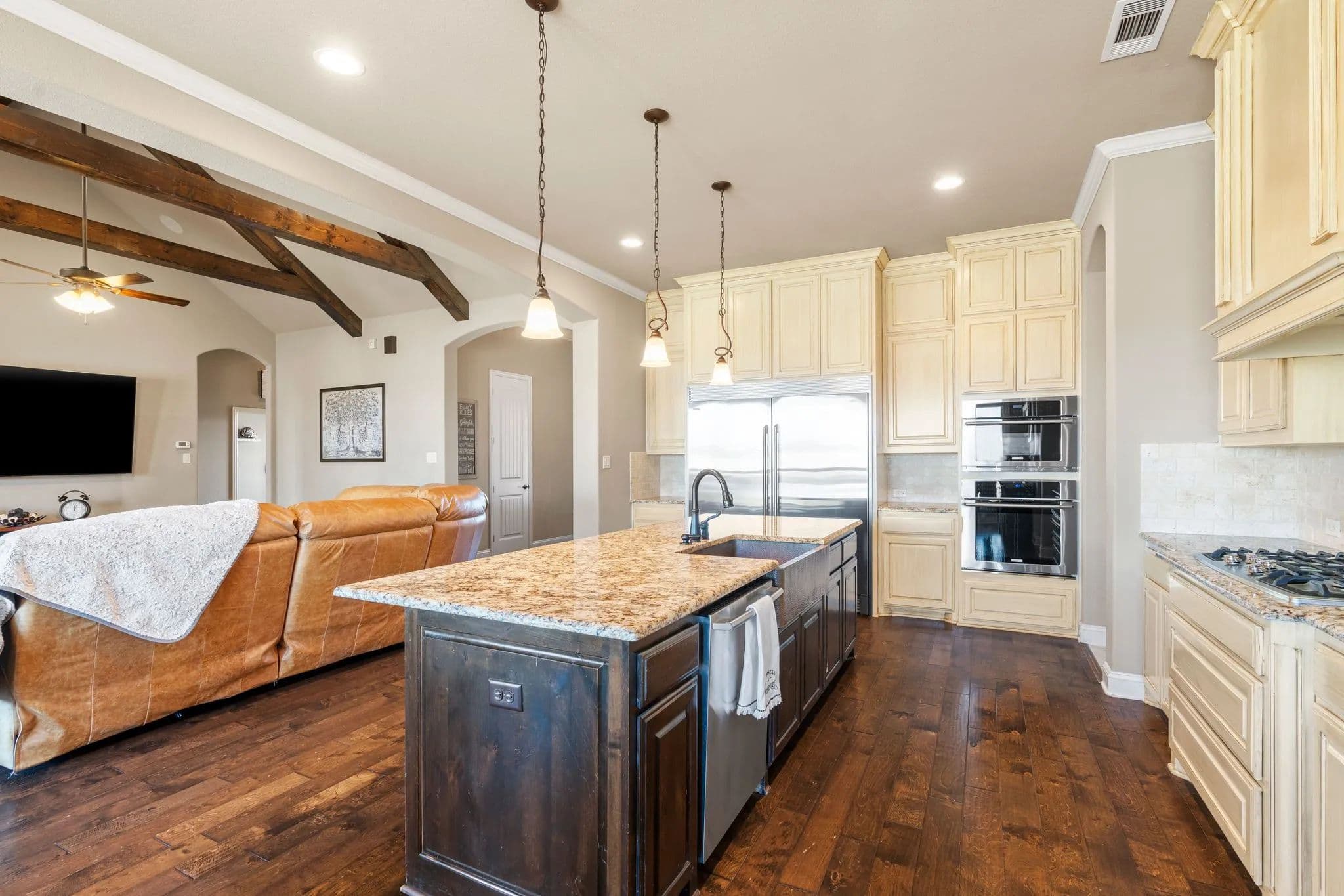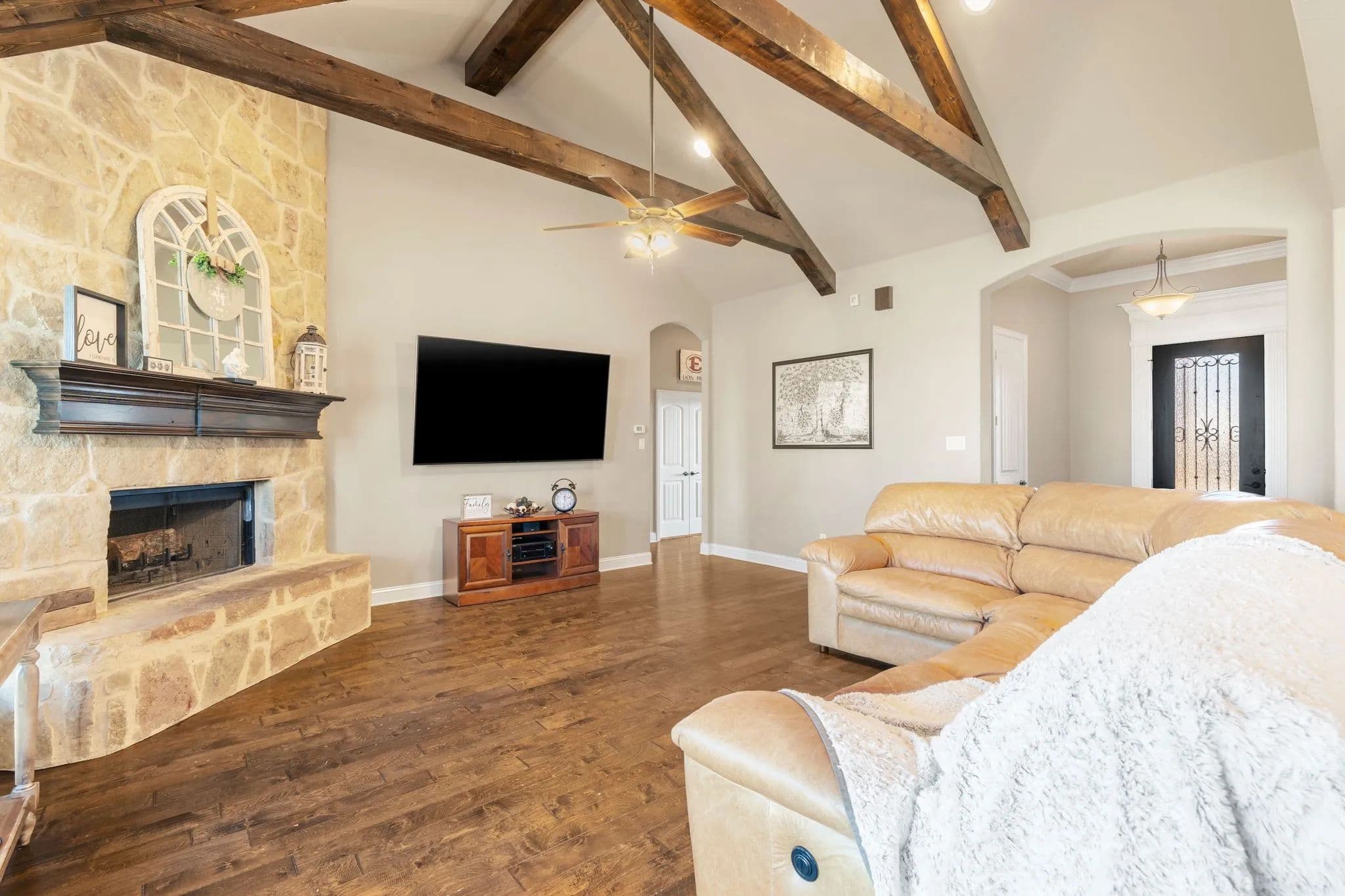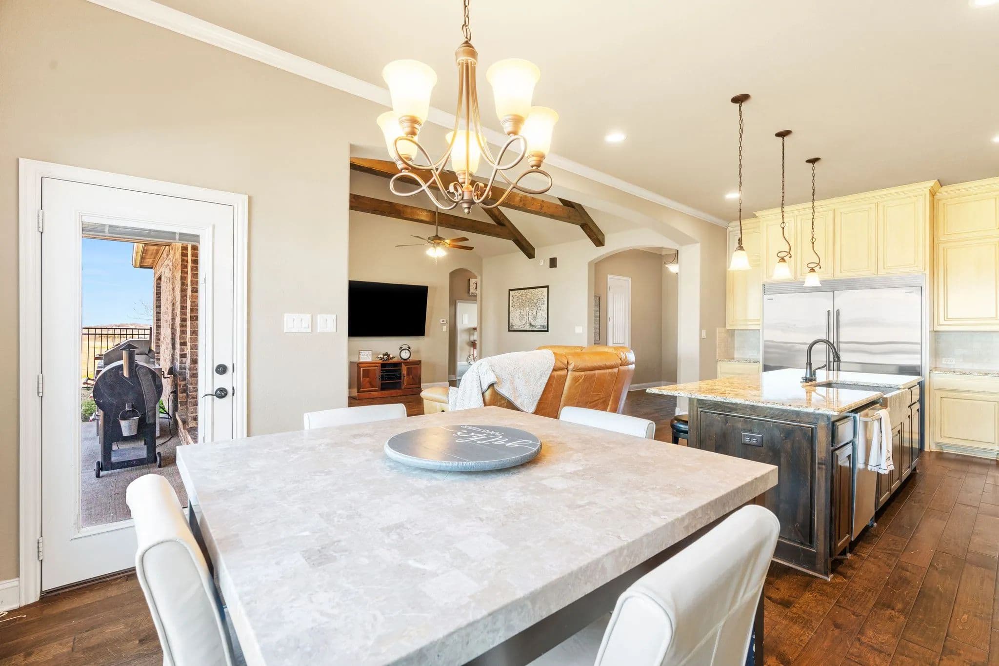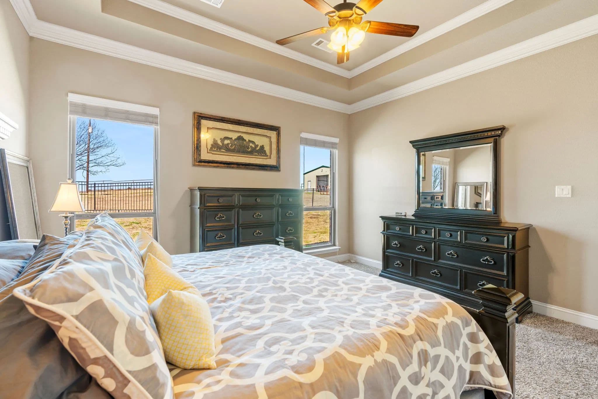 50-Acre Ranch Retreat with Two Homes, Fishing Ponds & Livestock Facilities. Discover the perfect blend of tranquility and functionality on this breathtaking 50-acre ranch with security gate, featuring two spacious homes, a barn, three ponds, one of which covers 2 acres and is stocked, and prime land for livestock. Whether you’re seeking a private retreat, a multi-generational homestead, or an income-producing property, this estate delivers. The 2,600 sq. ft. primary home exudes comfort and charm with an open floor plan, large windows overlooking the scenic landscape, and a chef’s kitchen designed for entertaining. A cozy fireplace anchors the living space, while the spacious bedrooms provide a restful escape. A short walk away, the 2,000 sq. ft. secondary home is ideal for guests, rental income, or extended family. It offers modern conveniences, generous living areas, and stunning views of the surrounding countryside. Outdoors, the possibilities are endless. Cross fencing provides seven pastures and property is already operating under an agriculture exemption. Three serene ponds, one complete with a dock, provide the perfect setting for fishing, canoeing, or simply unwinding at sunset. The land features a large barn with electric, making it move-in ready for ranching or equestrian enthusiasts. With expansive pastures, mature trees, and peaceful surroundings, this ranch is a rare opportunity to own a private paradise that’s still within reach of modern conveniences. Only a short drive to I-45 or 287. Experience the best of country living—schedule your tour today!
