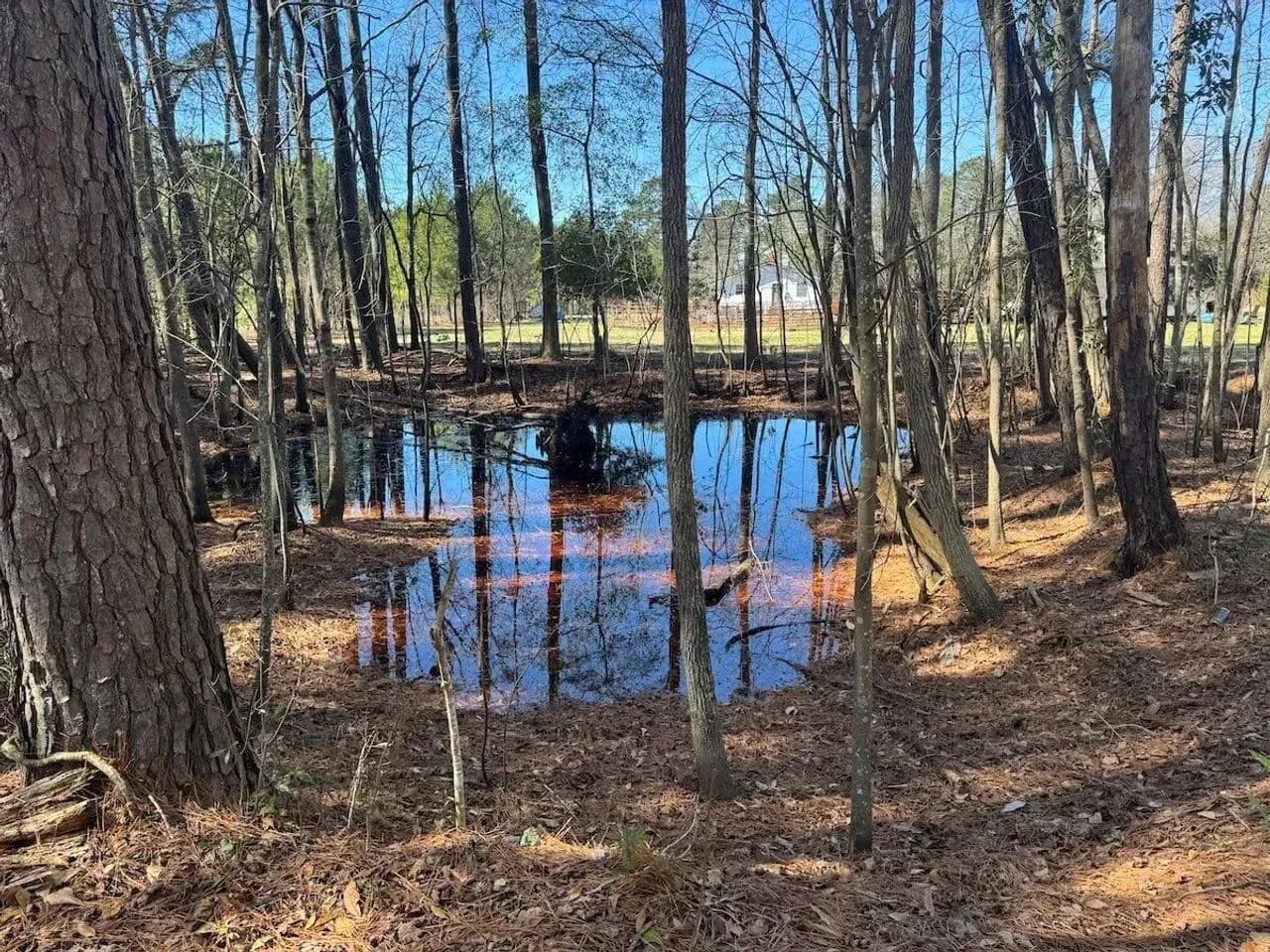 The land features a mix of young hardwoods and pines, creating a peaceful, natural setting while still allowing for easy clearing if desired. The timber holds future value is allowed to continue growing. Approximately 0.25 acres are considered wetland, adding to the property’s beauty and attracting local wildlife. However, it is not located within the FEMA floodplain. The property is also not located within the city limits.