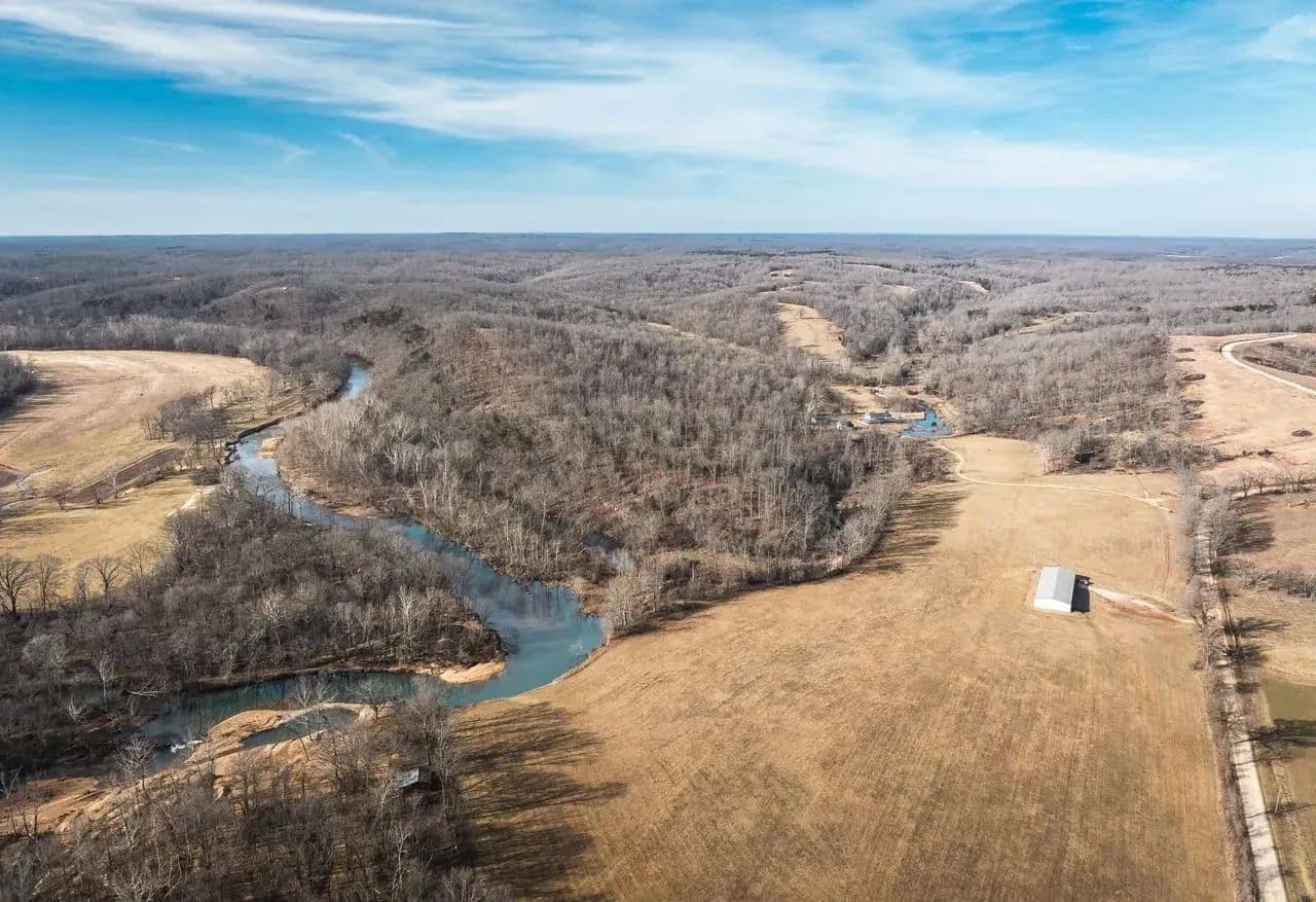 Own a rare piece of paradise with stunning 270 acres featuring your very own private gravel bar on the Upper Meramec River. This exceptional property boasts prime building sites, a blend of lush pasture and mature timber, and multiple barns, ponds, and river—making it ideal for horses, cattle, or an ultimate recreational retreat. Anglers will appreciate world-class trophy smallmouth and largemouth bass fishing, along with some of the finest goggle-eye fishing in the Ozarks. Just a short drive to Maramec Spring Park, home to one of Missouri’s premier trout fisheries—perfect for fly fishing enthusiasts. Wildlife abounds, with large whitetail deer and thunderous gobblers filling the landscape, making this an outstanding hunting property. A spring-fed pond in front of the house, complete with a classic bridge, adds to the charm and tranquility. The property offers a bunkhouse/guest cottage for visitors, a large barn/warehouse-style building to store equipment, UTVs, and all your outdoor toys, a lodge-style main home, built with impeccable attention to detail, offering multiple bedrooms and bathrooms—perfect for hosting guests with a rooftop deck and covered porch for breathtaking views and a Bass Pro-style fireplace, adding rustic elegance to the home Whether you're looking for a private getaway, an investment, or a slice of Ozark heaven, this property is available in its entirety or can be divided. Don’t miss this rare opportunity to own a piece of the Missouri outdoors!