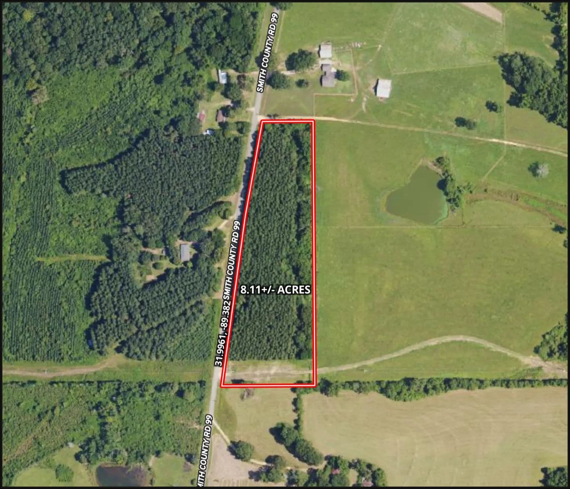 This 8.11± acre property in Smith County offers a peaceful country setting along County Road 99, just one mile south of Sylvarena, and conveniently located an hour from three major Mississippi cities: Jackson, Meridian, and Hattiesburg. Recently thinned, the land now provides a clearer view of potential homesites along the natural ridge, making it easier to envision your dream home. With approximately 1,130 feet of road frontage, there's plenty of space for a private retreat, a workshop, or a future investment opportunity. Whether you are looking for a quiet escape or a place to put down roots, this property holds incredible potential. Don't miss out on this rare opportunity! Call Dale or David to schedule your tour today!