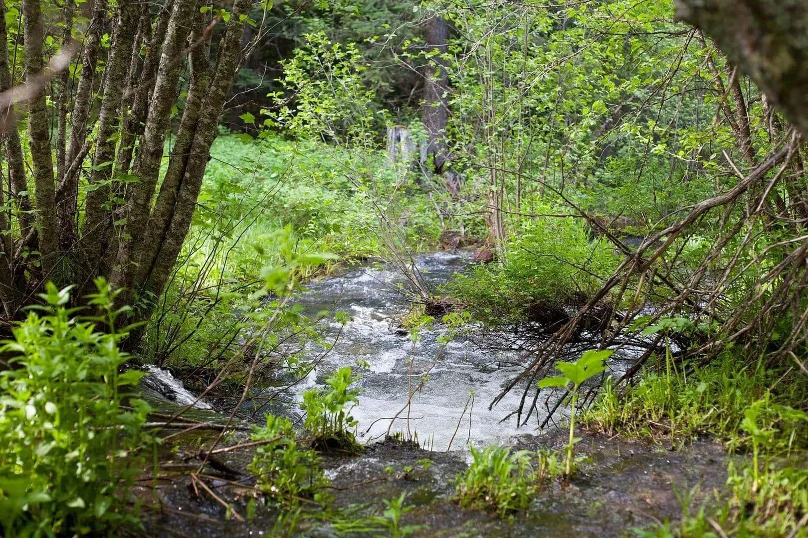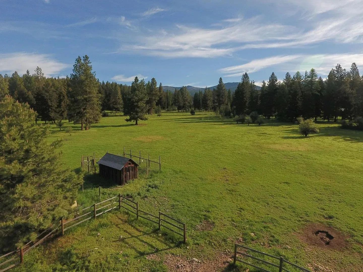 Pine Creek flows through the heart of the ranch for just under a half mile, supporting lush creek bottom with a variety of foliage and brush to provide ideal habitat and shelter for various wildlife species that call the ranch and region home. Forested areas open up to reveal lush mountain grassy parks, and the flood-irrigated hay meadow provides an opportunity to raise hay for feed for horses or other species of livestock during the winter months.