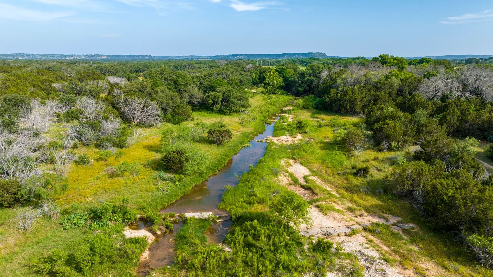 90 +/- acre heritage ranch is in northwestern Gillespie County just north of Doss, Texas. Ranch features both sides of beautiful Mormon Creek. Numerous vantage points have superb views of the Doss Valley. Ranch has public paved road frontage on Lange’s Mill Road (County). There is a mixture of cover including cedar, post oak, live oak, mesquite, white brush. The varying terrain also adds to the allure of the ranch. There are 220+/- acres adjoining this 90 +/- acres for 310 +/- acres. The entire 335 +/- acres ranch is also offered and would include Lange’s Mill, barn, granary, and homestead. Deed Restriction is “Except for the parcel around the mill needing to be at least 21-ac., property cannot be subdivided into less than 50-ac. parcels.”