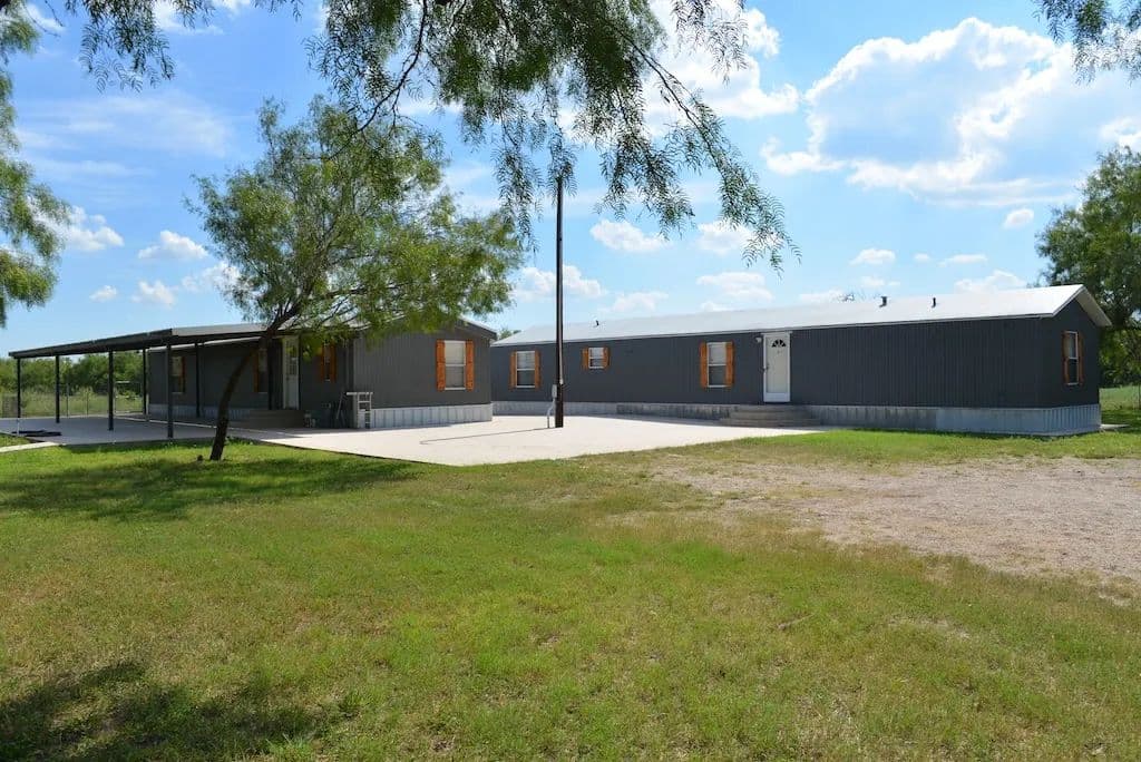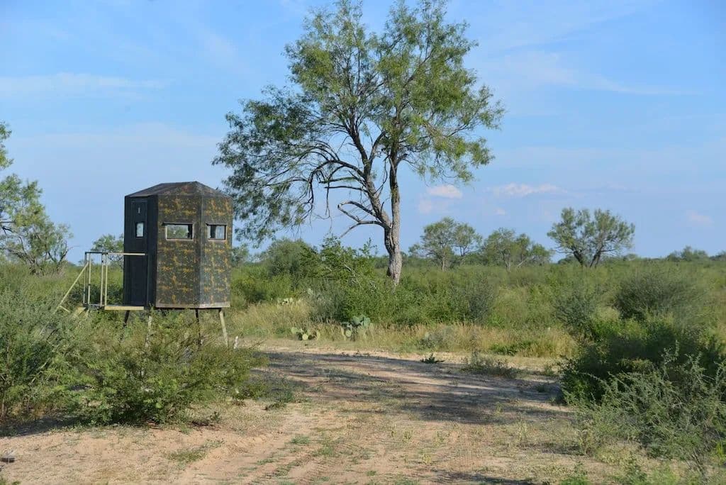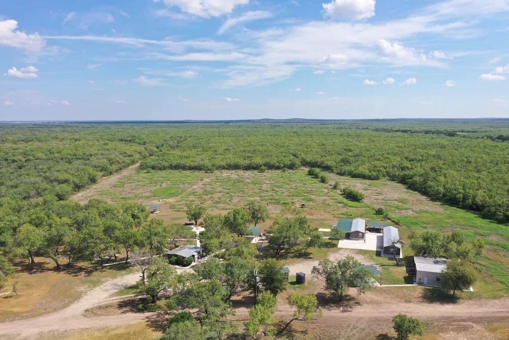 The headquarters is well-maintained and shaded by large mesquite trees. Improvements include two mobile homes, a cantina/cook shack, pavilions, fire pits, and concrete patios. The property also features a modest shooting range, a parking area, sidewalks, two storage containers, and an enclosed barn. Electric swing gates provide controlled access from Highway 140 to the headquarters. The ranch is well-equipped for hunting, with 9 enclosed hunting blinds, 11 corn feeders, and 9 protein feeders.