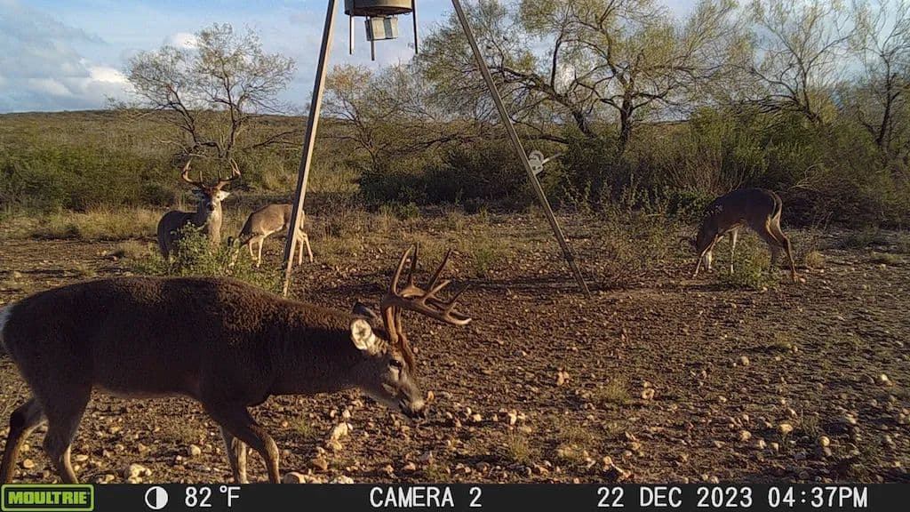 Included in the sale are 9 enclosed hunting blinds, 11 corn feeders, and 9 protein feeders.