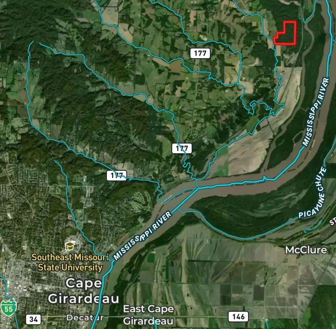 Situated just 5 miles north of downtown Cape Girardeau, MO, lies this incredible 107 +/- Acre tract.