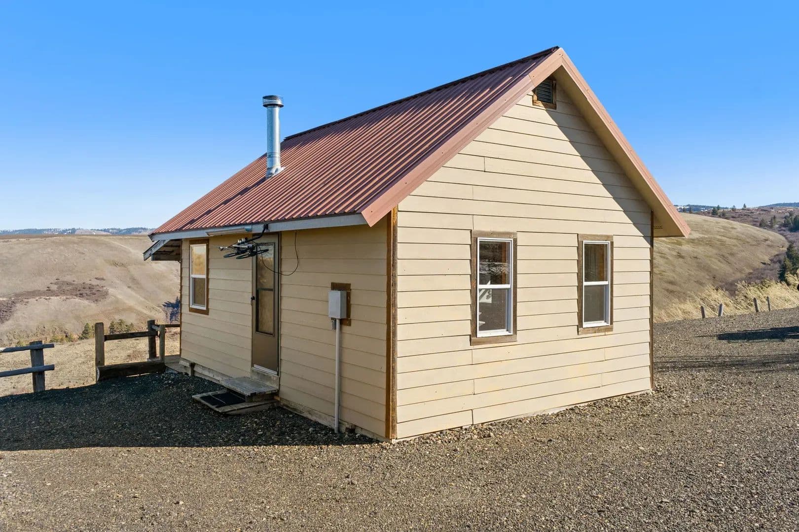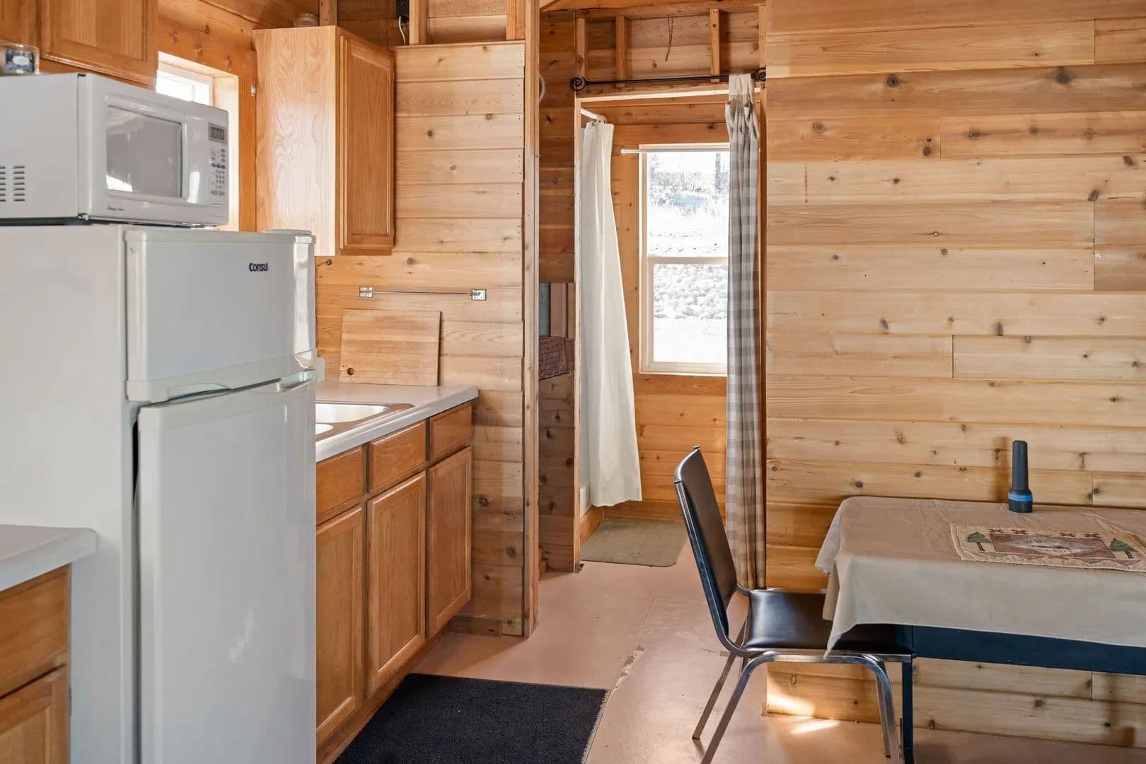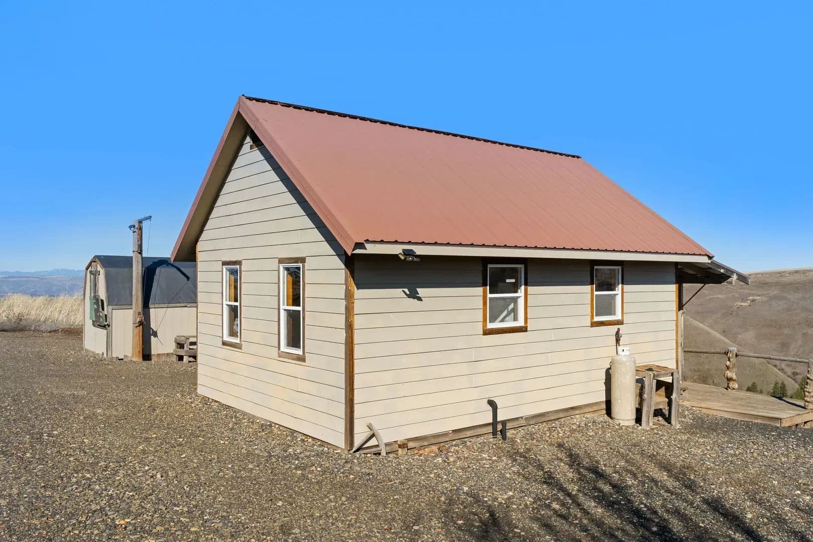 Improvements This cozy cabin offers a comfortable retreat with one bedroom and a functional kitchen equipped with gas-powered appliances. A 12-volt shower system with on-demand hot water ensures convenience, while a fully installed septic system is in place, ready to be connected. The cabin is wired and runs on generator power, providing flexible energy options. Outside, a covered deck invites you to relax and take in the beautiful views.