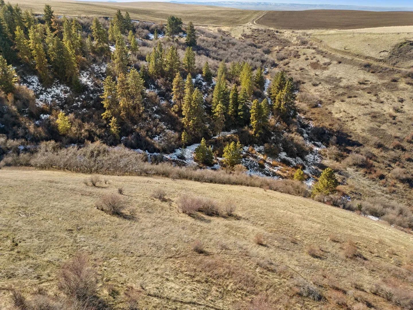 The lower portion offers rolling ground, once a tillable field producing various crops, most recently hay, while the upper areas provide elevation and scenic views. A developed road system allows easy access throughout, including a strategically placed hunting blind. With its natural beauty, varied landscape, and excellent accessibility, this property is perfect for recreation, hunting, or a private retreat. Approximately 30 minutes from prime fishing on the Clearwater and Snake River, allowing you to enjoy world-class angling and be back at your cabin the same day for an evening hunt.
