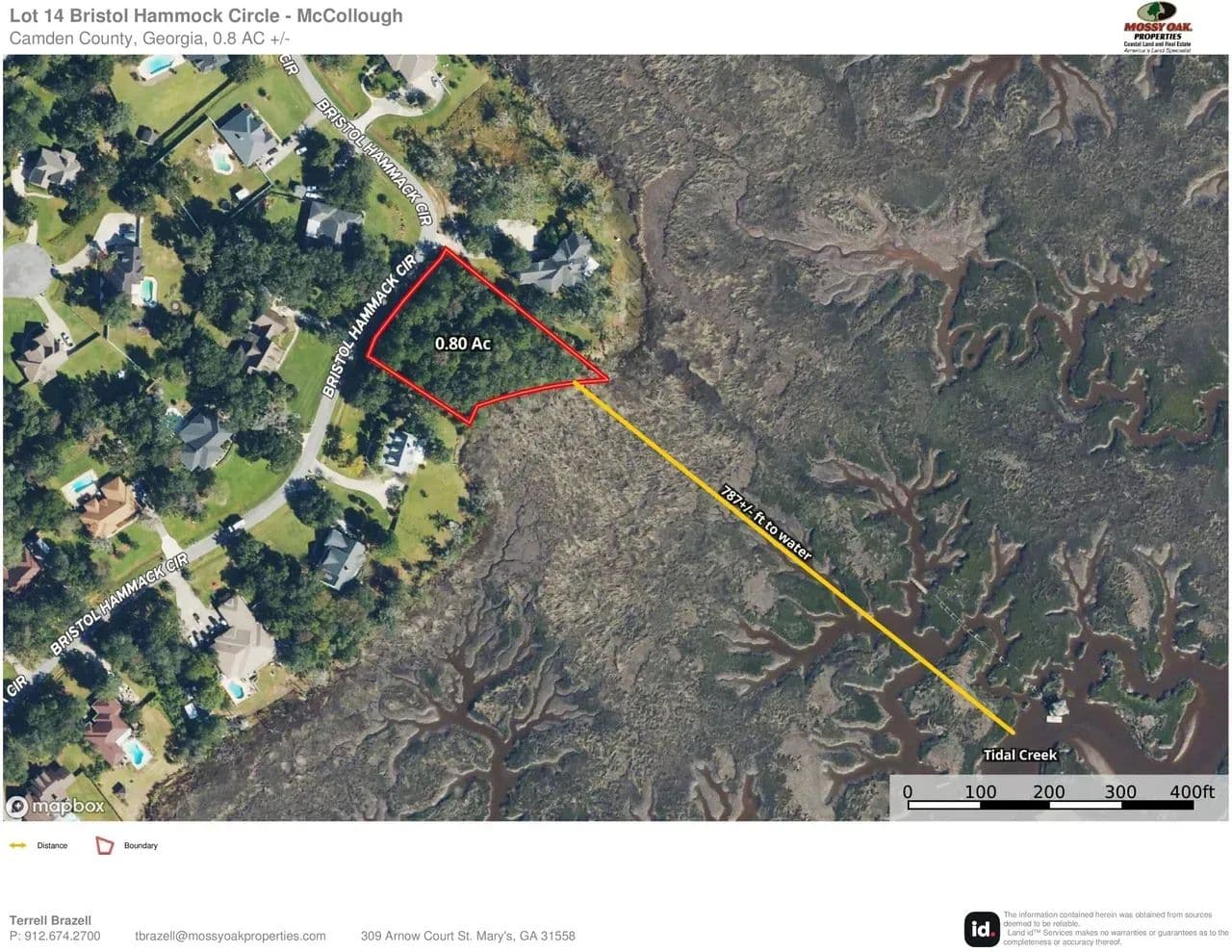 One of the last Marshfront Lots available in Bristol Hammock! This 0.80+/- Ac Lot has dockable frontage on a tidal creek with an Easterly sunrise view that goes on for over 3.5 miles! Located in the Bristol Hammock right across from the Camden County Highschool just off Laurel Island Parkway and Exit 6 on I-95. An established community with No HOA, Covenants, City Taxes or HOA Fees! Minutes form Schools, Shopping, Dining and the Coast. Less than 10 minutes to Kings Bay Naval Base and less than 30 minutes to the Jacksonville International Airport & River City Mall. 35 minutes to FLETC / Brunswick / Saint Simons Island, GA . Large Natural Oaks and a large homesite make this a rare opportunity to own one of only two undeveloped lots. Contact Terrell Brazell with Mossy Oak Properties for more information on this property or others like it at 912-674-2700 or