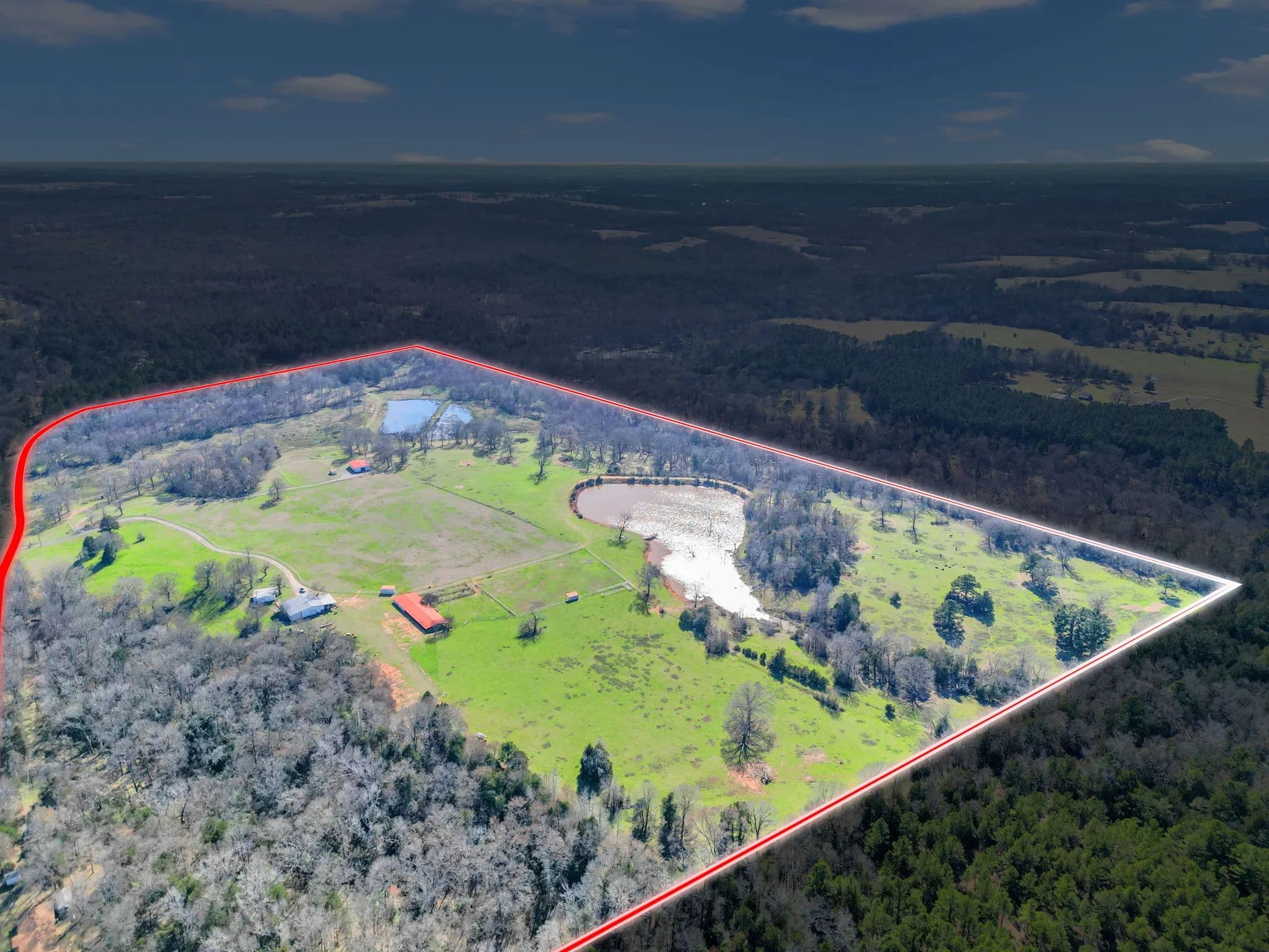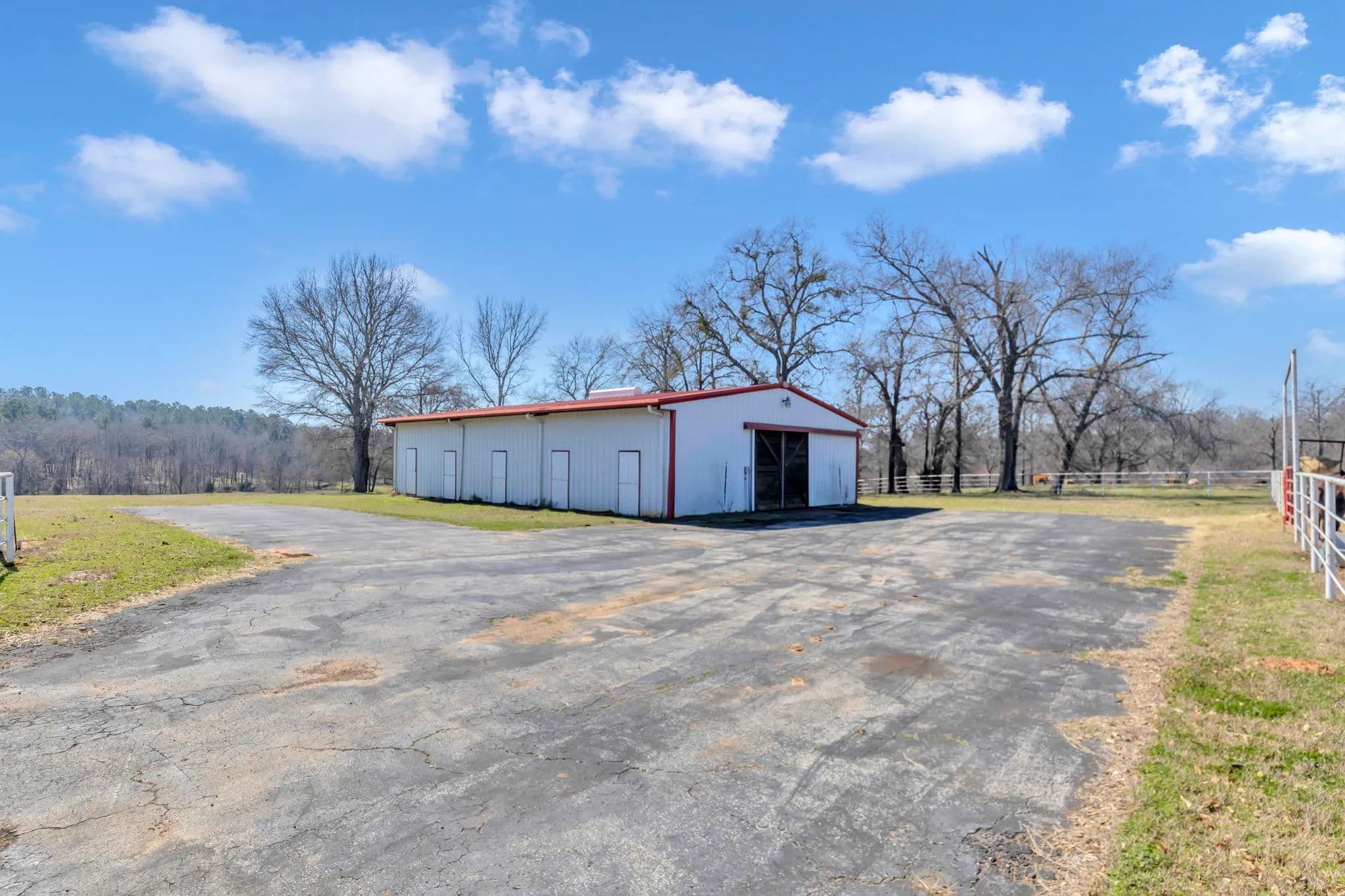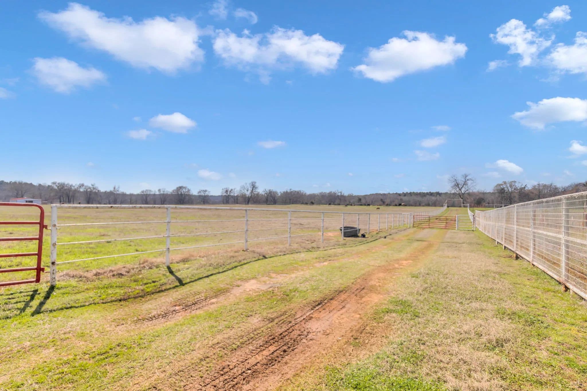 The 125-acre Fletcher Ranch in Lindale, East Texas, offers a unique and diversified experience. The property features pipe fencing, equine facilities, cattle grazing, a fishing lake, duck ponds, a live water creek, wildlife habitat, paved roads, a small cabin, and a workshop. Its location is very convenient to I-20 and US Highway 69, with Tyler, TX, being the largest major city nearby. There is plenty of shopping and dining in Lindale as well. The property includes 2,500 linear feet of road frontage on CR 481, with entry through a wrought iron gate from CR 481. The main ranch roads throughout the property are paved and lined with pipe fencing, leading to the 840 sq. ft. cabin, a 40 x 60 workshop, a horse barn, and an arena. Several scenic building sites are available. The centerpiece is a 45 x 60 barn featuring seven stalls with turnouts, including two foaling stalls, a tack room, and a feed room with excellent overhead lighting. For training purposes, a 125 x 200 arena with pipe fencing is in place. Just north of the barn is a 35-acre pipe-fenced grazing pasture with a loafing shed, and just north of that is a 10-acre pipe-fenced holding area, also with a loafing shed. There are scenic riding trails throughout the property. The grazing pastures outside the pipe fence provide ample grass for a small cattle operation. The propertys perimeter fencing secures the livestock, while the three bodies of water and creeks supply water for them. The property features three bodies of water and three live water creeks. For anglers, there is a three-acre stock lake with a pier. Duck hunters will find two shallow duck ponds, one two acres and the other one acre. Duck Creek, Hall Branch, and Bartley Branch traverse the property, enhancing the wildlife habitat. The northwest corner of the ranch is surrounded by heavy timber on neighboring properties, providing great wildlife habitat for whitetail deer. The terrain in the northern portion of the property is rolling, with timber-lined live creeks further enhancing the wildlife habitat. Find your freedom!