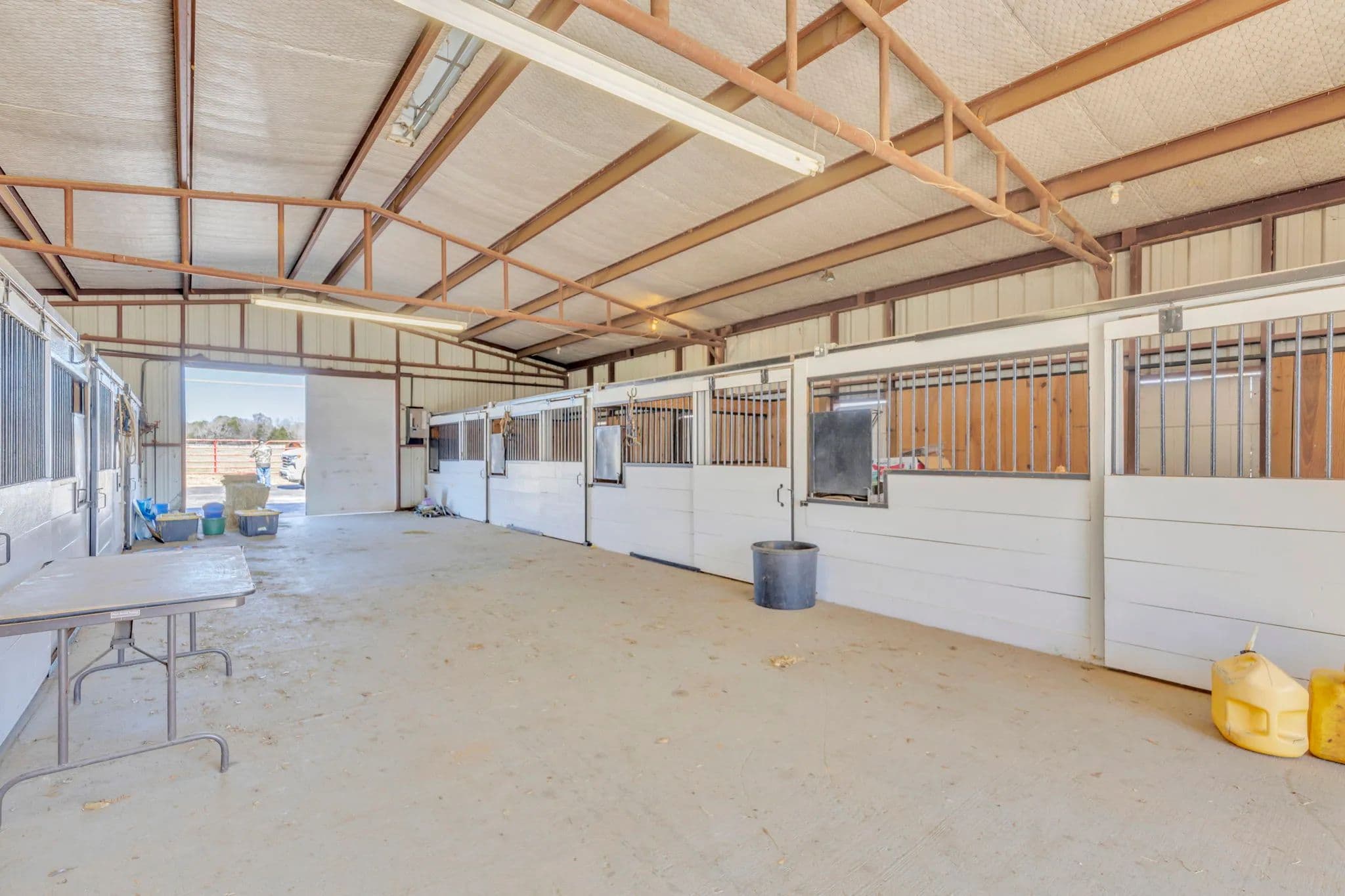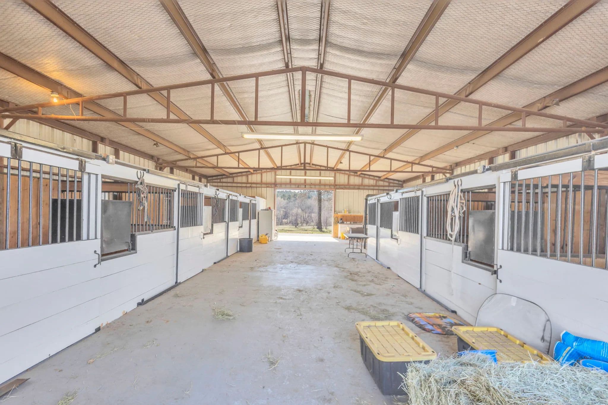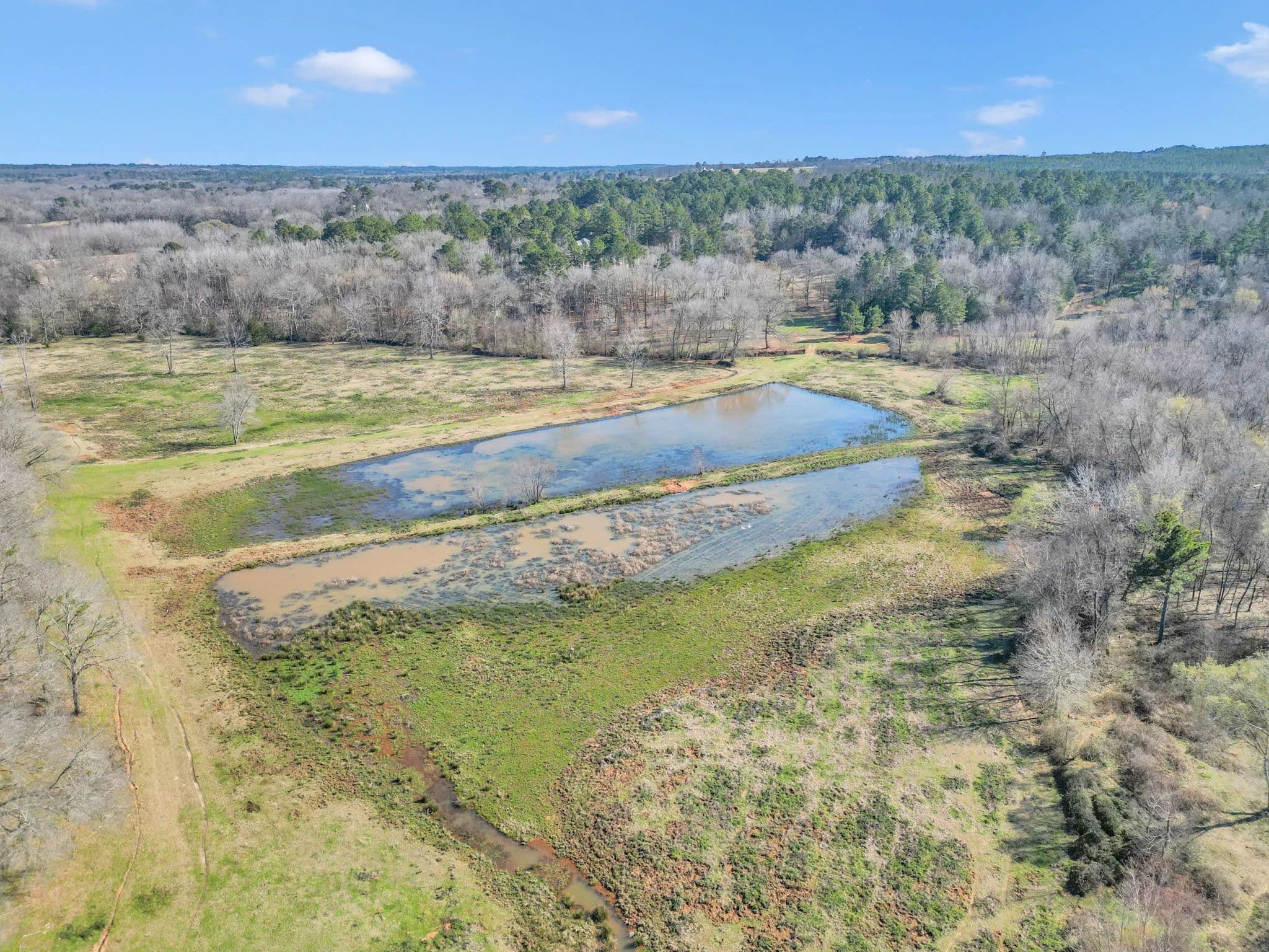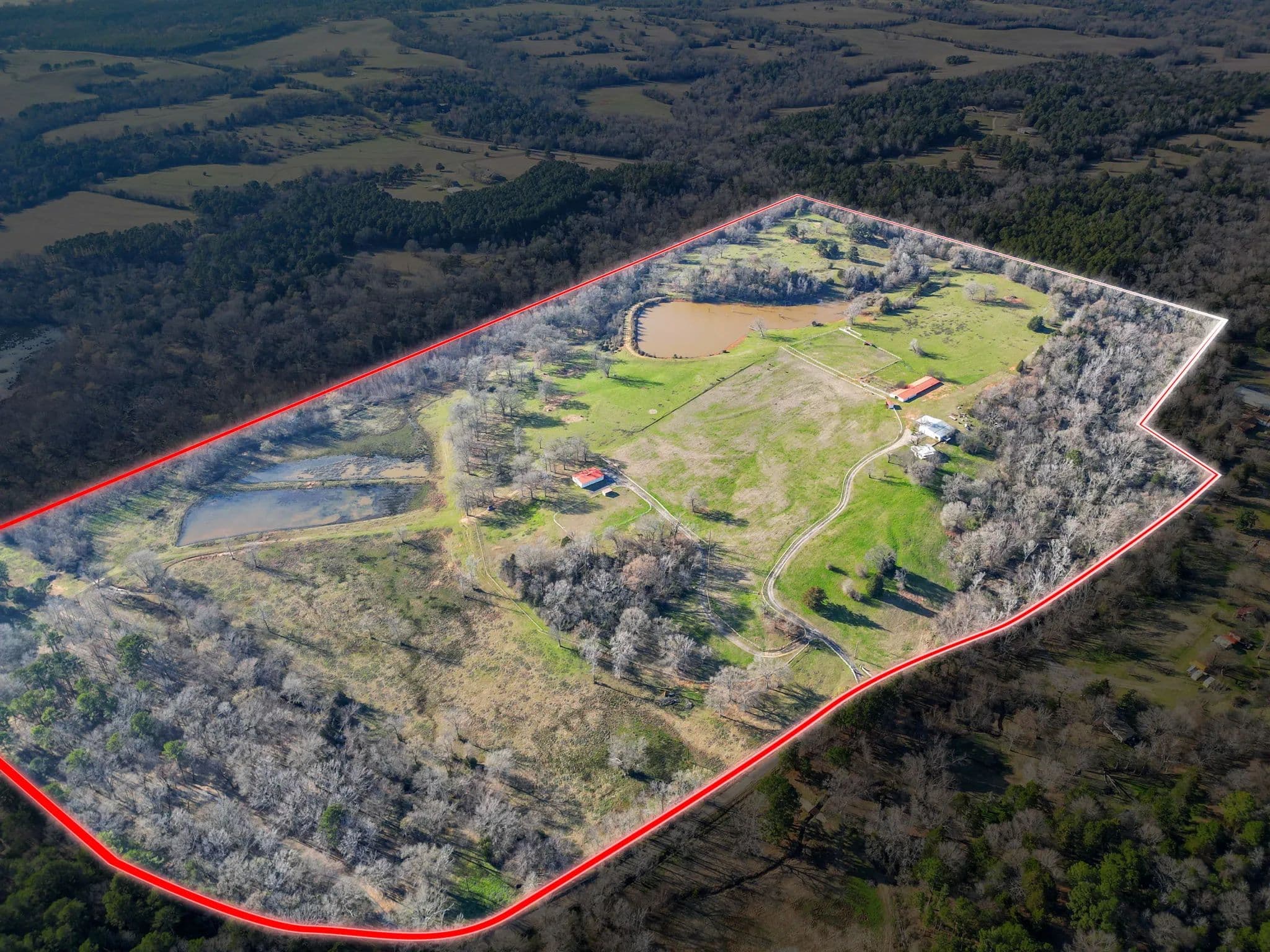 The 125-acre Fletcher Ranch in Lindale, East Texas, offers a unique and diversified experience. The property features pipe fencing, equine facilities, cattle grazing, a fishing lake, duck ponds, a live water creek, wildlife habitat, paved roads, a small cabin, and a workshop. Its location is very convenient to I-20 and US Highway 69, with Tyler, TX, being the largest major city nearby. There is plenty of shopping and dining in Lindale as well. The property includes 2,500 linear feet of road frontage on CR 481, with entry through a wrought iron gate from CR 481. The main ranch roads throughout the property are paved and lined with pipe fencing, leading to the 840 sq. ft. cabin, a 40 x 60 workshop, a horse barn, and an arena. Several scenic building sites are available. The centerpiece is a 45 x 60 barn featuring seven stalls with turnouts, including two foaling stalls, a tack room, and a feed room with excellent overhead lighting. For training purposes, a 125 x 200 arena with pipe fencing is in place. Just north of the barn is a 35-acre pipe-fenced grazing pasture with a loafing shed, and just north of that is a 10-acre pipe-fenced holding area, also with a loafing shed. There are scenic riding trails throughout the property. The grazing pastures outside the pipe fence provide ample grass for a small cattle operation. The propertys perimeter fencing secures the livestock, while the three bodies of water and creeks supply water for them. The property features three bodies of water and three live water creeks. For anglers, there is a three-acre stock lake with a pier. Duck hunters will find two shallow duck ponds, one two acres and the other one acre. Duck Creek, Hall Branch, and Bartley Branch traverse the property, enhancing the wildlife habitat. The northwest corner of the ranch is surrounded by heavy timber on neighboring properties, providing great wildlife habitat for whitetail deer. The terrain in the northern portion of the property is rolling, with timber-lined live creeks further enhancing the wildlife habitat. Find your freedom!