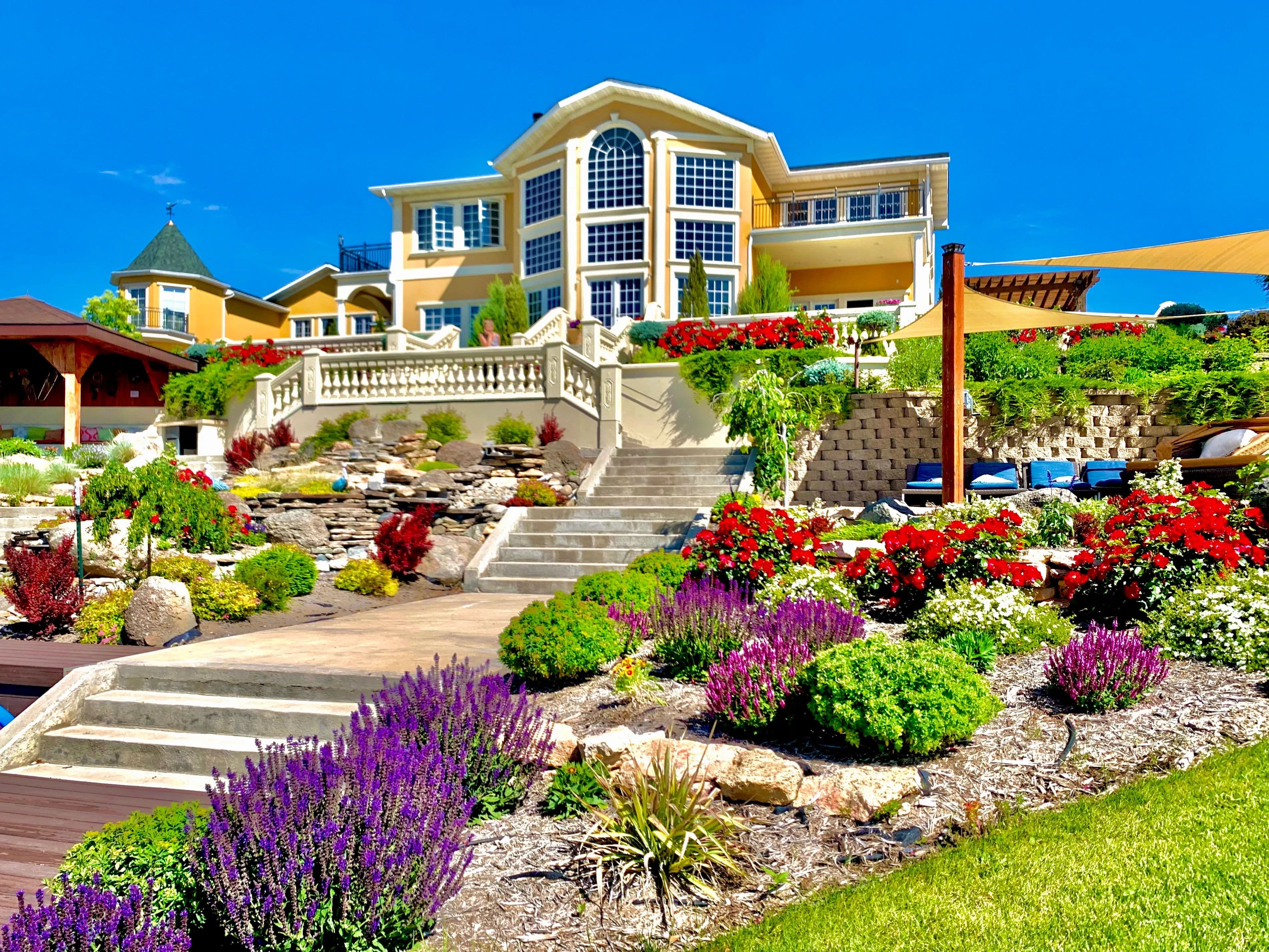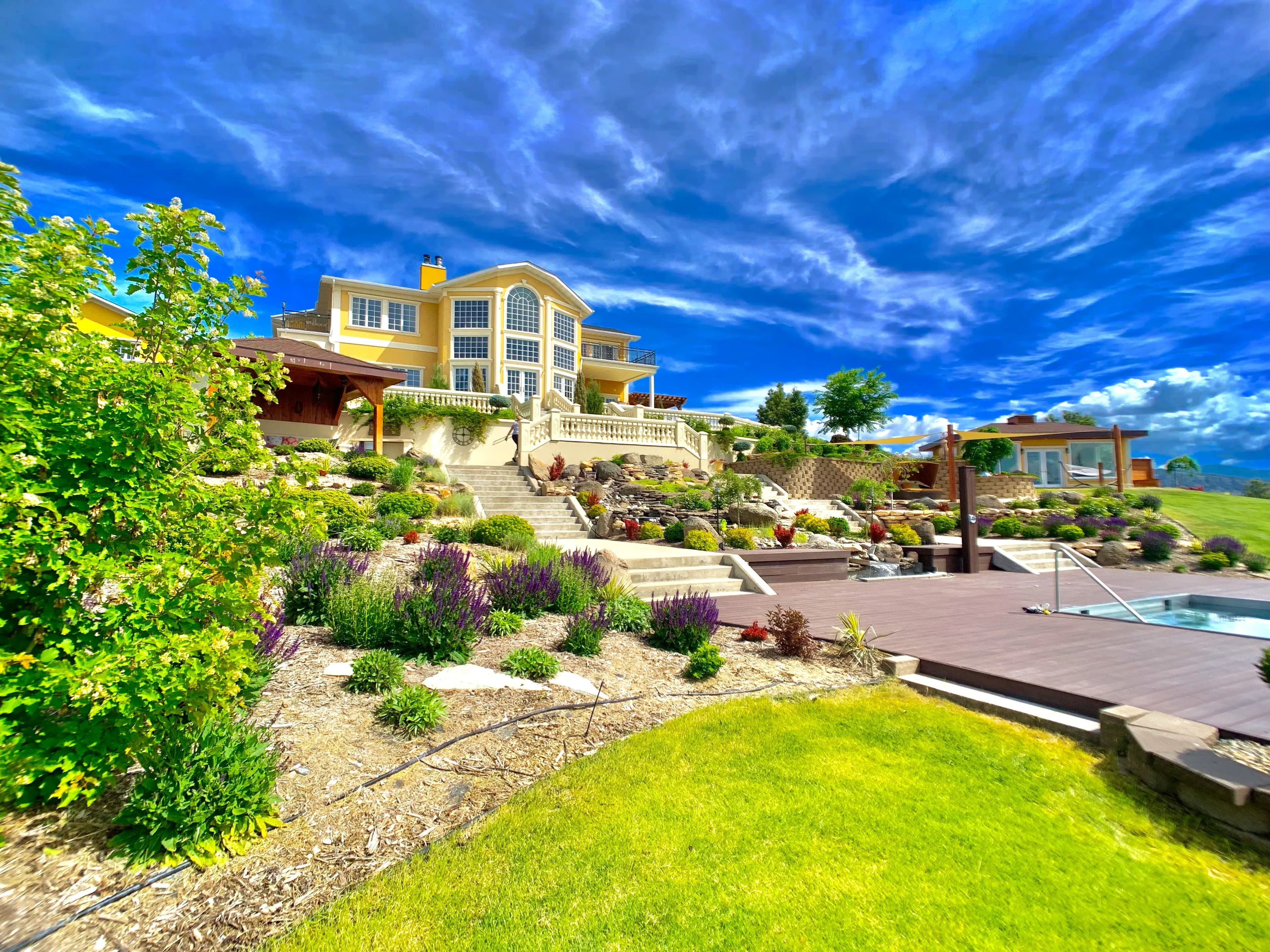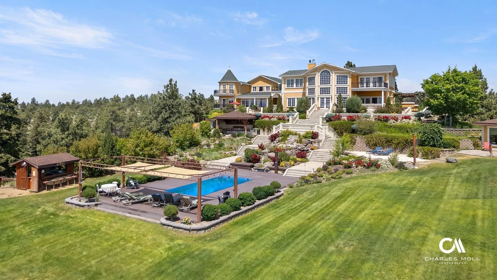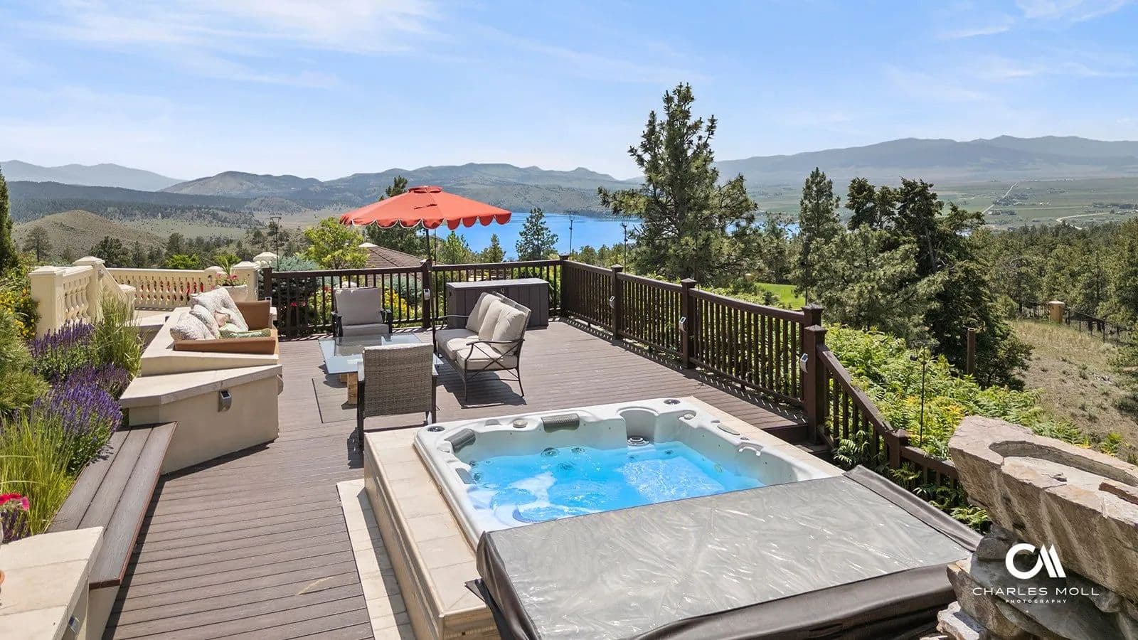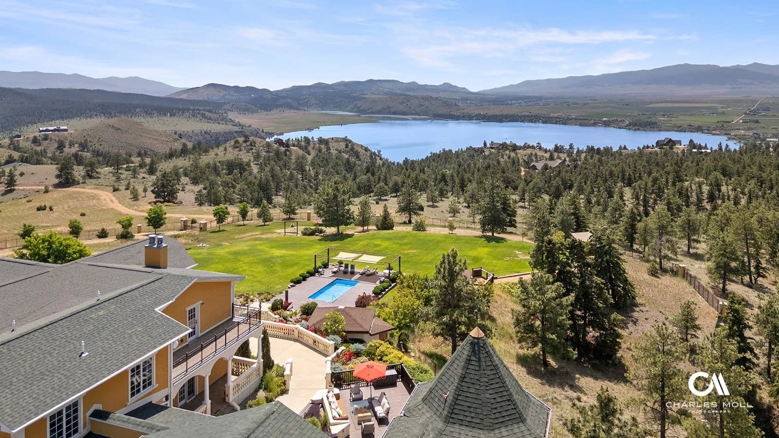 Welcome to The Ting, a spectacular Mediterranean-style estate that brings together stunning lake views, fantastic amenities, and luxurious accommodations. Ting is the sound of celebration. This home is about entertainment and fun. Your family and guests will enjoy the beautiful state of the art stainless steel pool, hot tub, bocci ball court, golf putting green, tiki bar, horseshoe pit, and an expansive lawn. Sit on the white sand beach area with a cool drink and take in the view. Adjourn to the fire pit to swap stories of the day’s adventures. The Ting is a private gated estate on 20 acres overlooking Hauser Lake. The property consists of two luxurious residents joined by a breezeway, making this the perfect property for multi-generations or co-owners. The 3650 sq. ft. main house has three bedrooms, an impressive great room with a wall of windows, chef’s kitchen, library, theater room, and office. The 3760 sq. ft. guest house has two en-suite bedrooms, a spacious great room with floor to ceiling windows to capture the view, large kitchen, sunroom in the tower, sauna, well-equipped home gym, and art studio. The beautiful, colorful gardens and waterfall invite you outdoors. Large patios and deck areas are perfect for entertaining and outdoor dining. Home is being sold furnished. Guest house is currently a short-term rental.