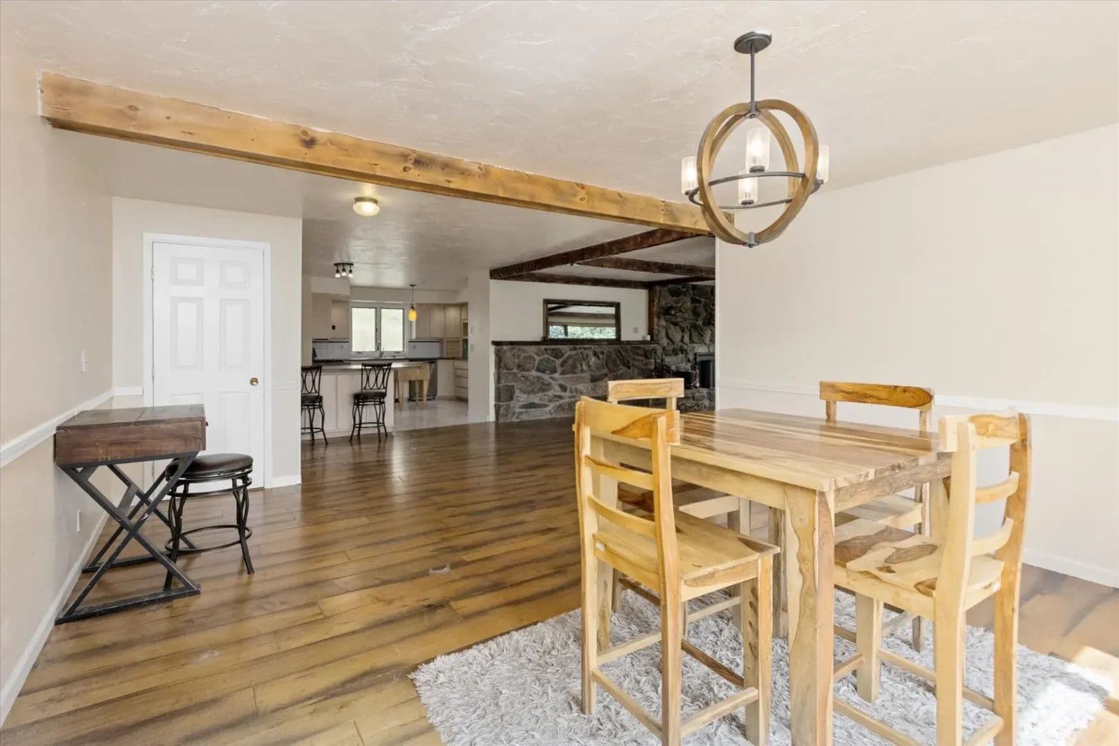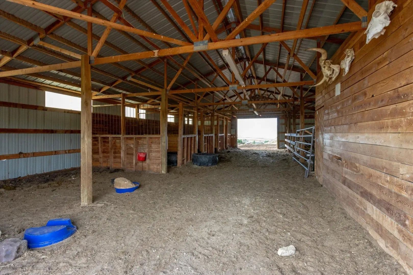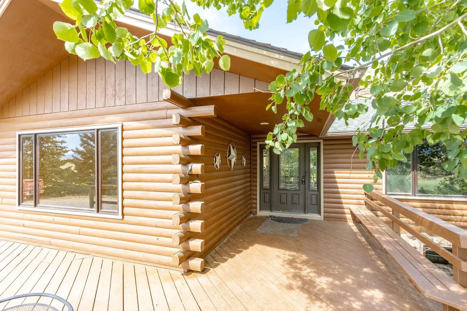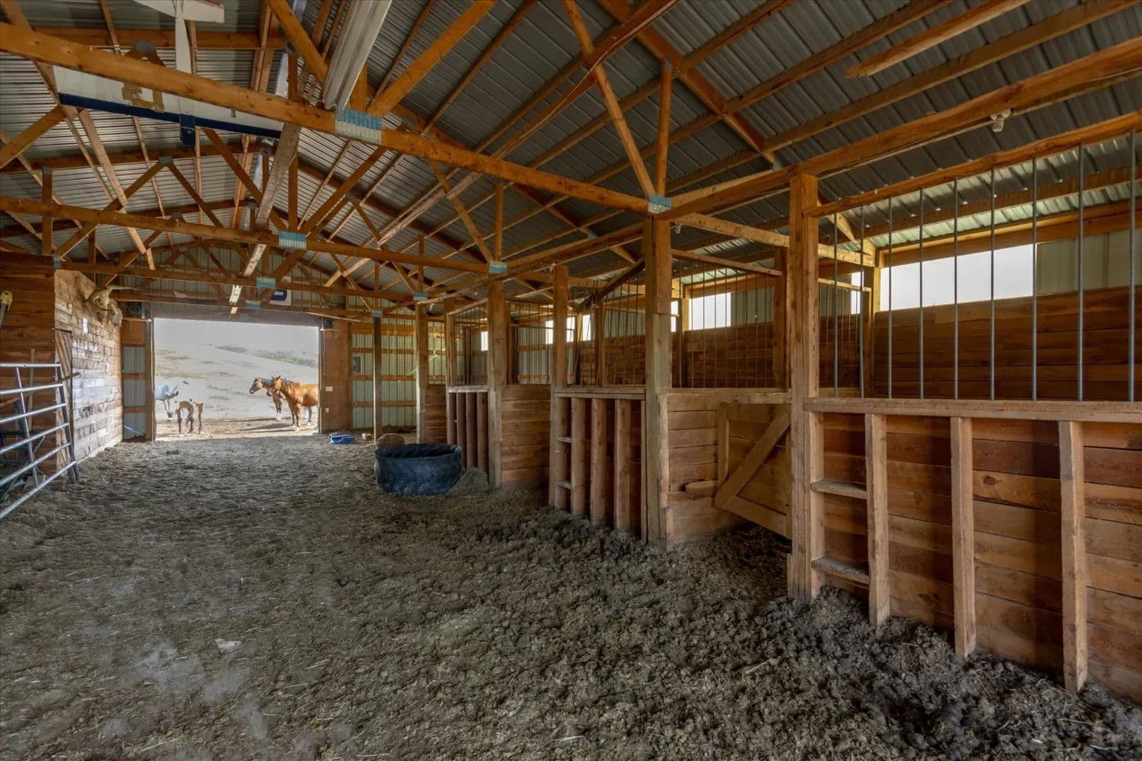 The 2,936± square-foot home features three bedrooms, two baths, and two stories designed to capture the region’s natural beauty. Warm up by one of the two grand stone fireplaces, entertain on the wraparound deck and spacious patio, or unwind in the outdoor hot tub beneath Montana’s star-filled skies. A two-car attached garage provides convenience, while the barn with four stalls, an insulated tack room, and water/electricity make this property well-suited for horses and livestock.