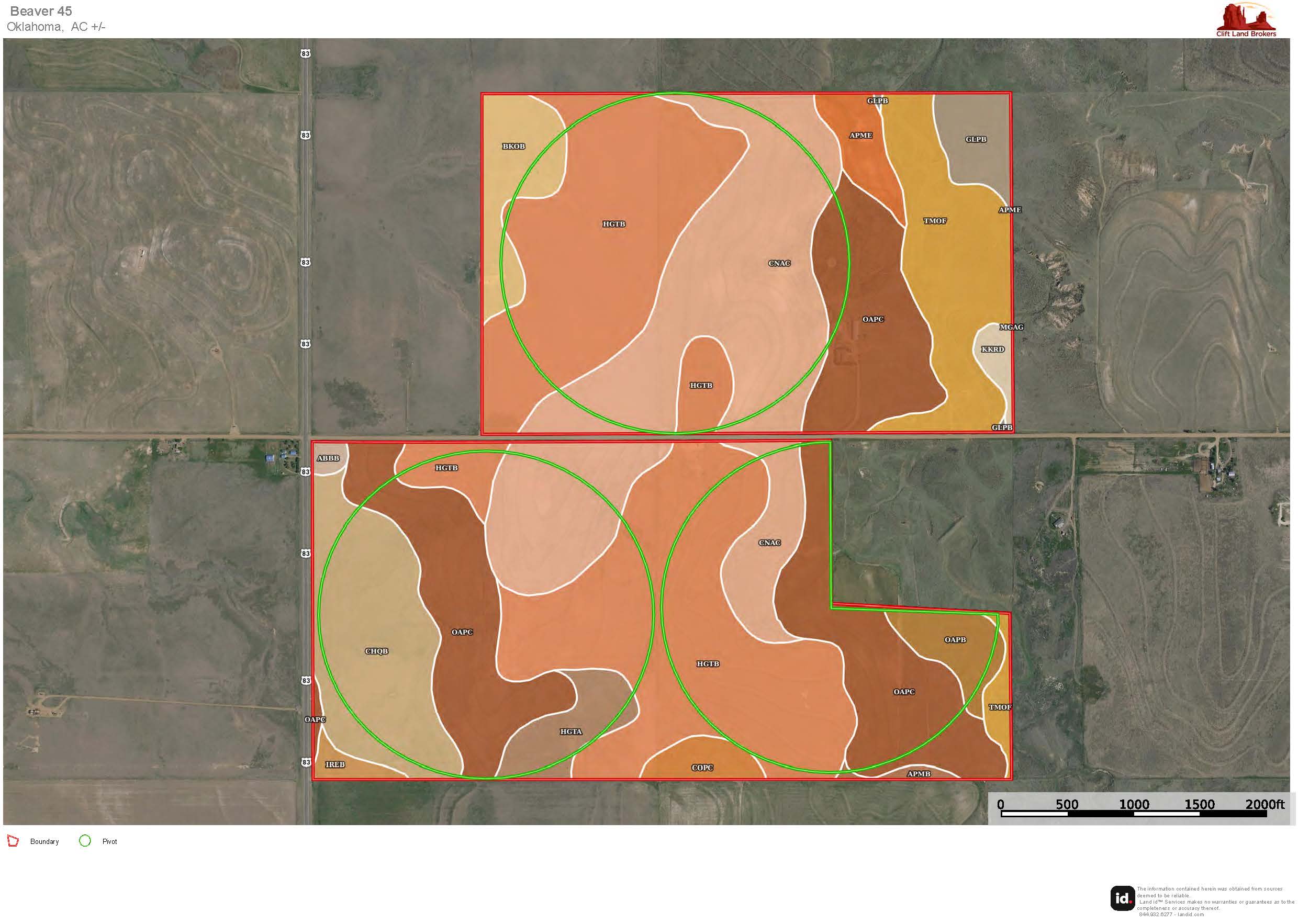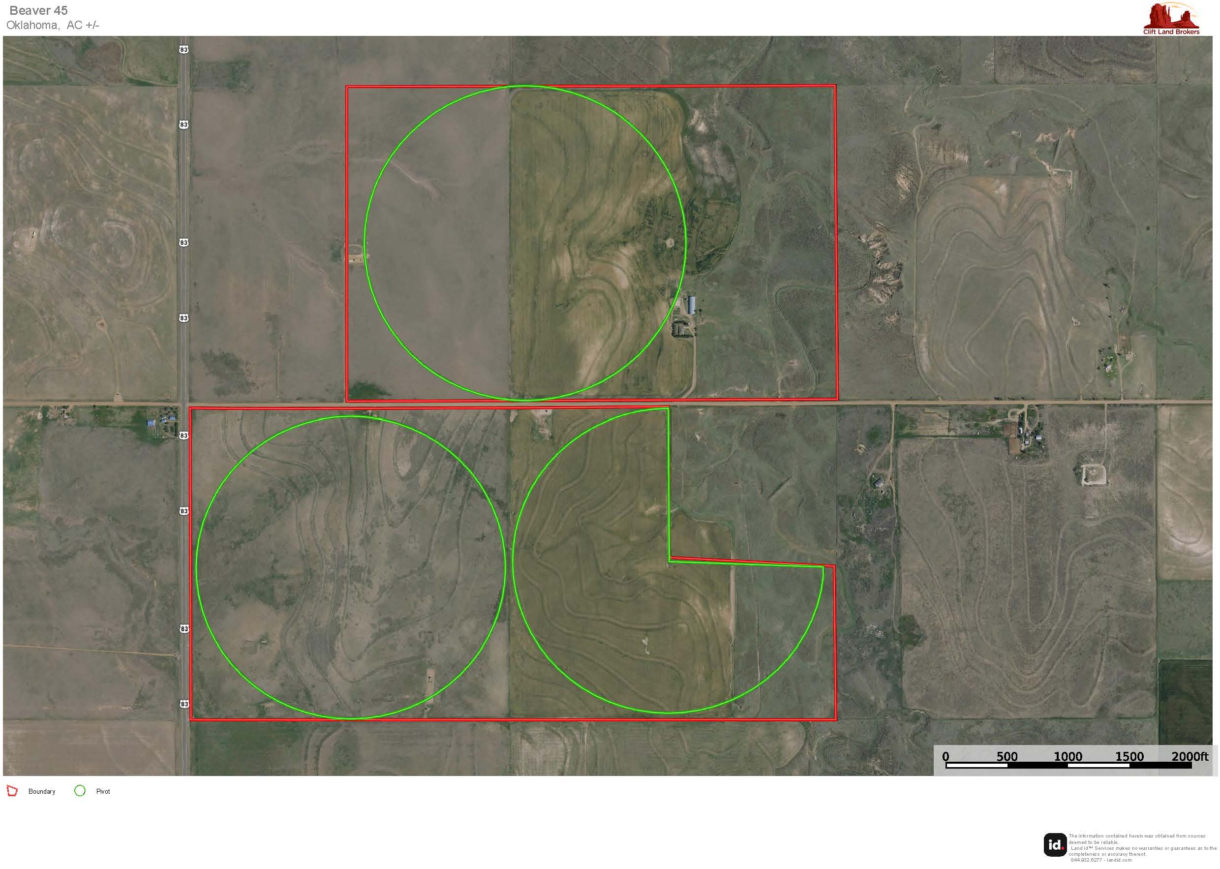 This is an outstanding irrigated contiguous property complete with residence and large equipment barn. There are a total of 521 +/- acres consisting of 334 +/- wet acres under three center pivots, served by one excellent irrigation well (+1,100 gpm). The topography has little rolling elevation with excellent clay/sandy loam soils. The property includes a 3 bedroom, 1.75 bath residence with attached garage, a very nice 7,800 sq ft Quonset for equipment storage and various outbuildings. There are approximately 70 +/- acres of native grassland with drainage area running through for livestock and wildlife.