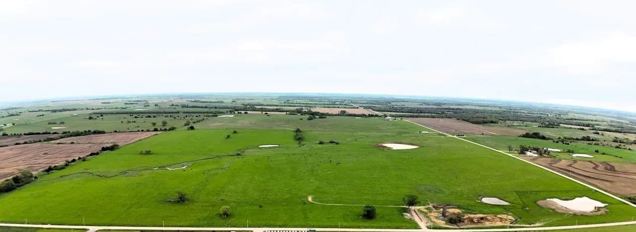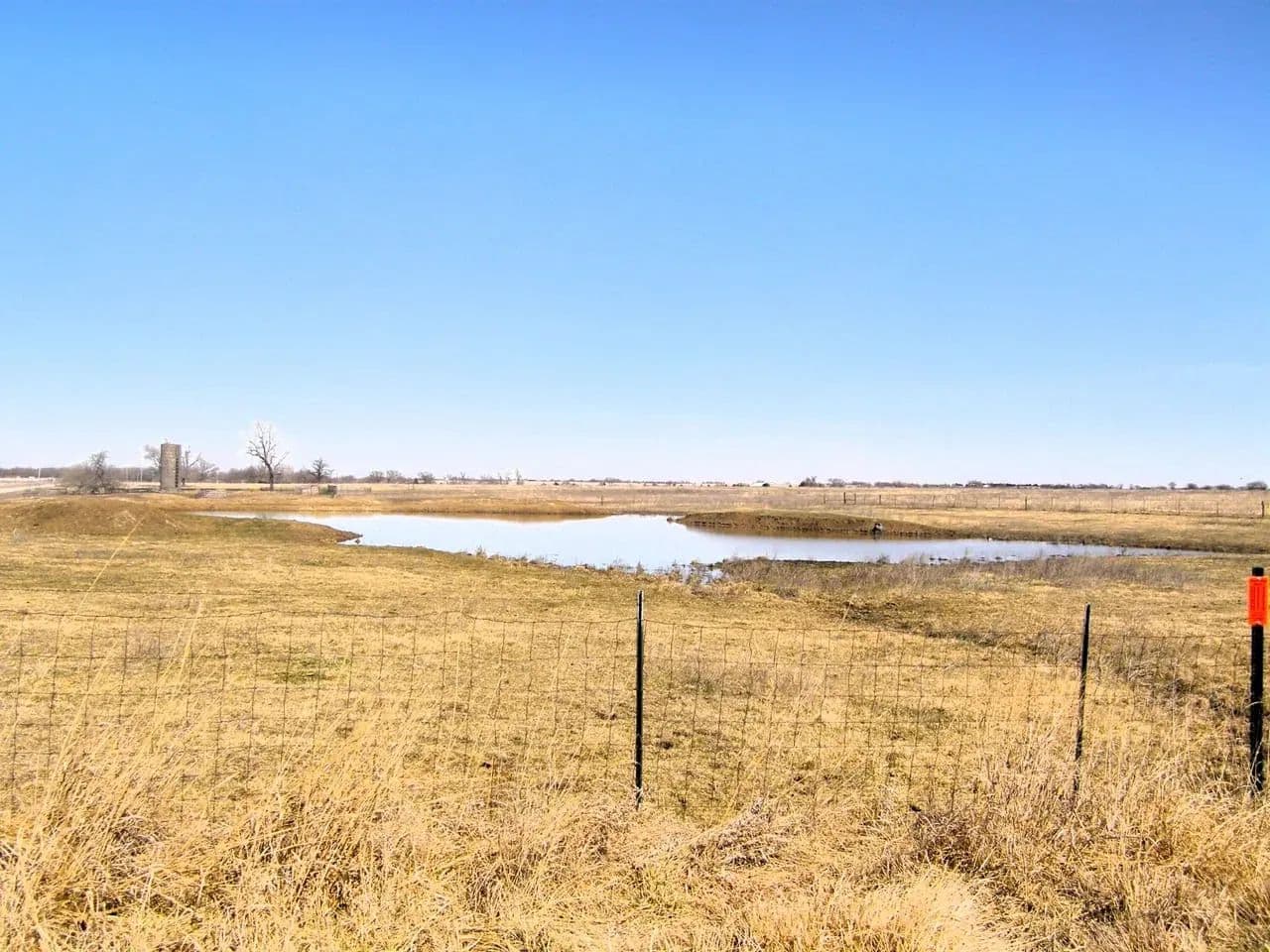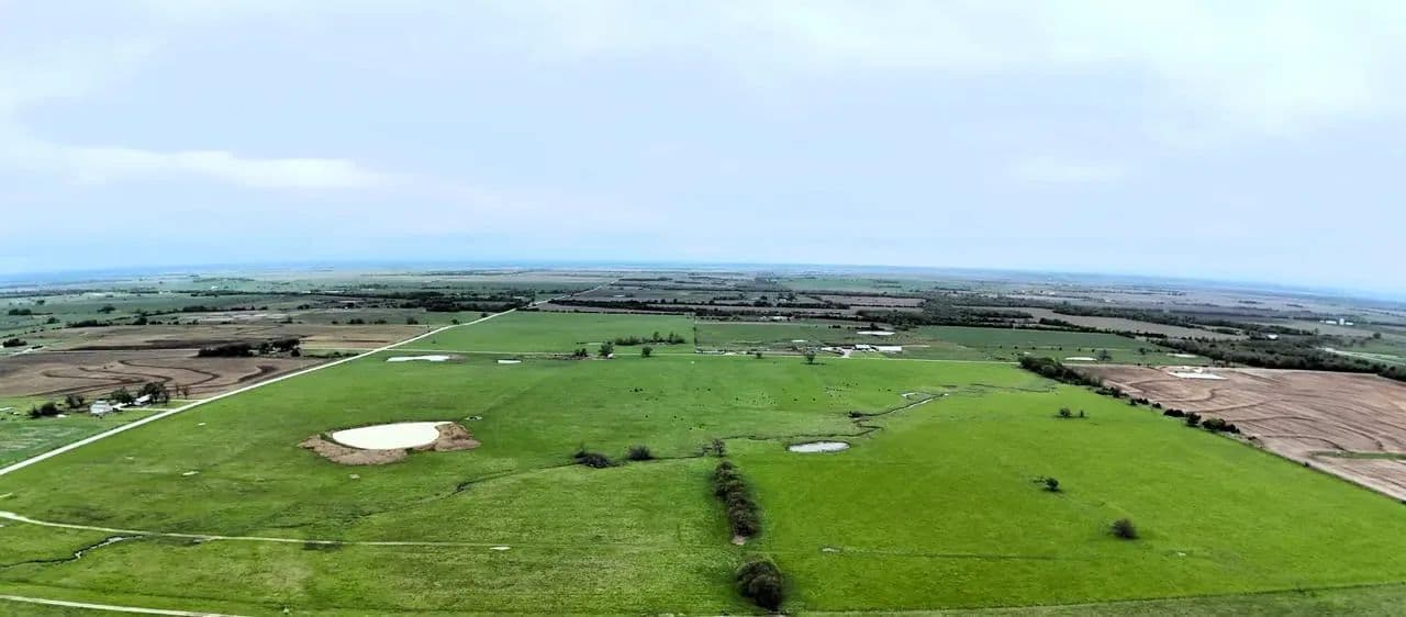 Grass Pasture: cool season grass; one big beautiful pasture 153 acres+/- and a 6 acre+/- catch paddock with pond and working pens, 159ac+/- total. There are three ponds, two ponds were cleaned out in 2023, one renovated pond towards the middle of the pasture is 14' deep and the pond in the SW corner in the catch paddock 9' deep. There are a few large shade trees but the owner has done a good job of keeping invasive trees and noxious weeds off of the property. It's all grass now, but farmers should take a look at this property. Soil Map and Contour Map are available. Rural water is onsite with a frost free hydrant close to the working pens. If you want to build a home, you'll have 1/4 section to choose your build site and a mile of road frontage. Fiber optic has recently been installed along the property. With plenty of moisture in the ground and warm temperatures now, the grass is going to take off quickly. We'll have new photos soon with lots of green grass. Call to make an appointment to go on the property. Located about: 5 miles SW of Welda, KS