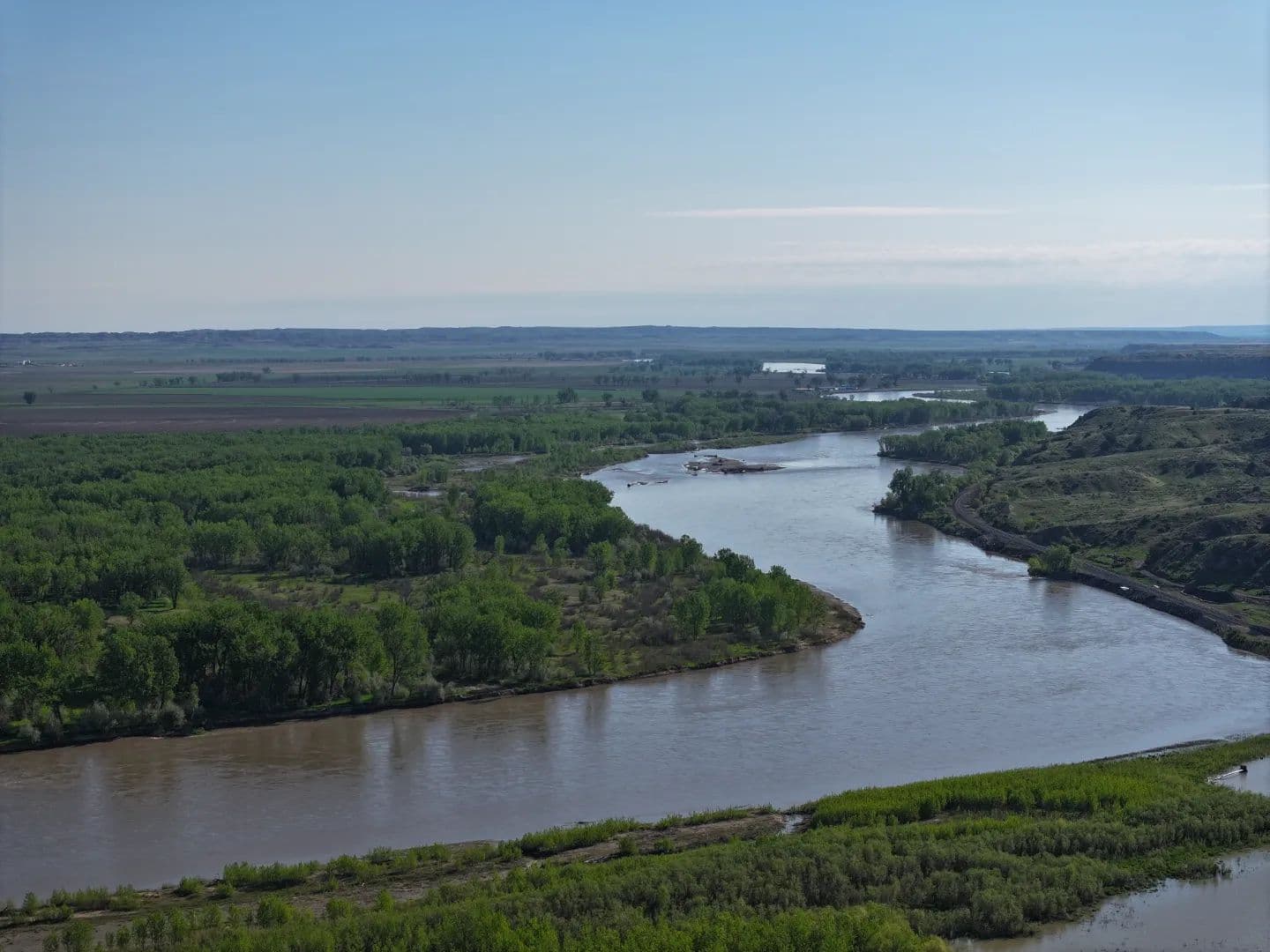 Located a short 10 minute drive on I-94 from Miles City, Montana a convenient off ramp leads to a paved county road for 5 miles. From this point the Rancher has surveyed a road for an access easement across his farm land, under the interstate and across the rail road tracks to the Oxbow.