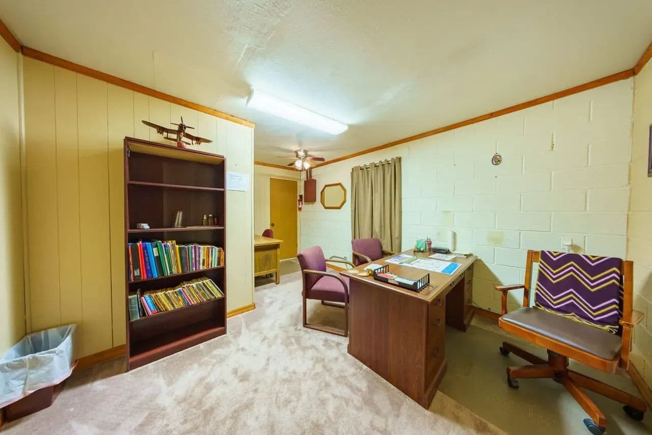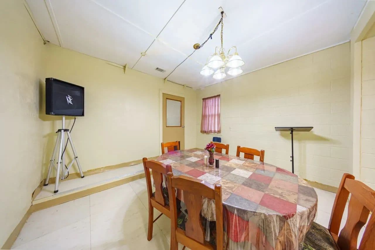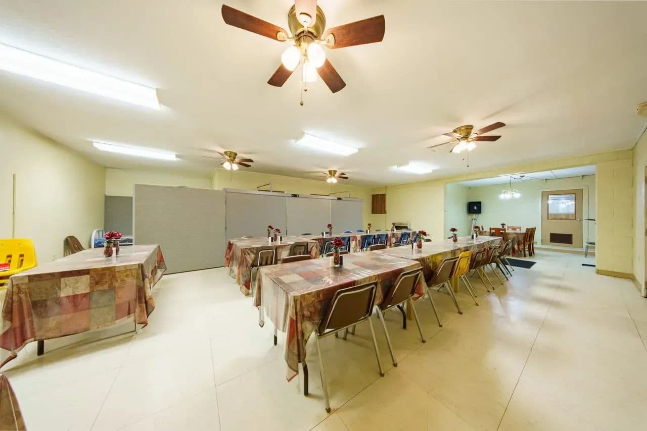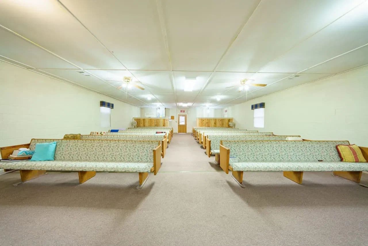 The property features a spacious, open sanctuary, ideal for retail, office space, or community-oriented businesses. A fully equipped kitchen provides added convenience, while three half baths and a separate shower room enhance the functionality of the space. A detached storage building offers ample room for inventory, equipment, or additional workspace.