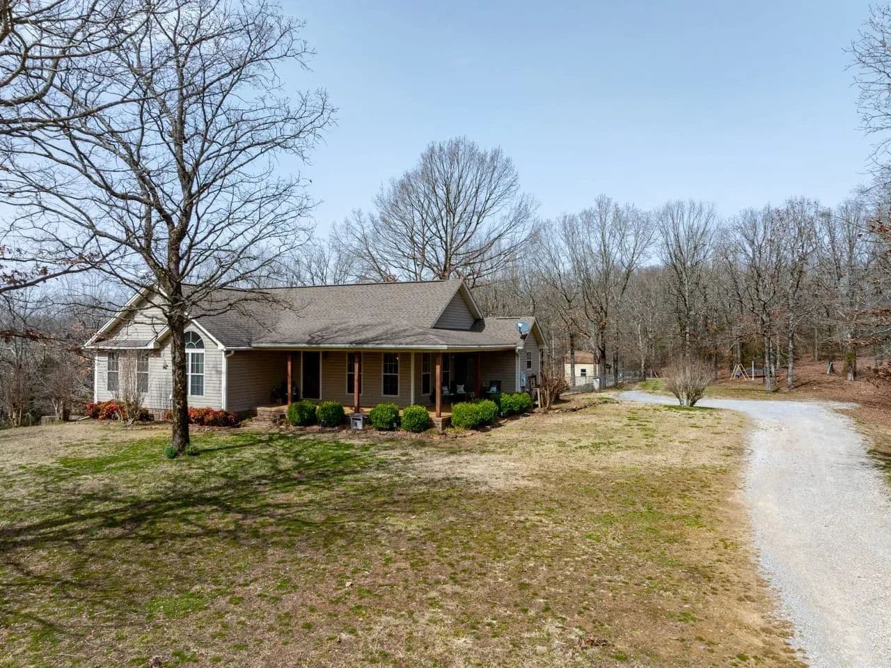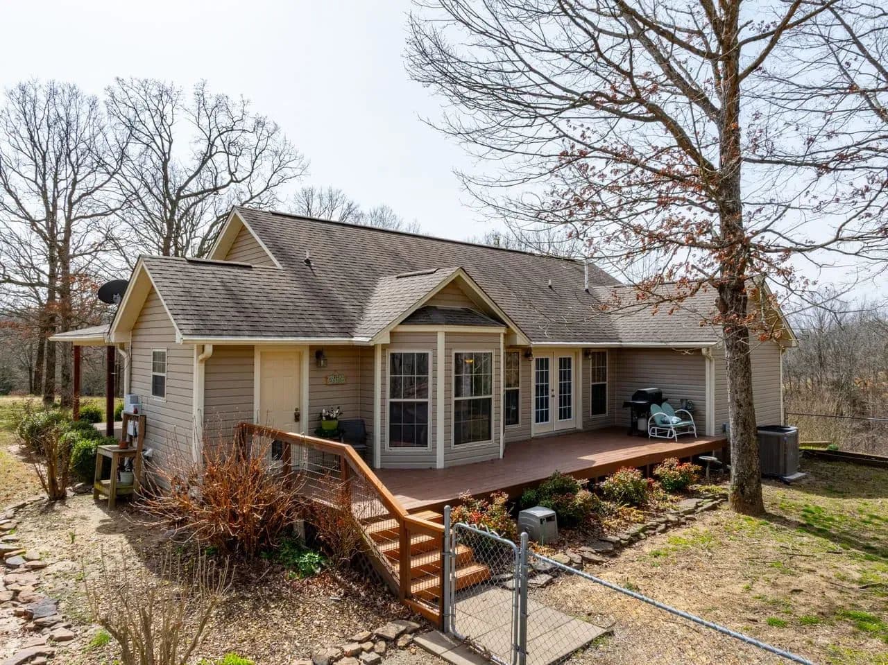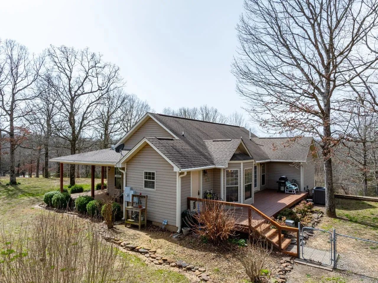 Arkansas hilltop home with acreage and a true multi-generation layout—this 2003 build delivers 6 bedrooms, 3 baths, sweeping Ozark views, and a mix of open grazing and timbered hunting on 15 +/- acres. Relax on the wraparound porch (2 sides) and the full-length back porch/deck while you watch sunrises and sunsets over mature trees.