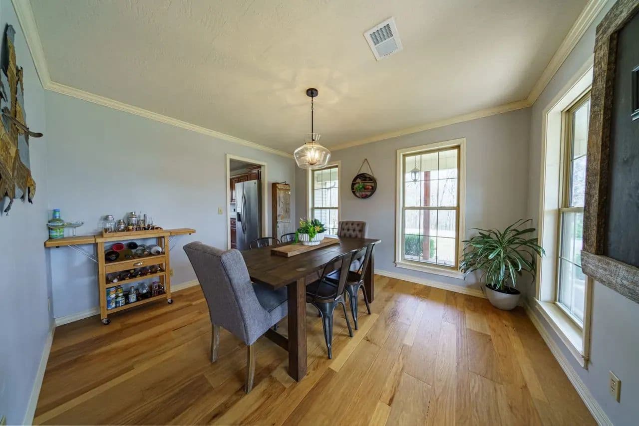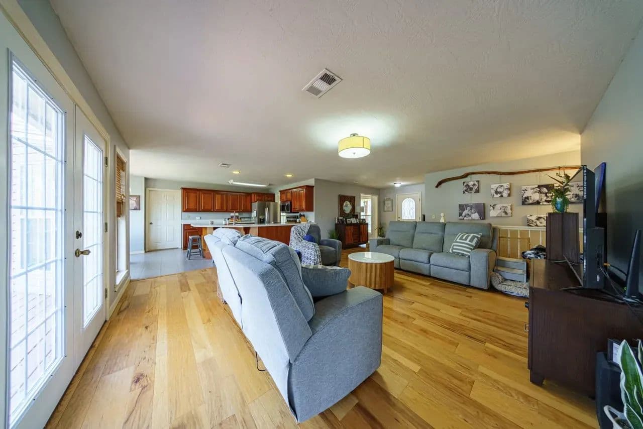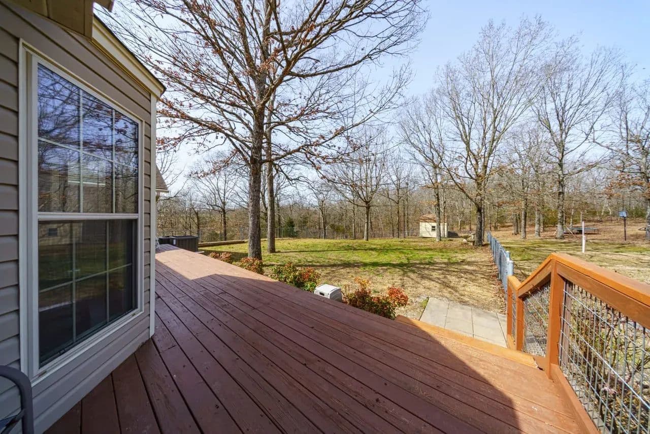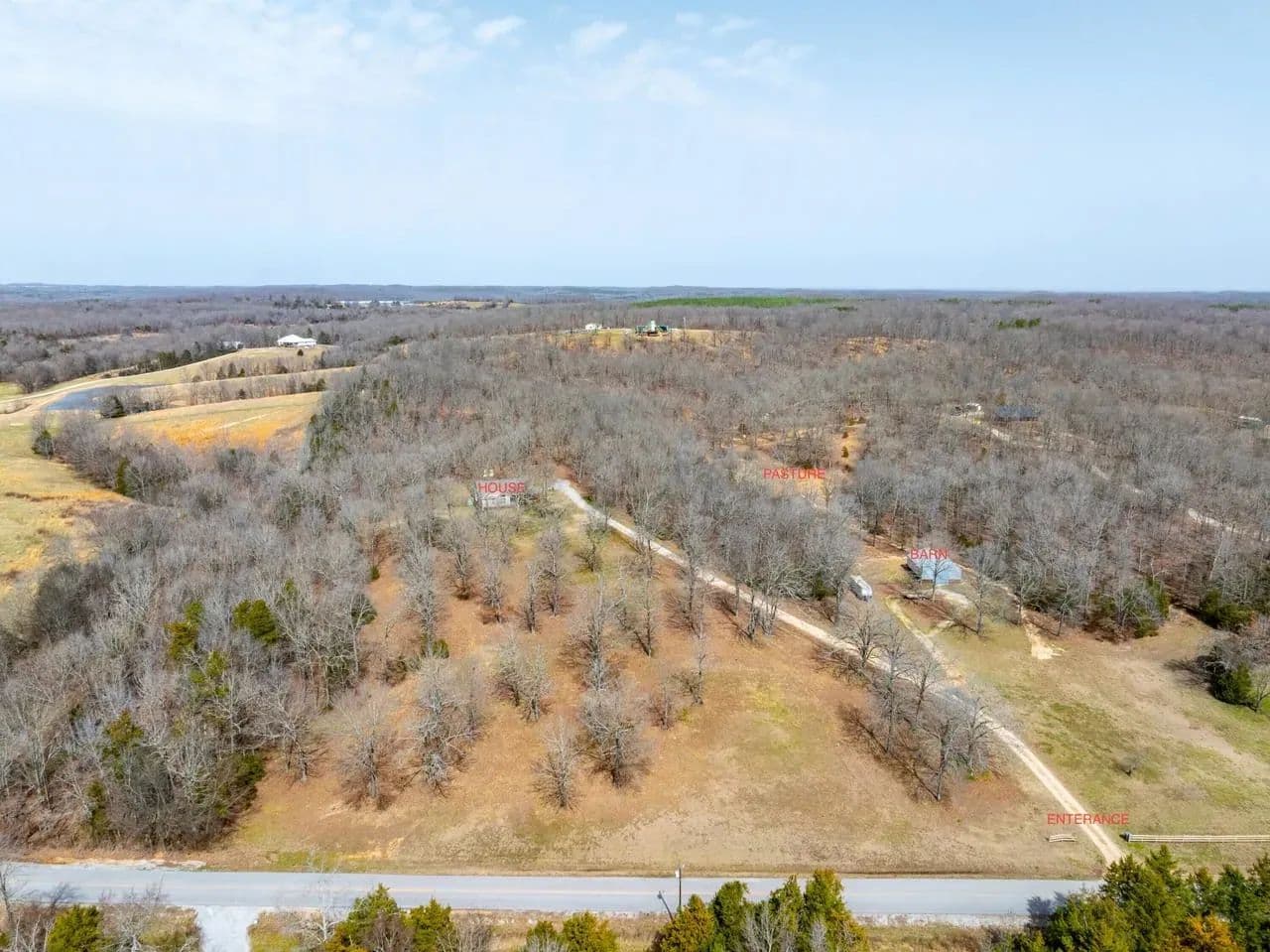 Arkansas hilltop home with acreage and a true multi-generation layout—this 2003 build delivers 6 bedrooms, 3 baths, sweeping Ozark views, and a mix of open grazing and timbered hunting on 15 +/- acres. Relax on the wraparound porch (2 sides) and the full-length back porch/deck while you watch sunrises and sunsets over mature trees.
