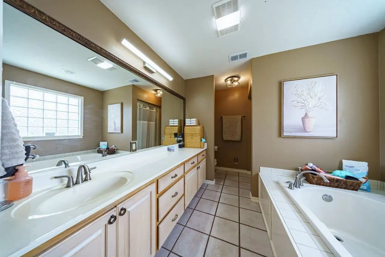 Primary suite on main: walk-in closet, en-suite with soaker tub and walk-in shower.