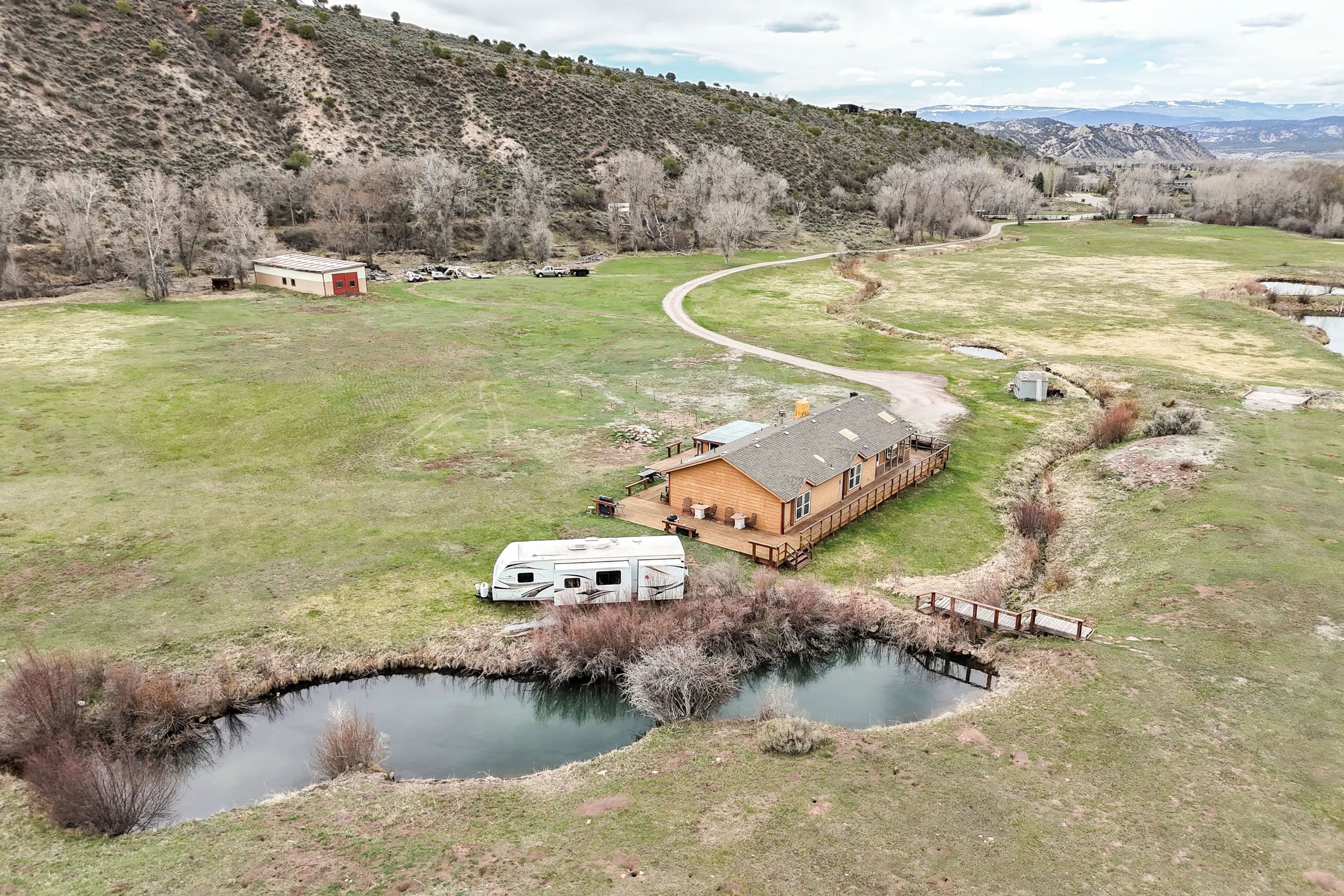 The land features pastures, ponds, vibrant wetlands, and panoramic views of Castle Peak, the Sawatch Range, and the Three Sisters. Two cabins, plus a 3-bedroom manager’s home and two outbuildings are already in place.